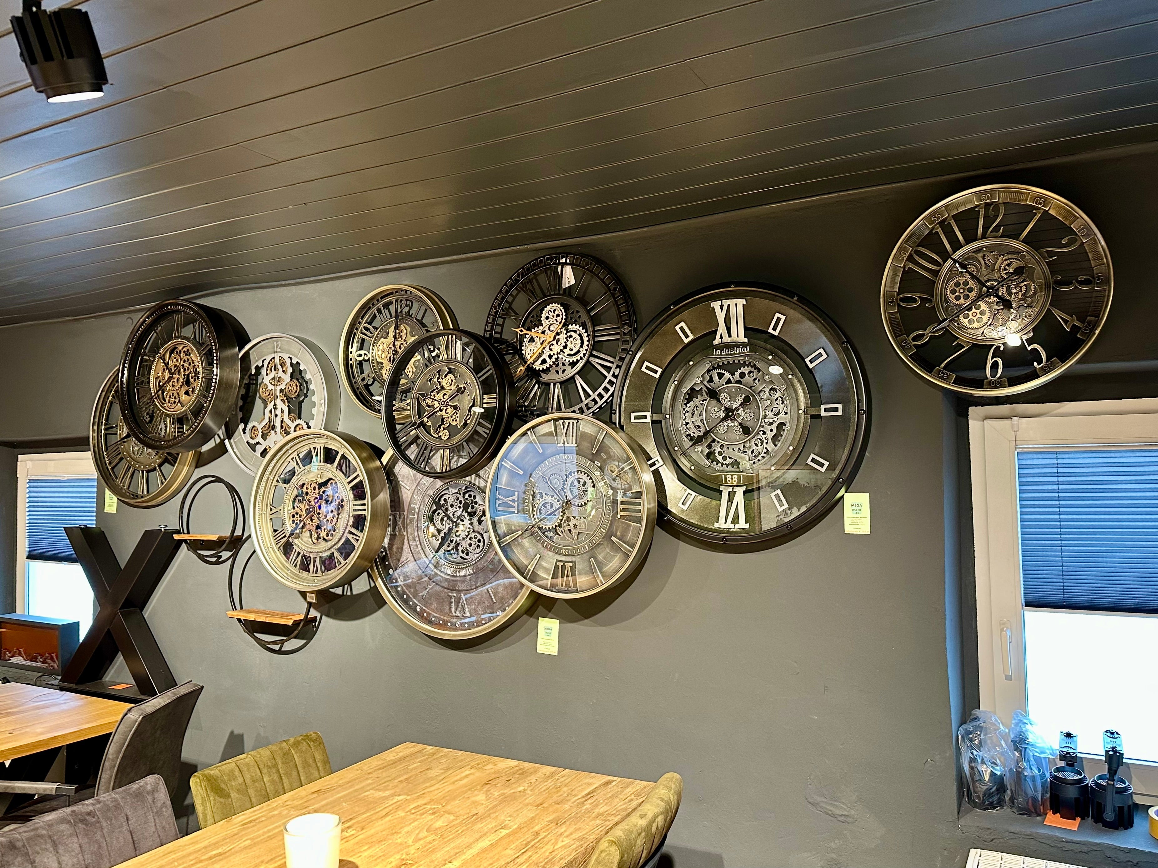 46 cm Wanduhr Brüssel 46 cm mit Animation antik-silber messing drehende Zahnräder Industrial