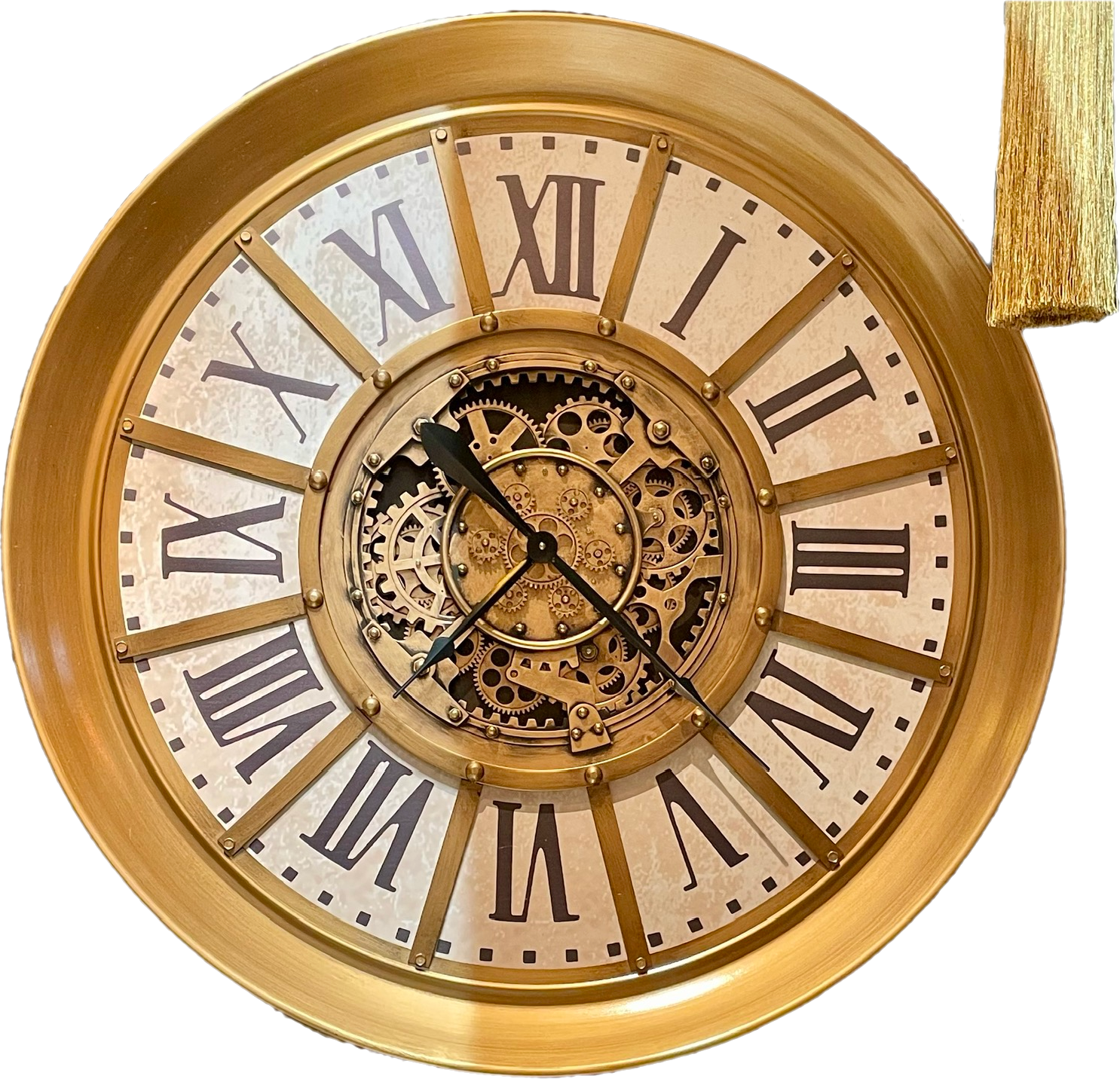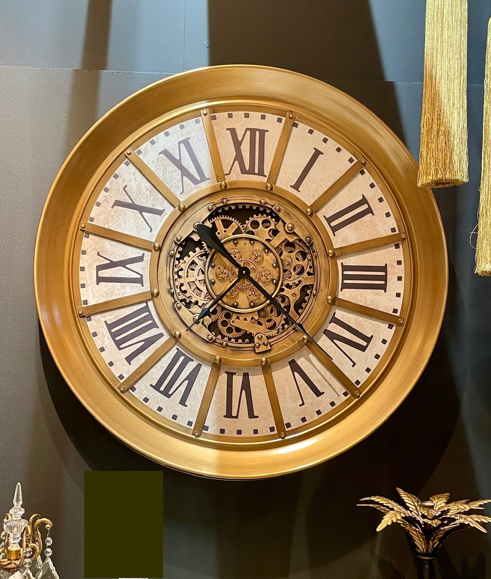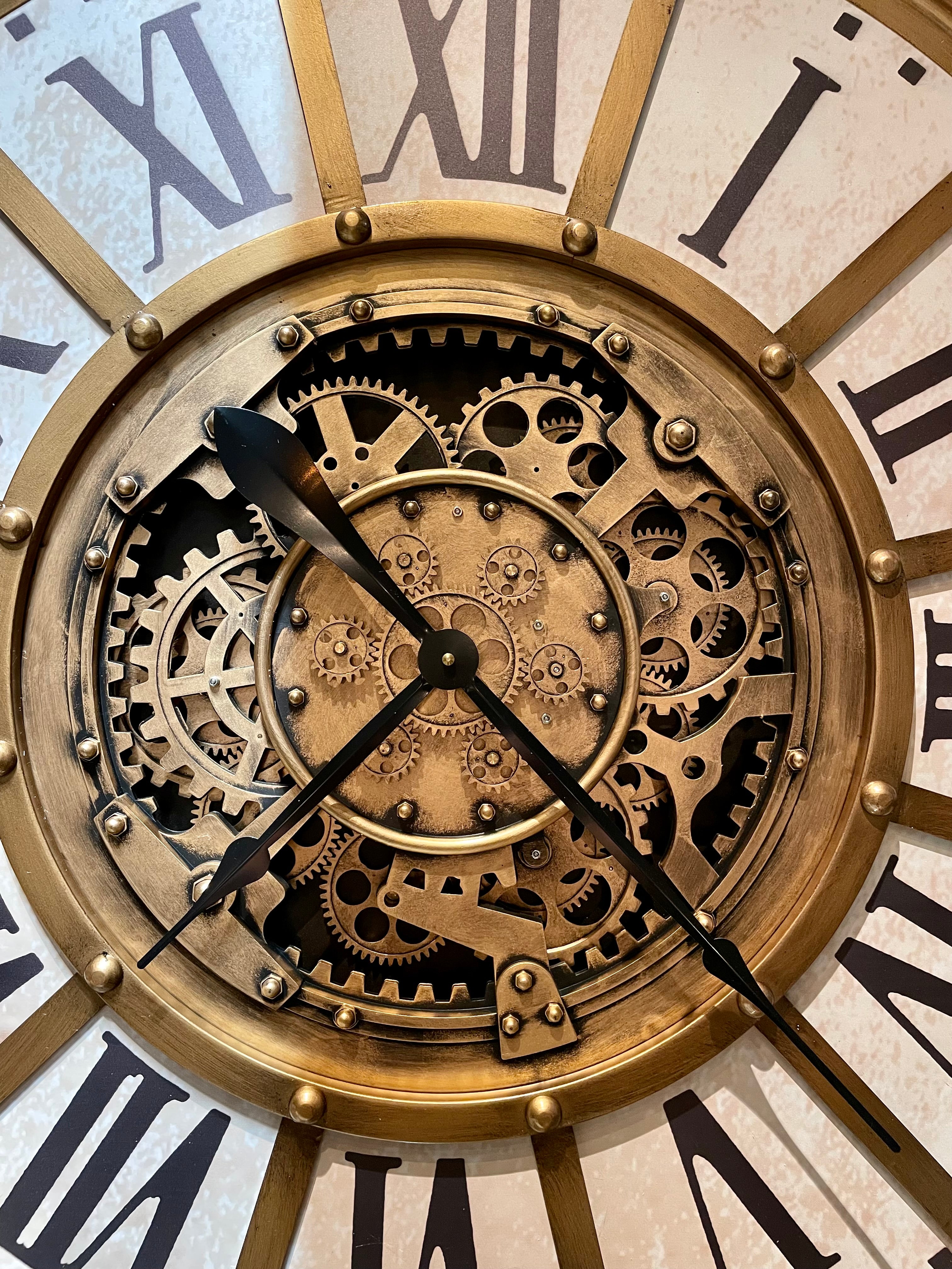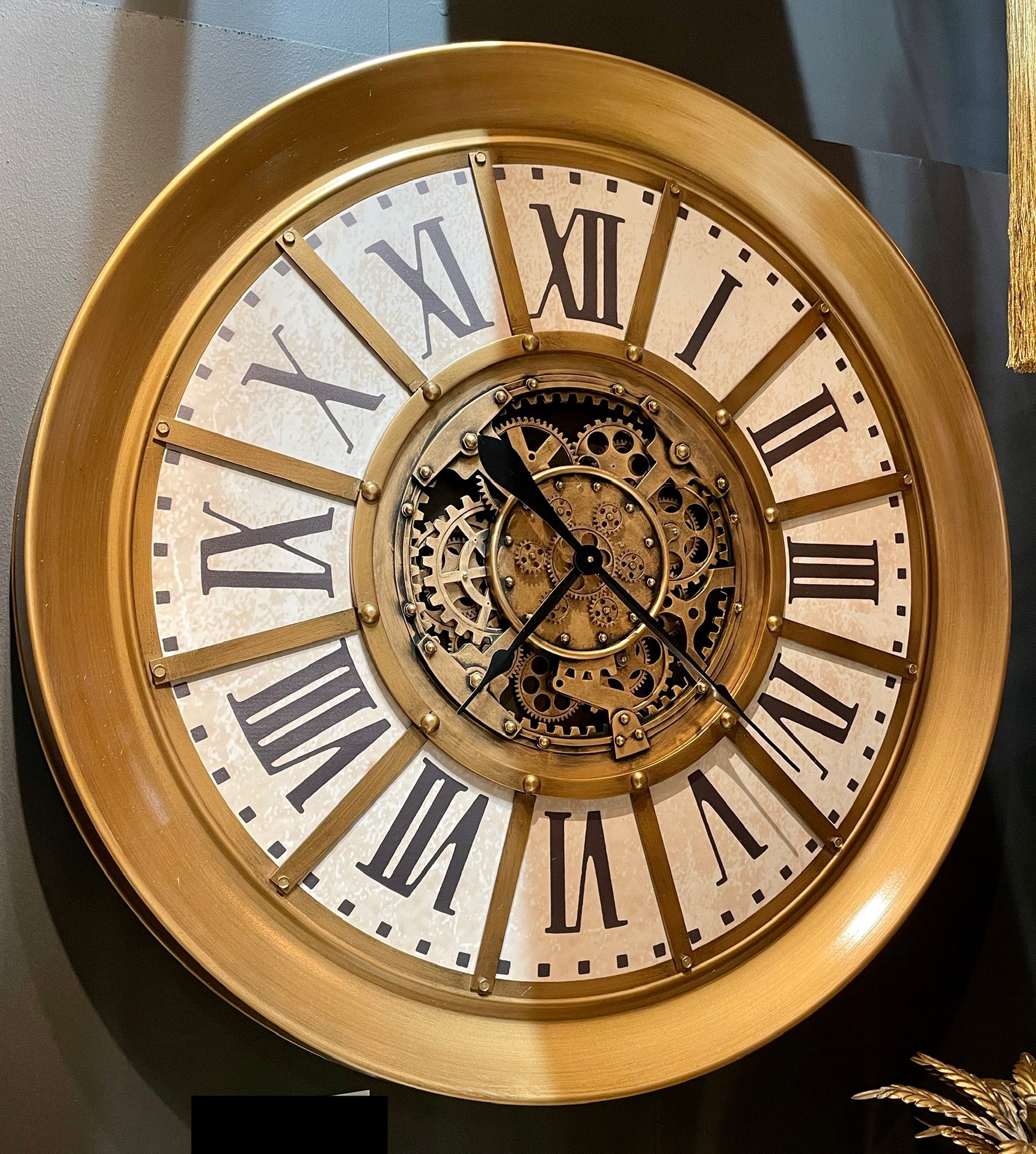 100 cm Wanduhr Zahnrad Zählwerk Animation gold Vintage weiss beige