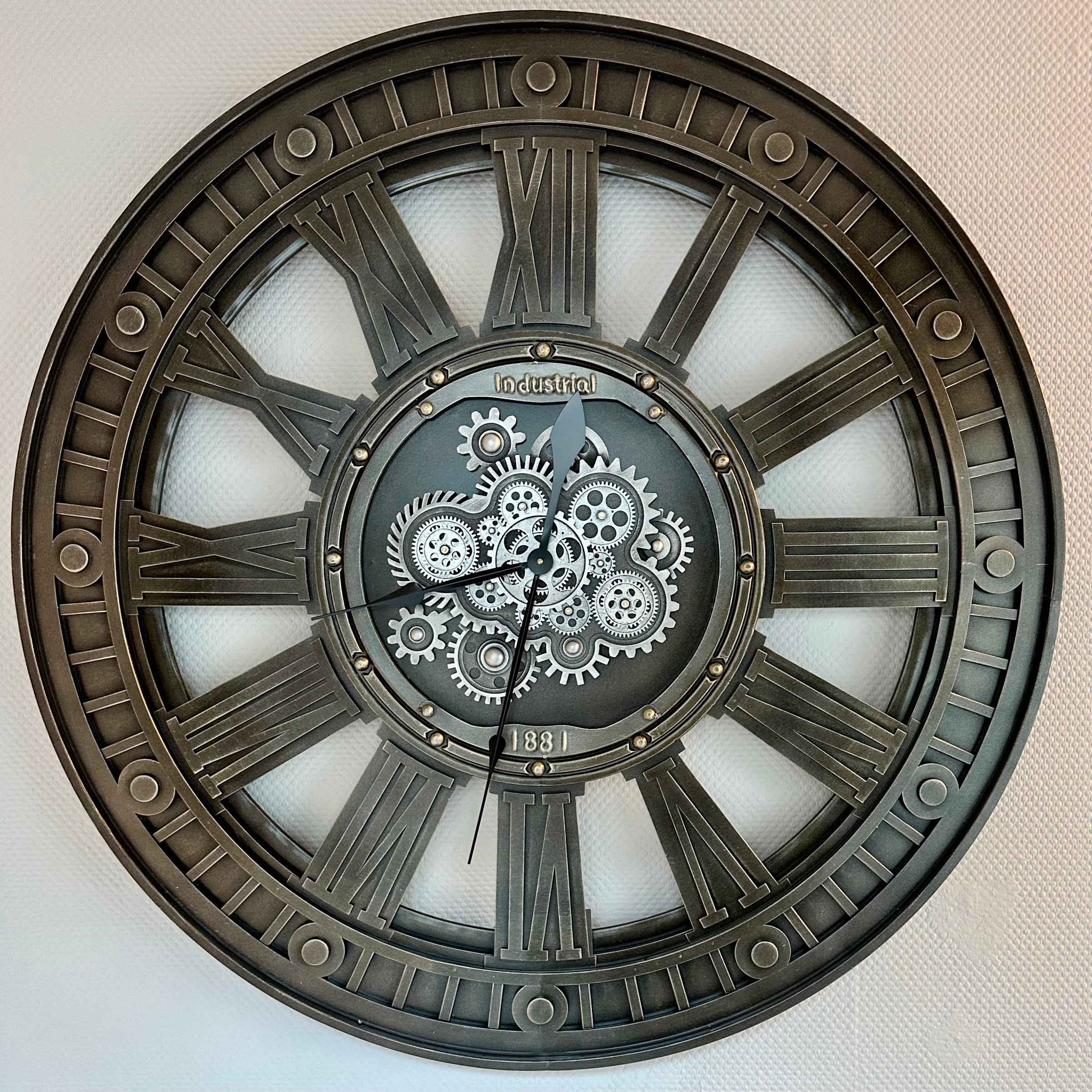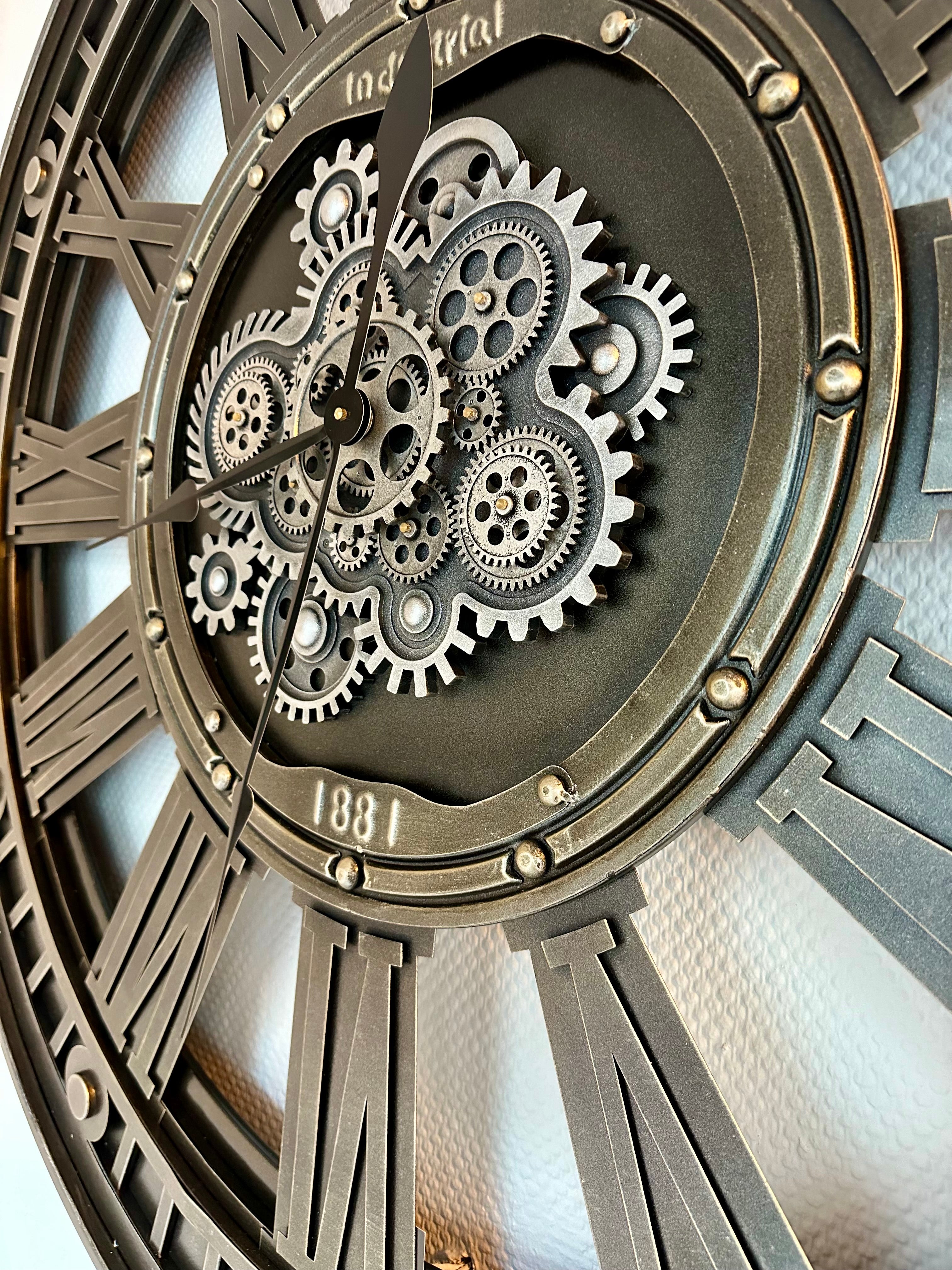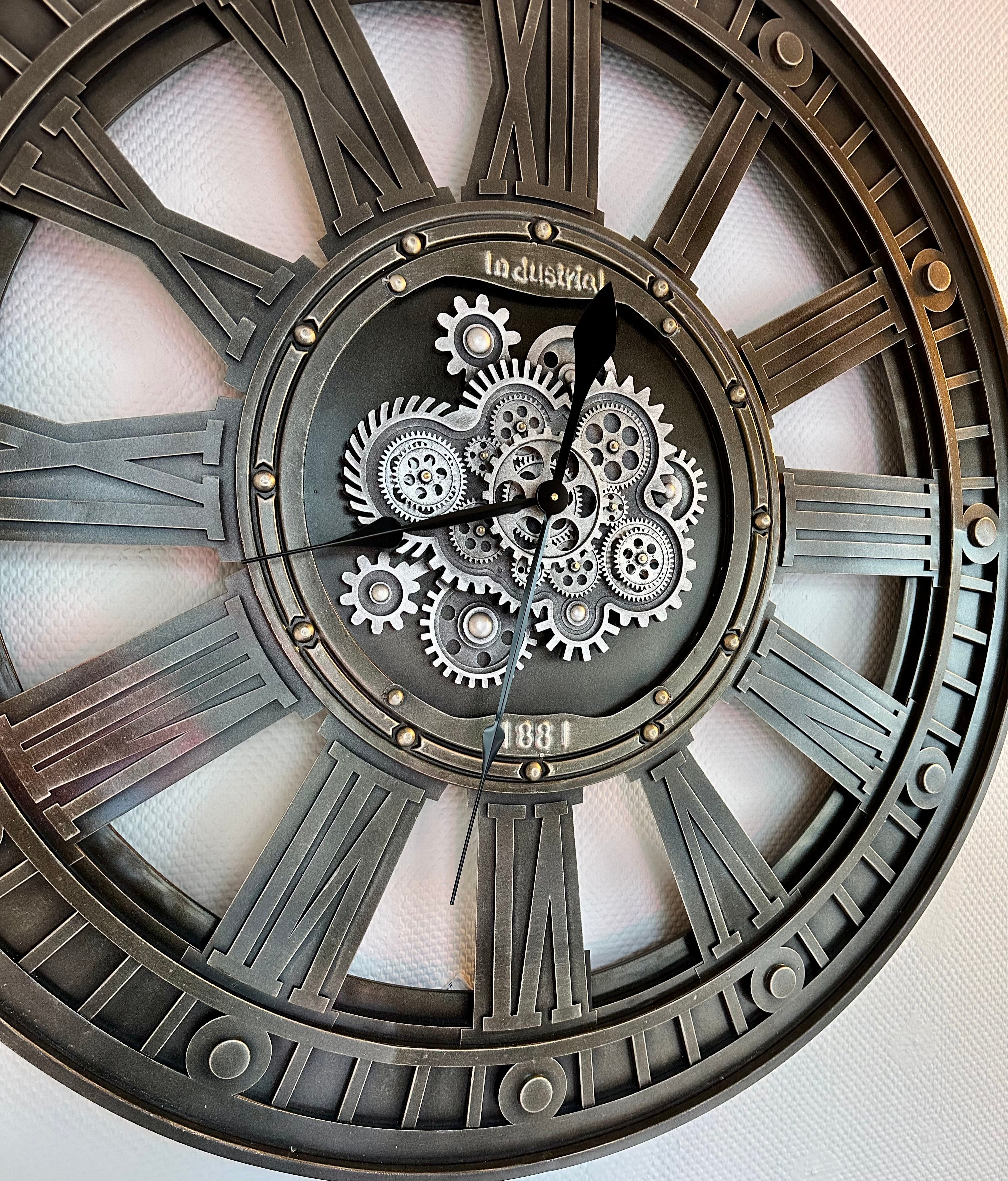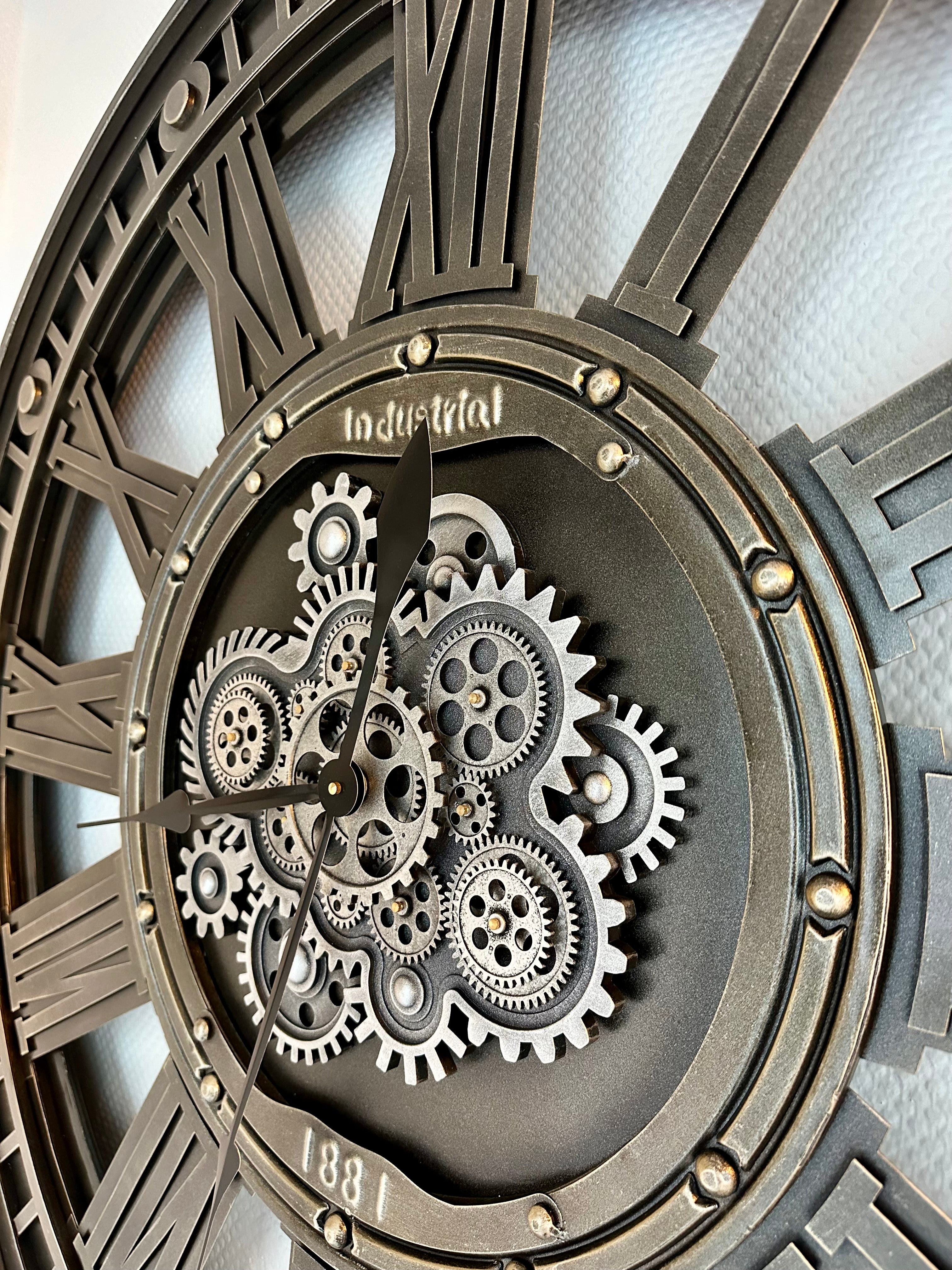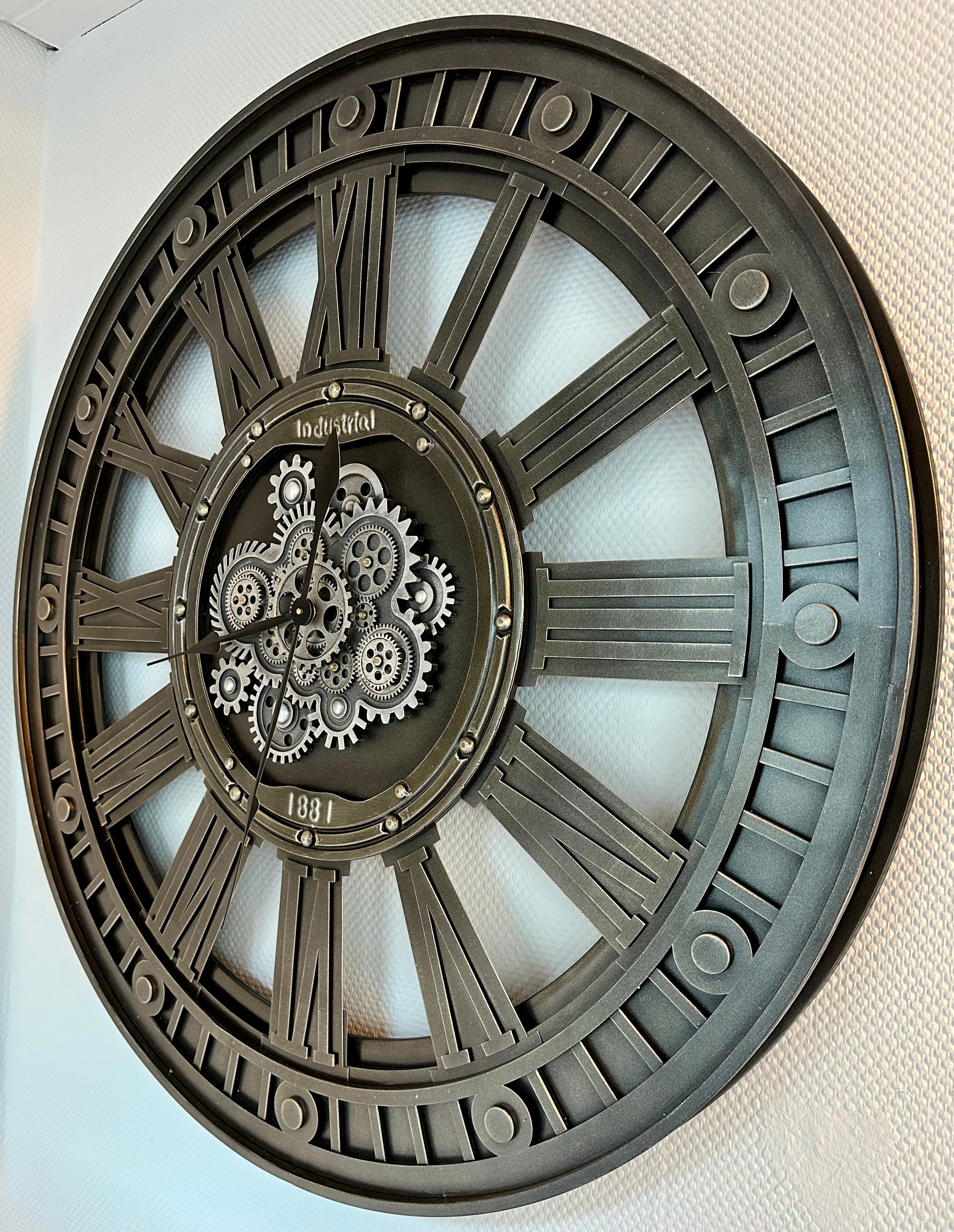 117 cm Washington XXL Wanduhr mit Zahnrädern Metall silber grau schwarz Industrial