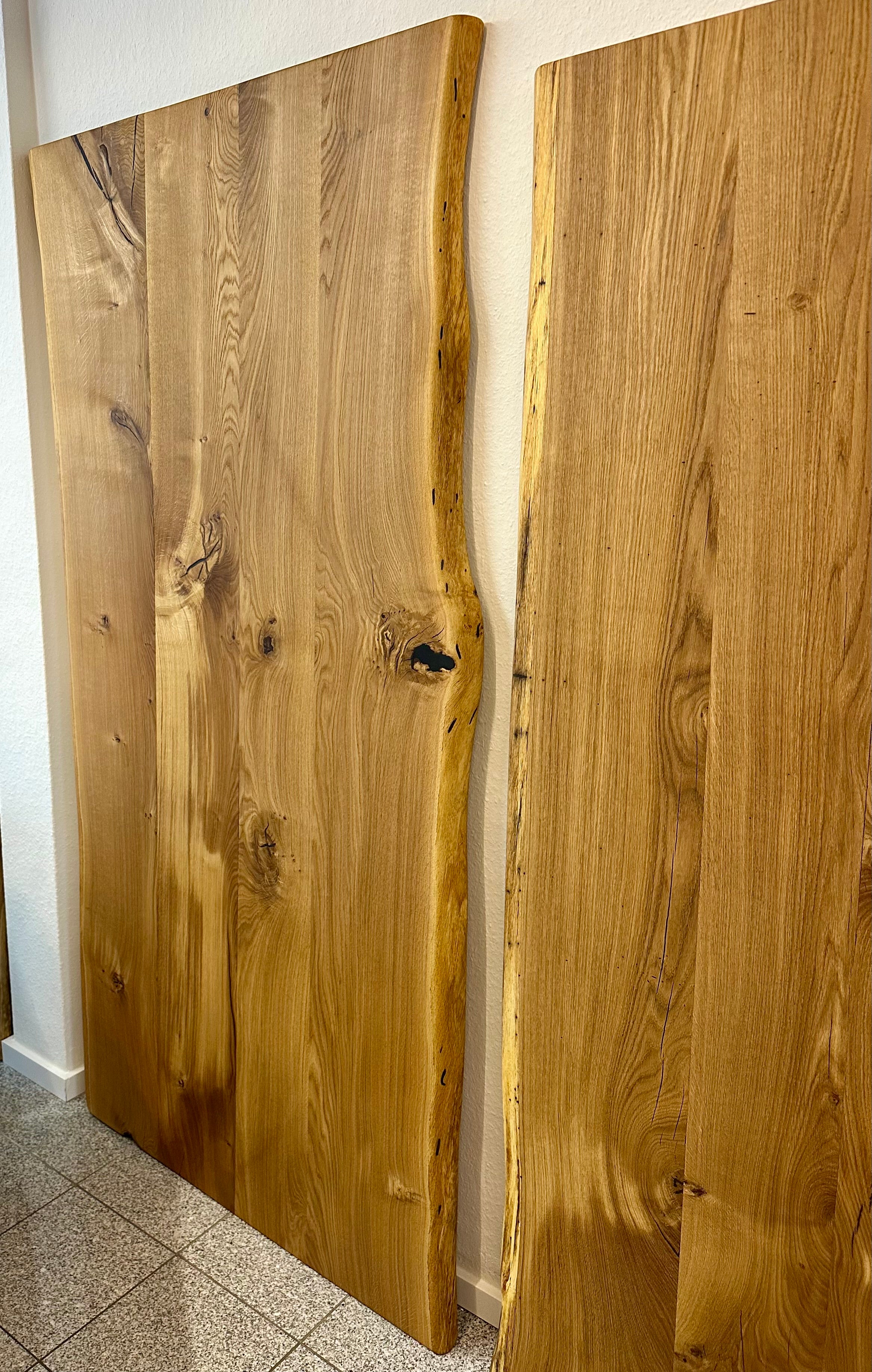 Eine mega schöne Tischplatte aus Wildeiche Pure geölt mit Baumkante 4 cm dick und vollmassiv.
