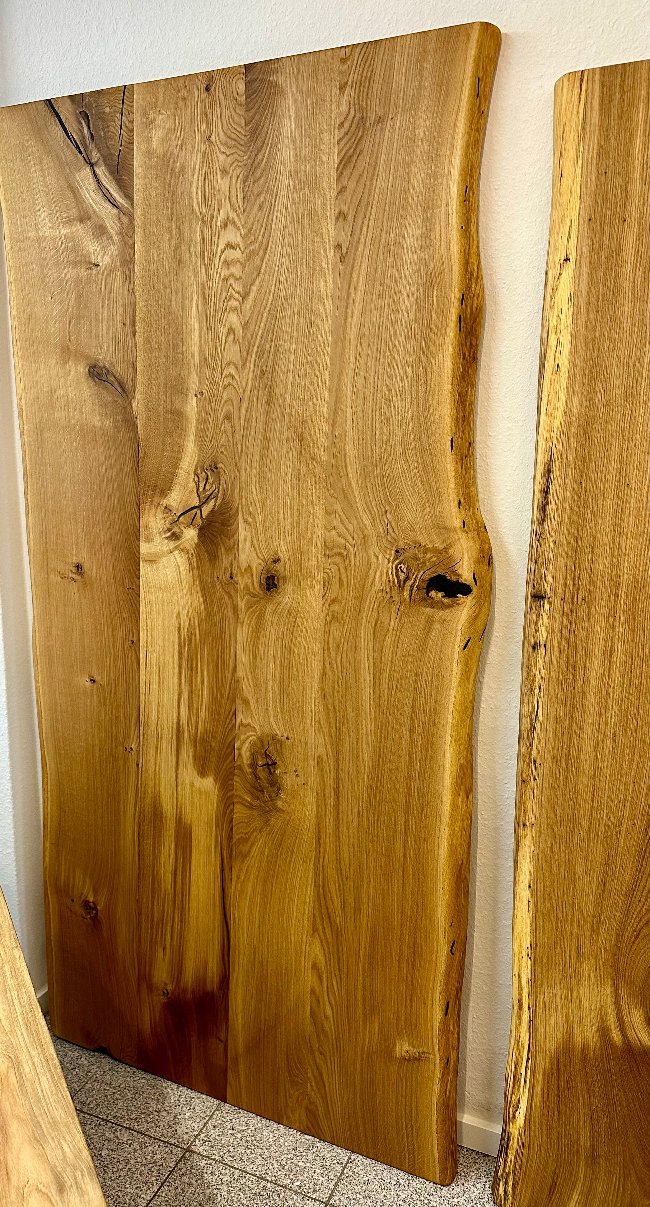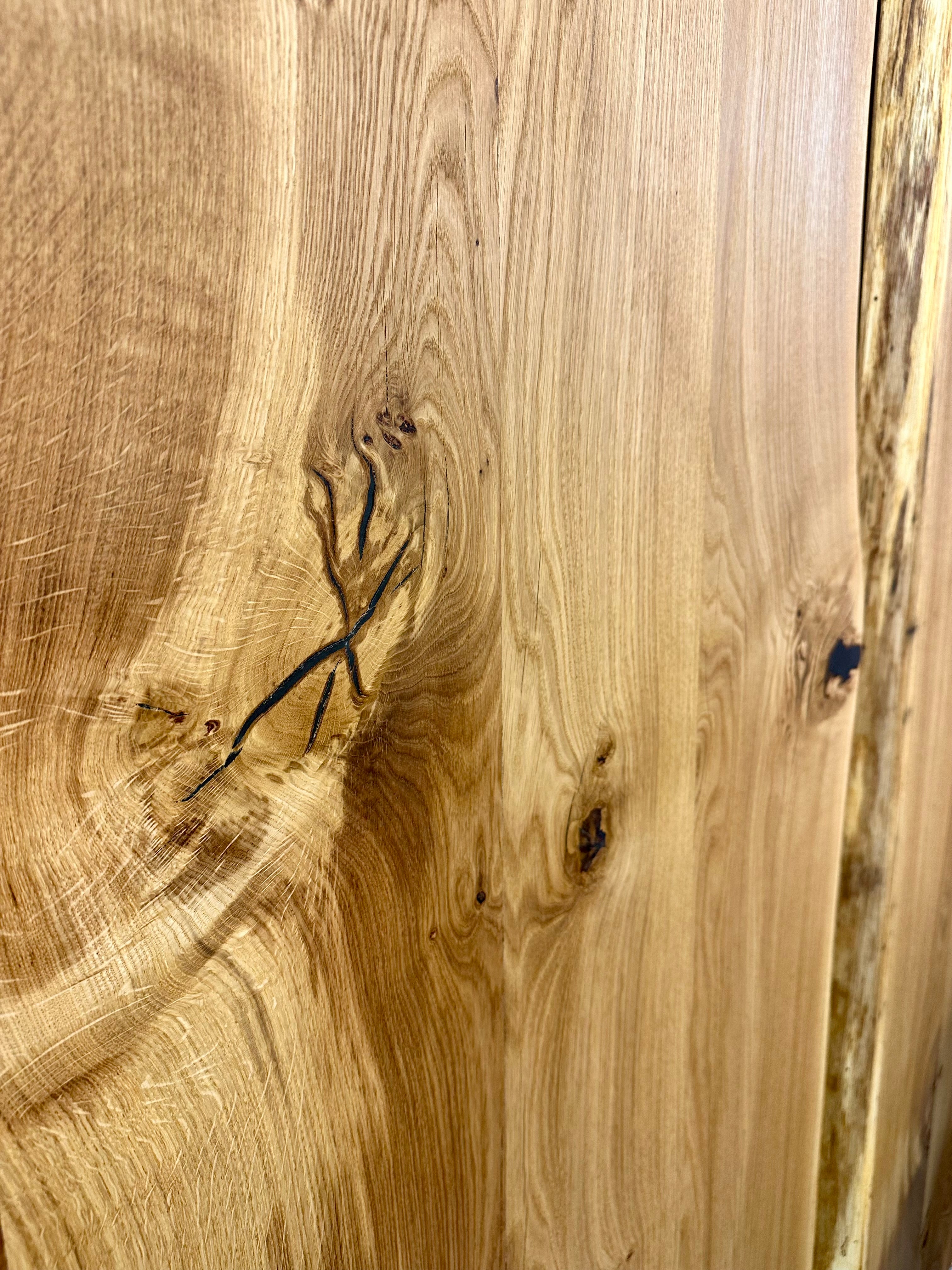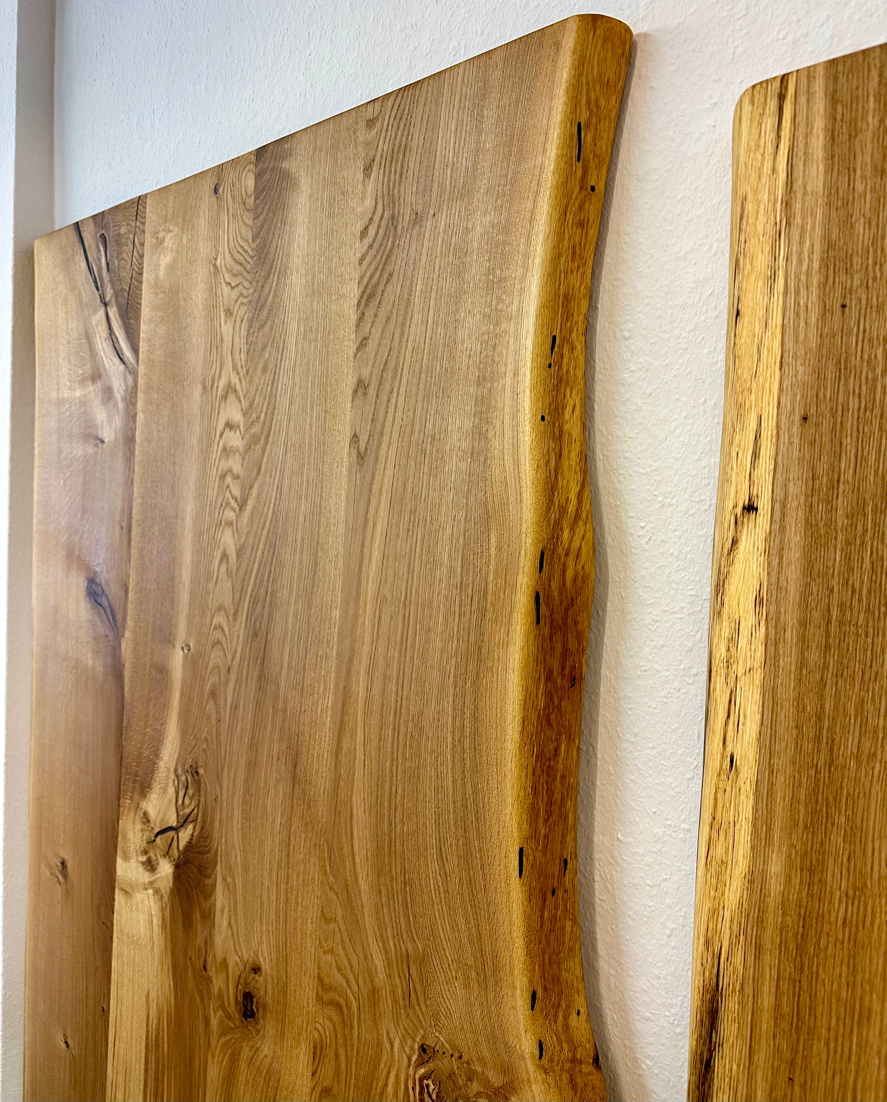 Alle Wesel Eicheplatten haben eine wilde und natürliche Baumkante und sind vollmassiv.