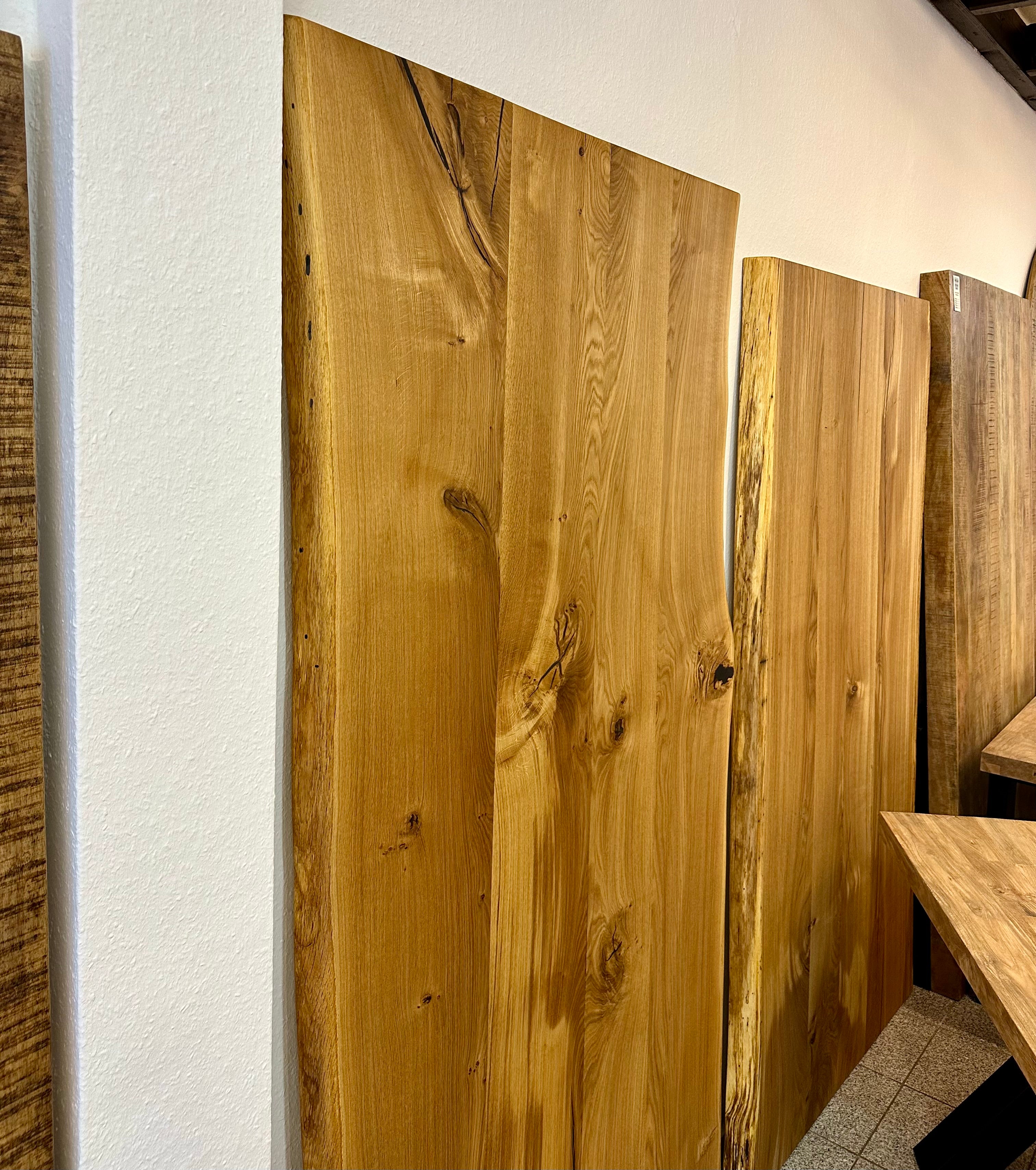 In unserer Werkstatt bauen wir auch Baumstammplatten aus einem Stamm, Tischplatten mit allen Kanten Formen und aus vielen Holzarten.