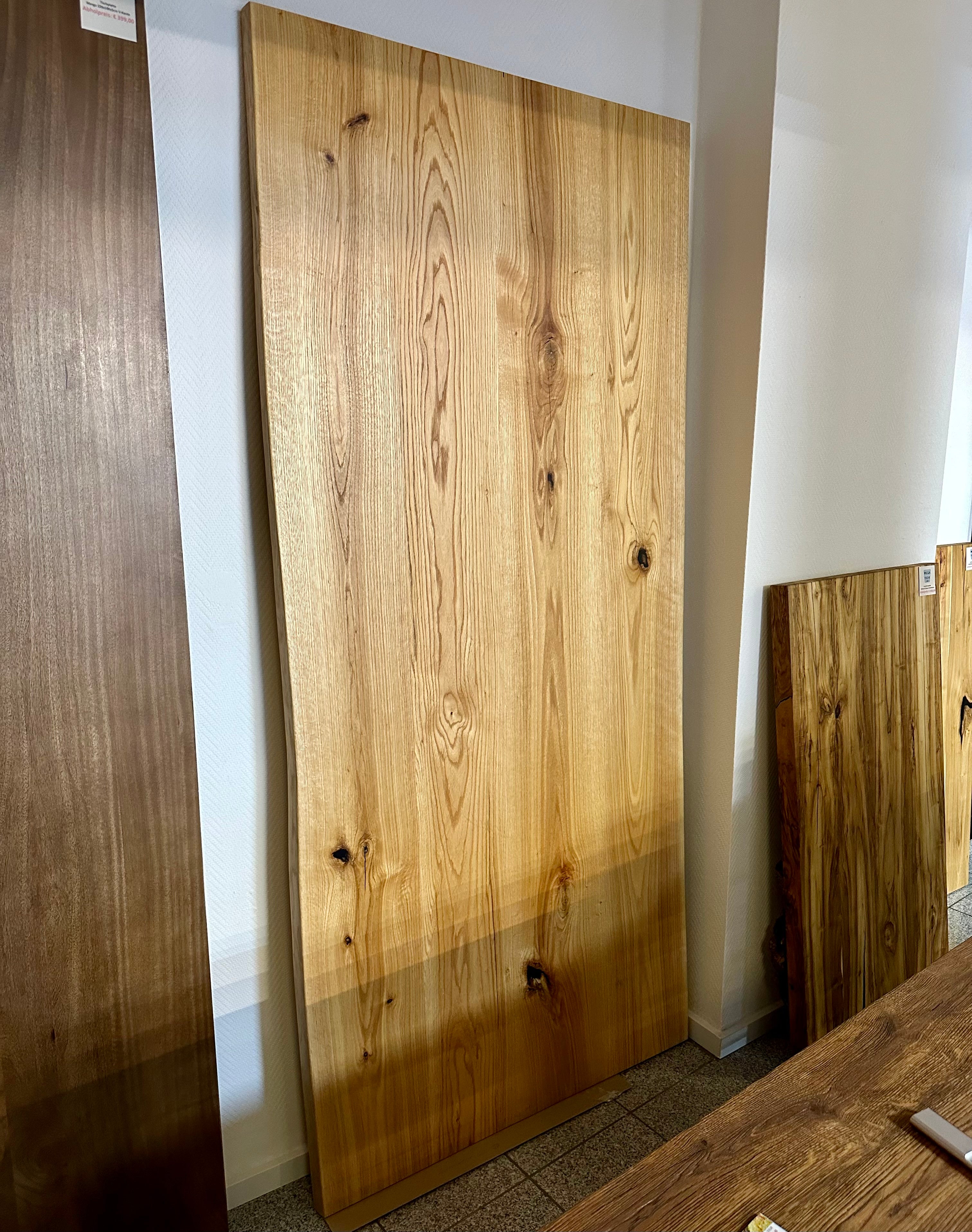 In unserer Werkstatt bauen wir auch Baumstammplatten aus einem Stamm, Tischplatten mit allen Kanten Formen und aus vielen Holzarten.