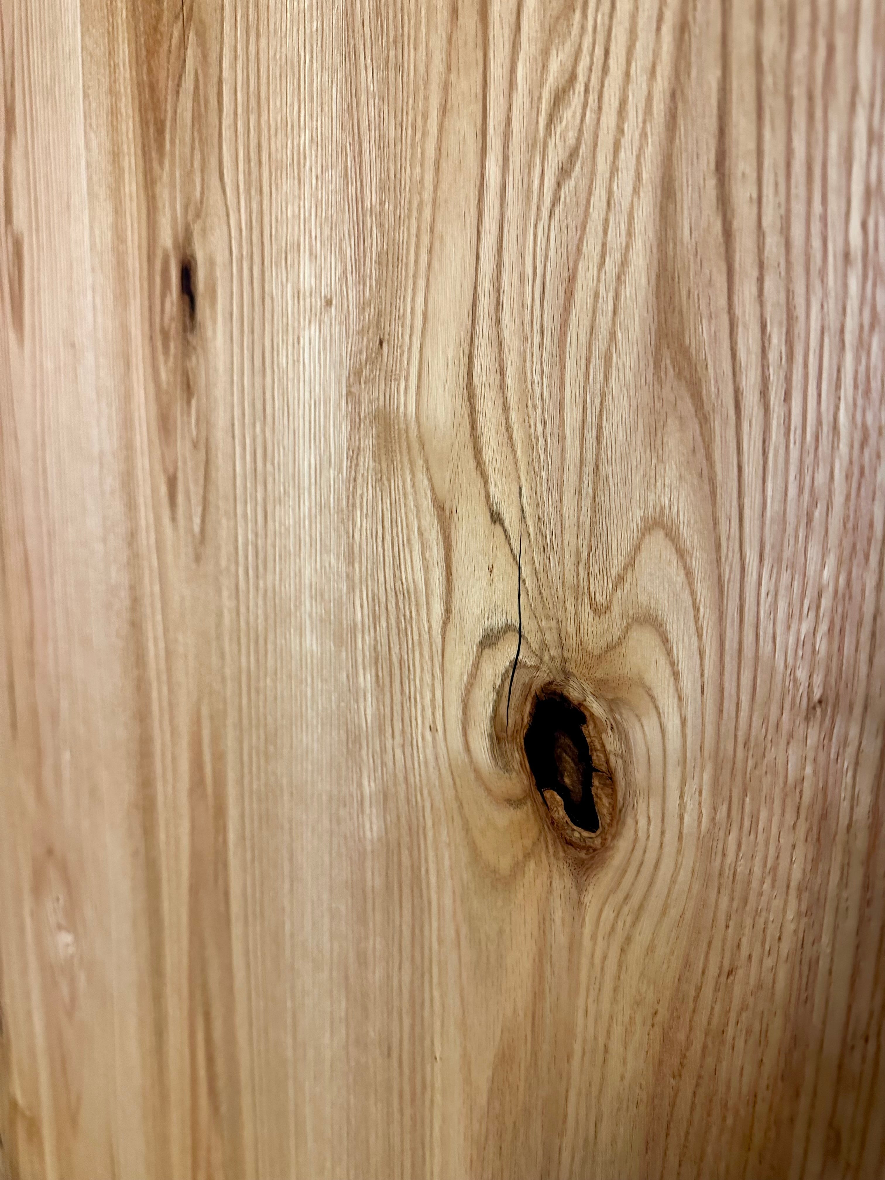 Löcher und Risse wurden aufwendig mit transparenten Epoxidharz aufgefüllt.