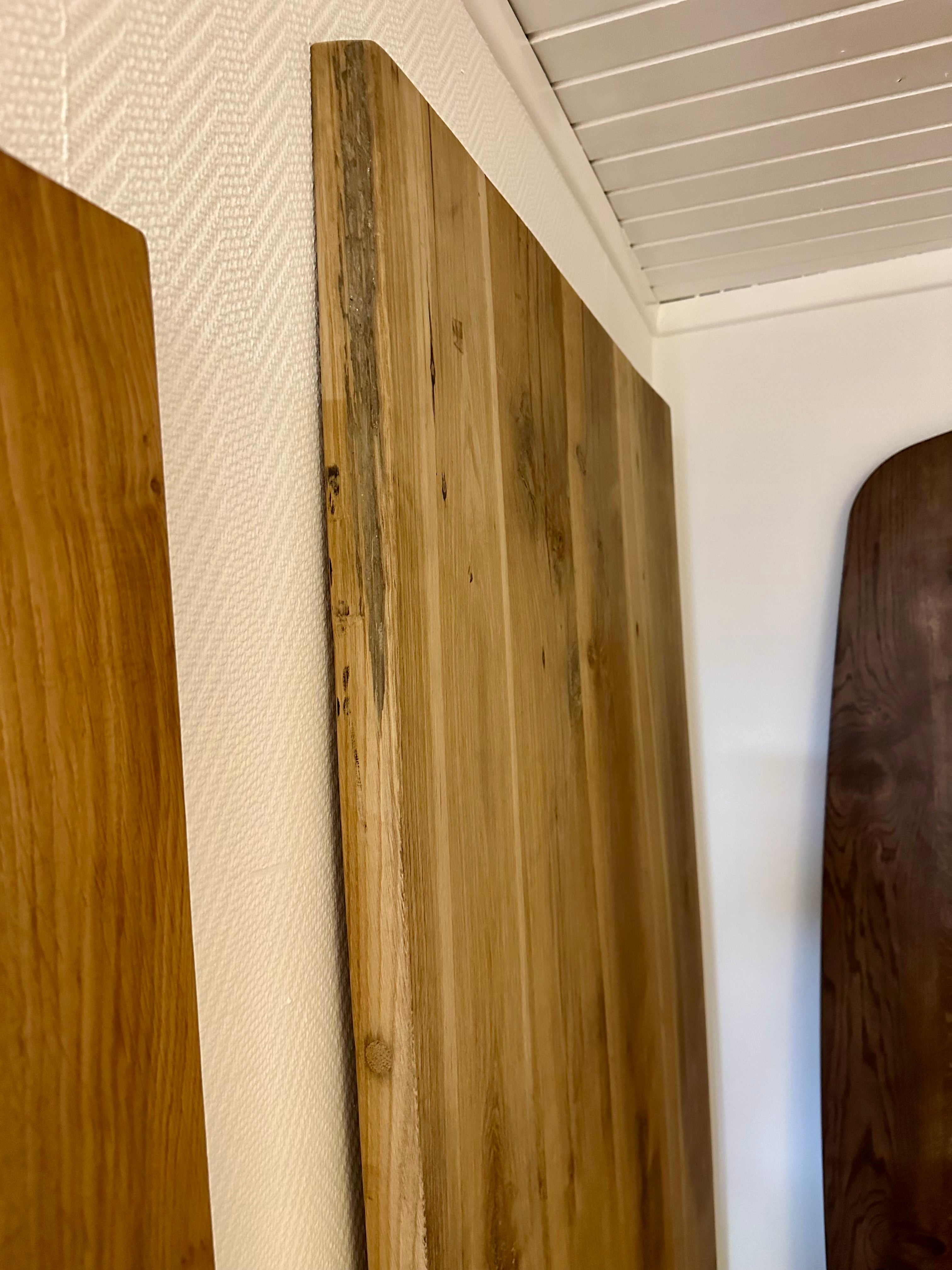 Die Altholzplatte wurde aus alten Eichebohlen (meist alte Scheunen) hergestellt und zum Tisch verarbeitet. Das spiegelt den wahren Charakter des Holzes wieder. Jede Platte erzählt somit eine eigene Geschichte.