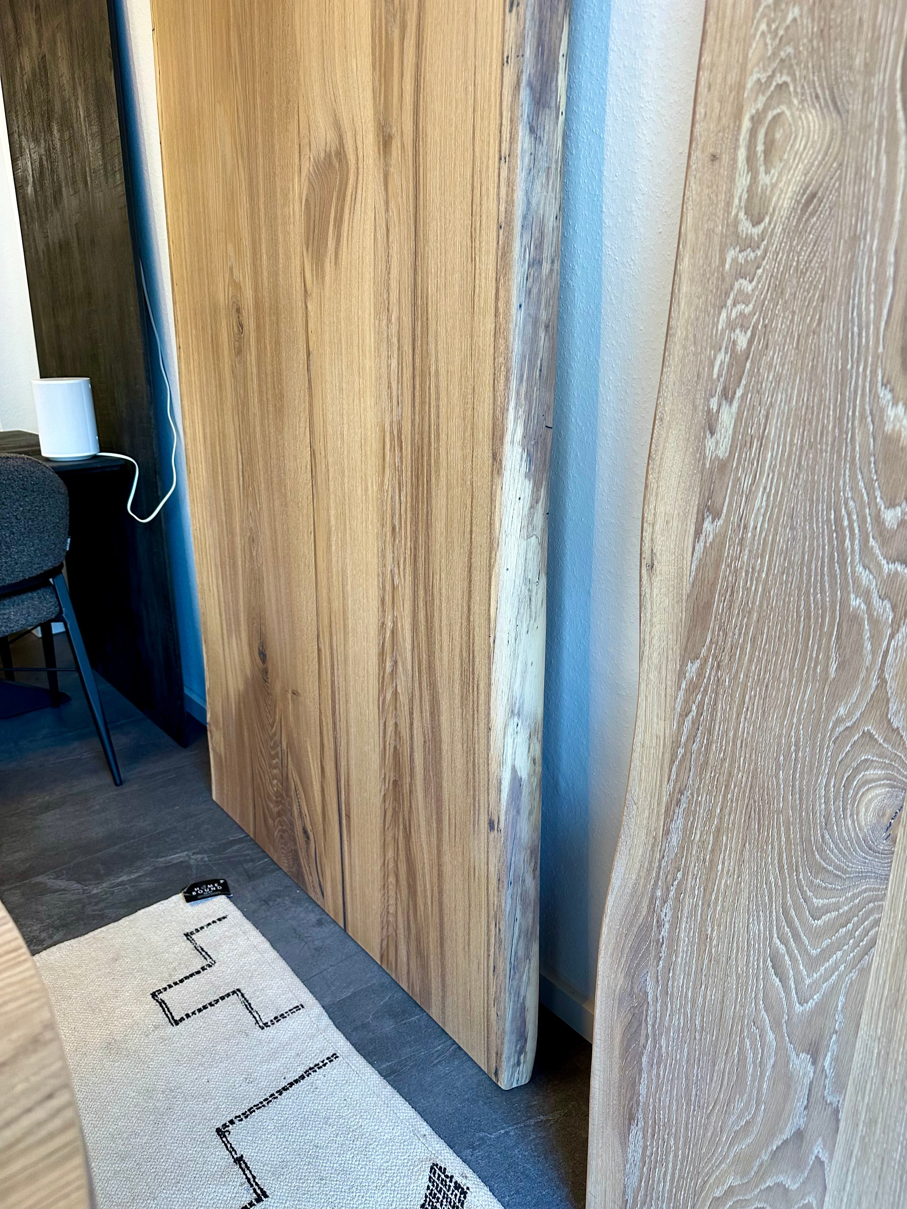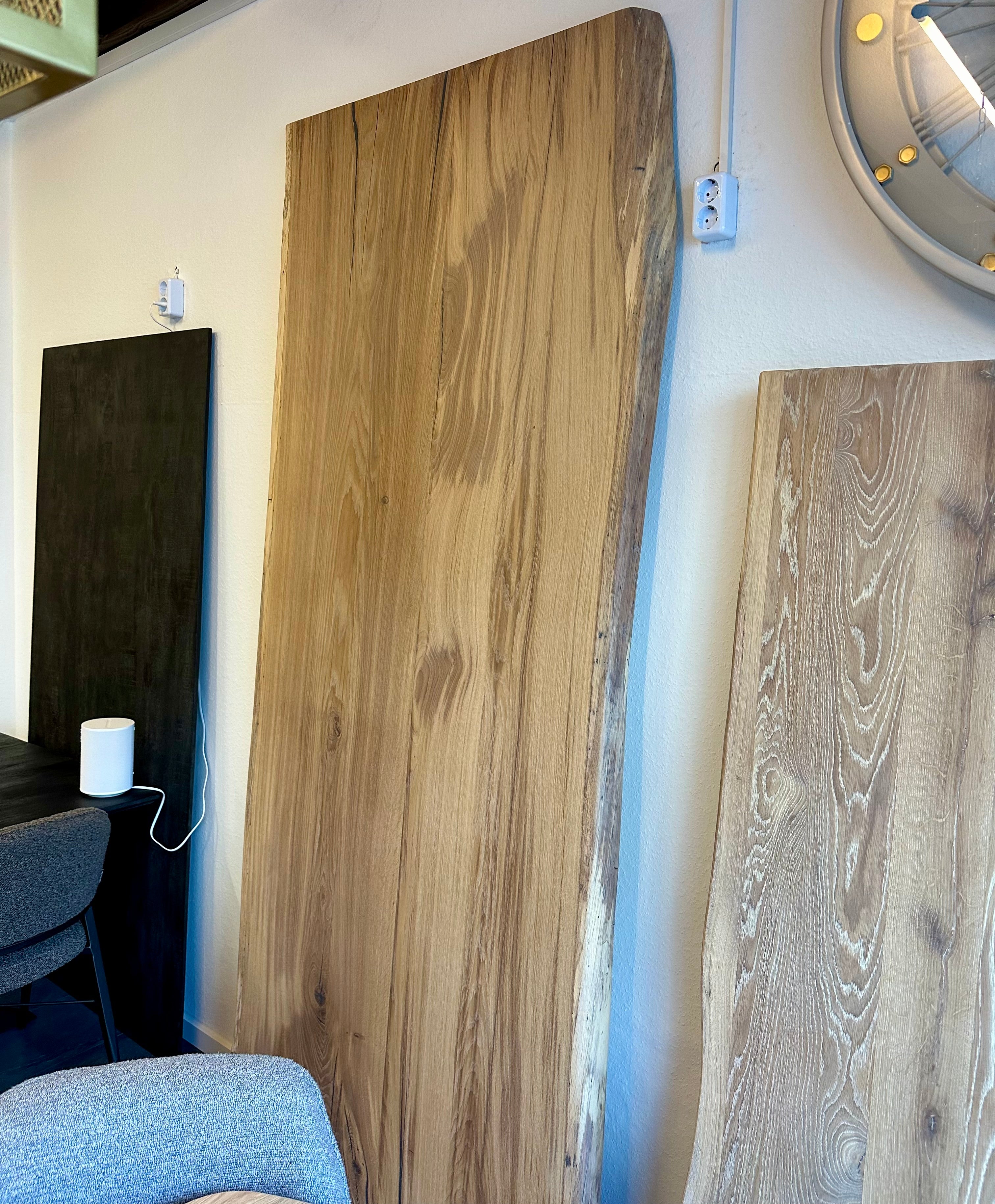 Alle Wesel Eicheplatten haben eine wilde und natürliche Baumkante und sind vollmassiv.