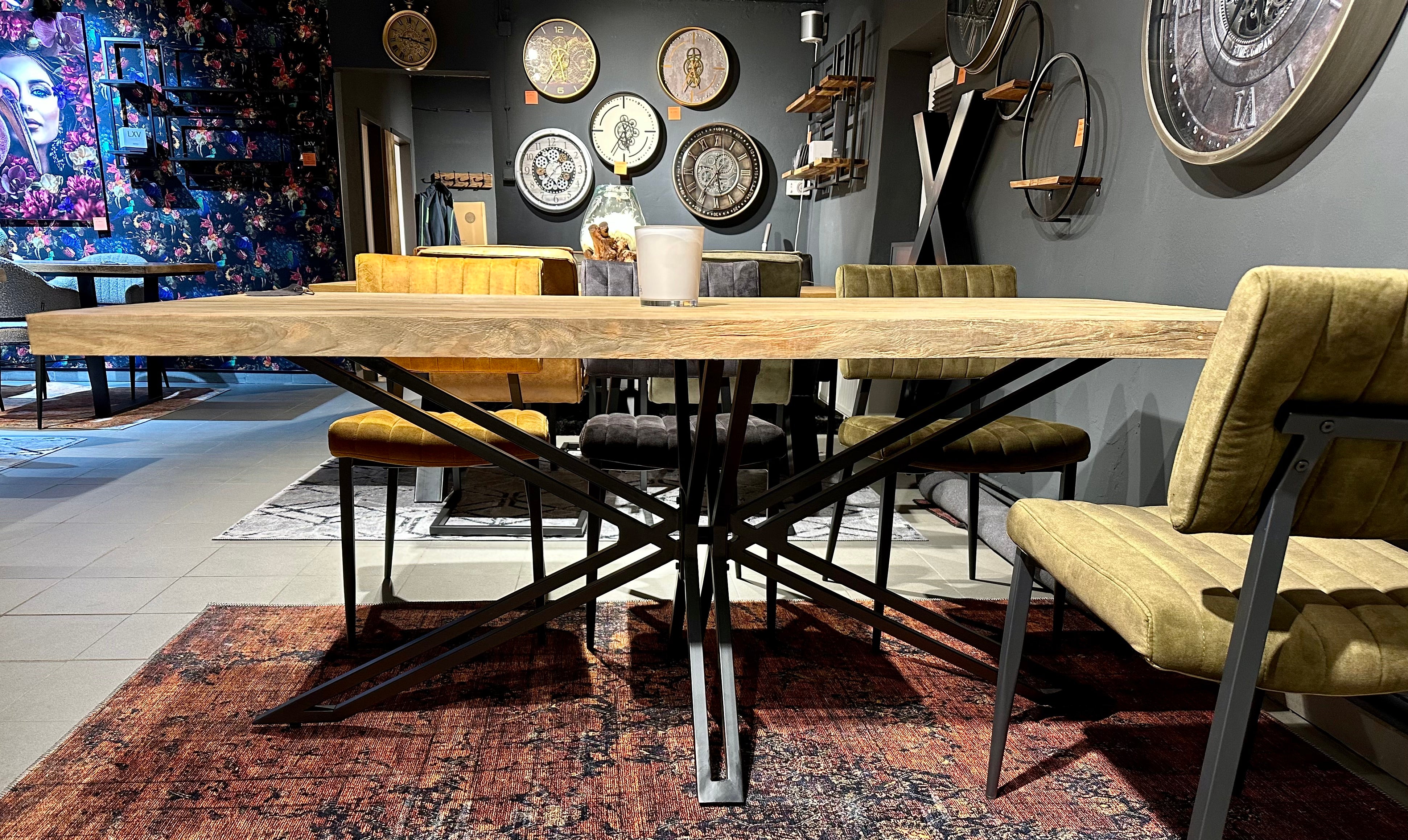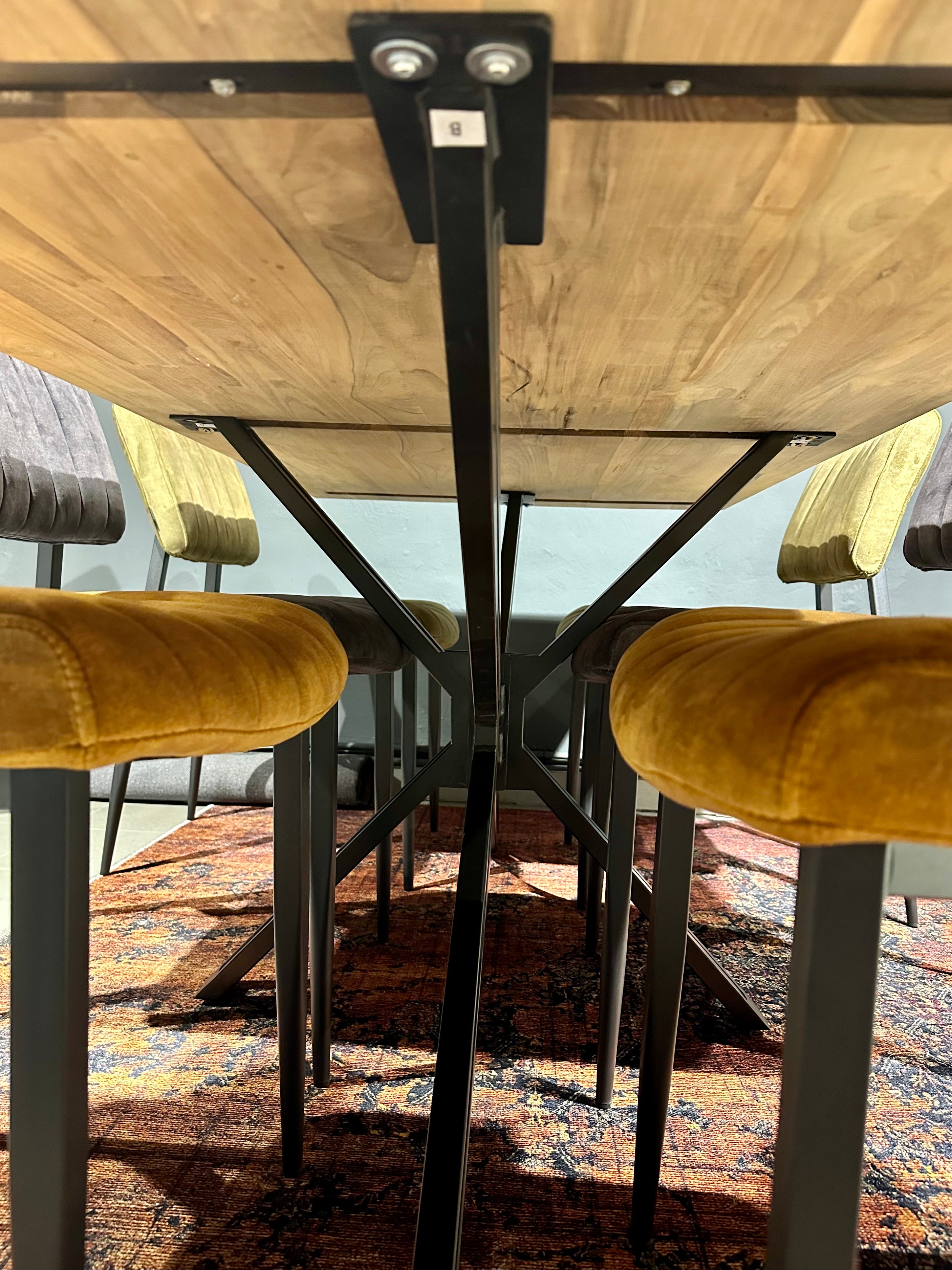 Der Holztisch hat ein schwarzes, mittiges und filigranes Matrix Gestell (lackiert) und ist in 6 Größen bestellbar.