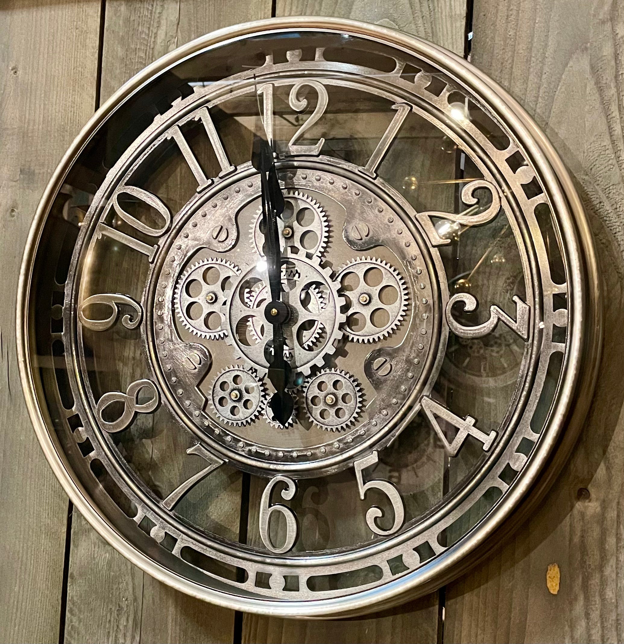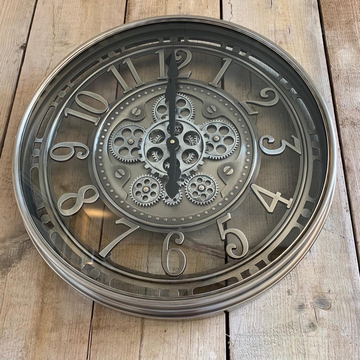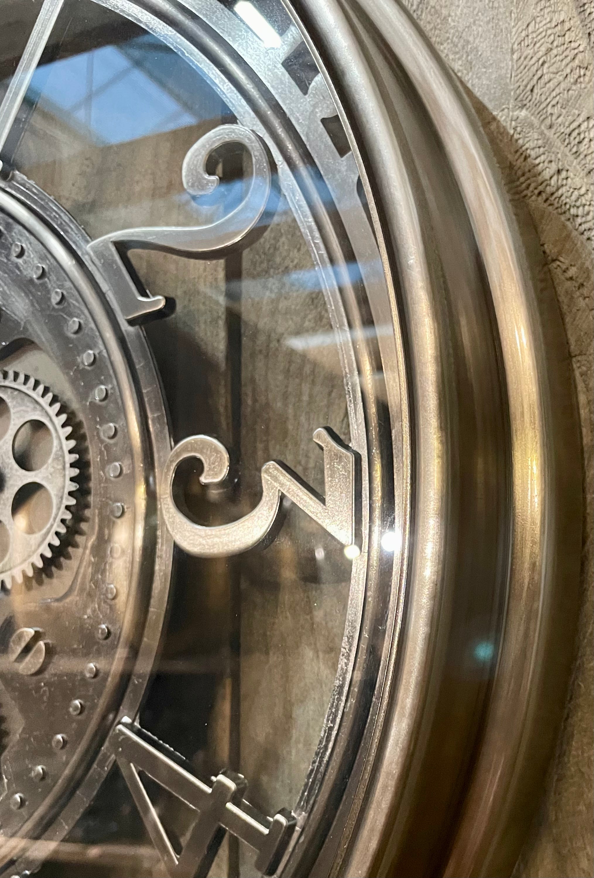 70 cm Wanduhr Zahnrad Berlin Zählwerk Animation silber grau