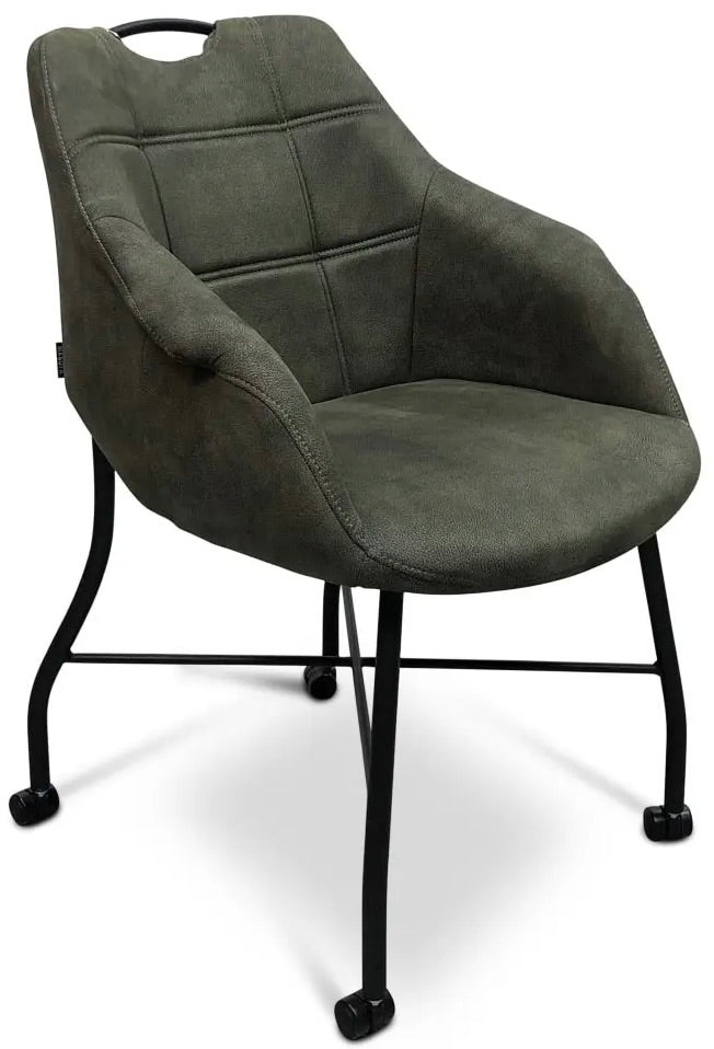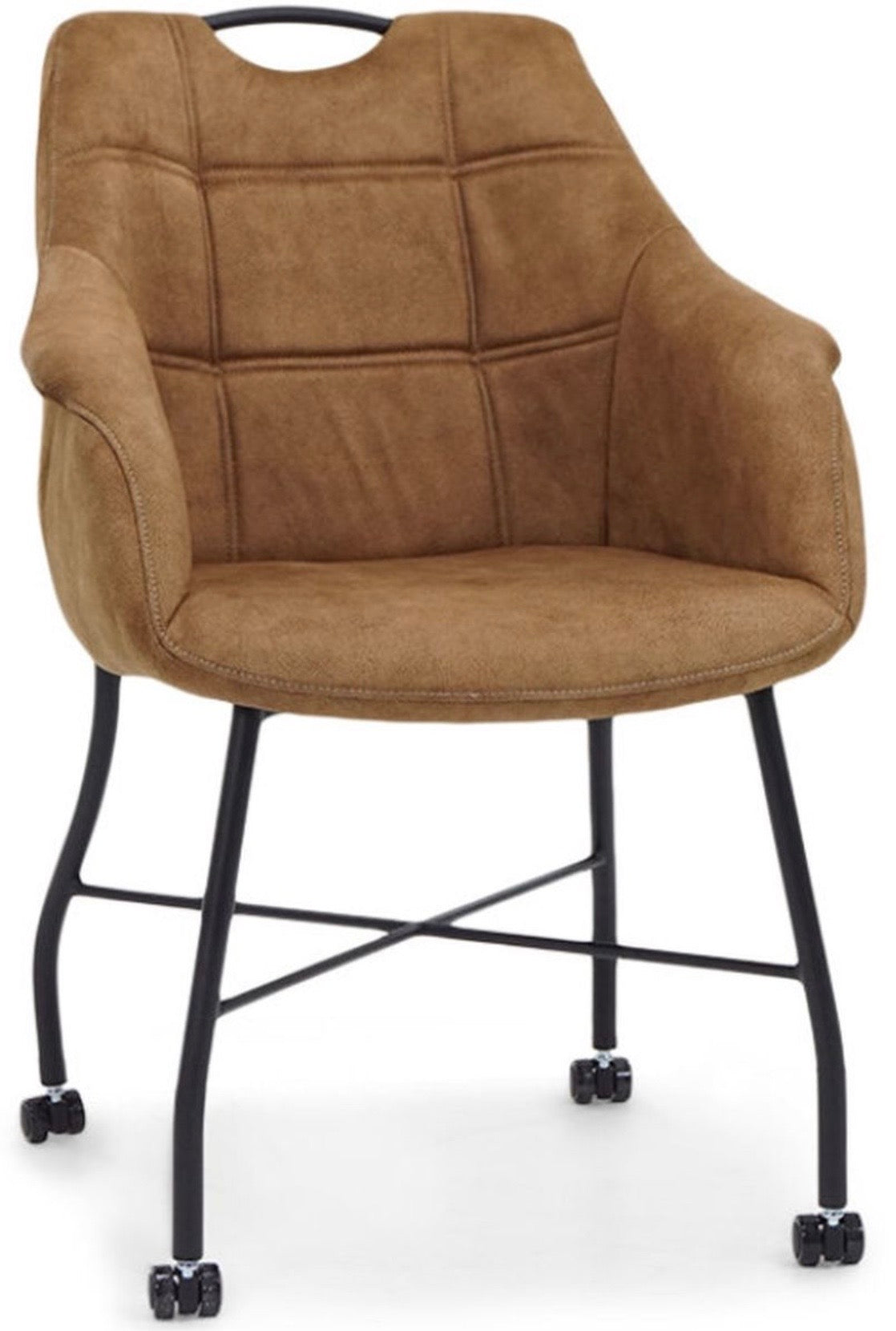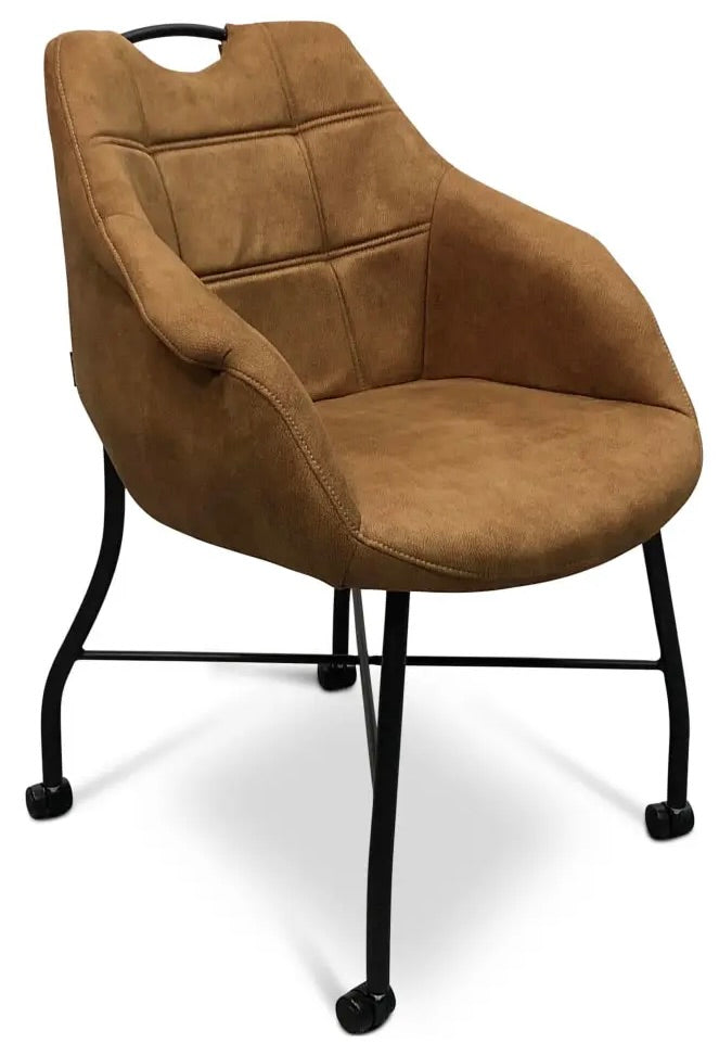 Armlehnenstuhl mit Rollen Promi Mikrofaser in 3 Farben Cognac-braun Grün Anthrazit