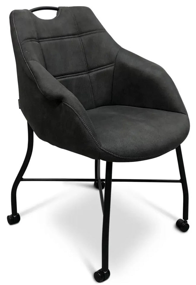 Durch die Rollen ist der Armlehnen-Stuhl sehr flexibel und lässt sich leicht zum Tisch schieben.