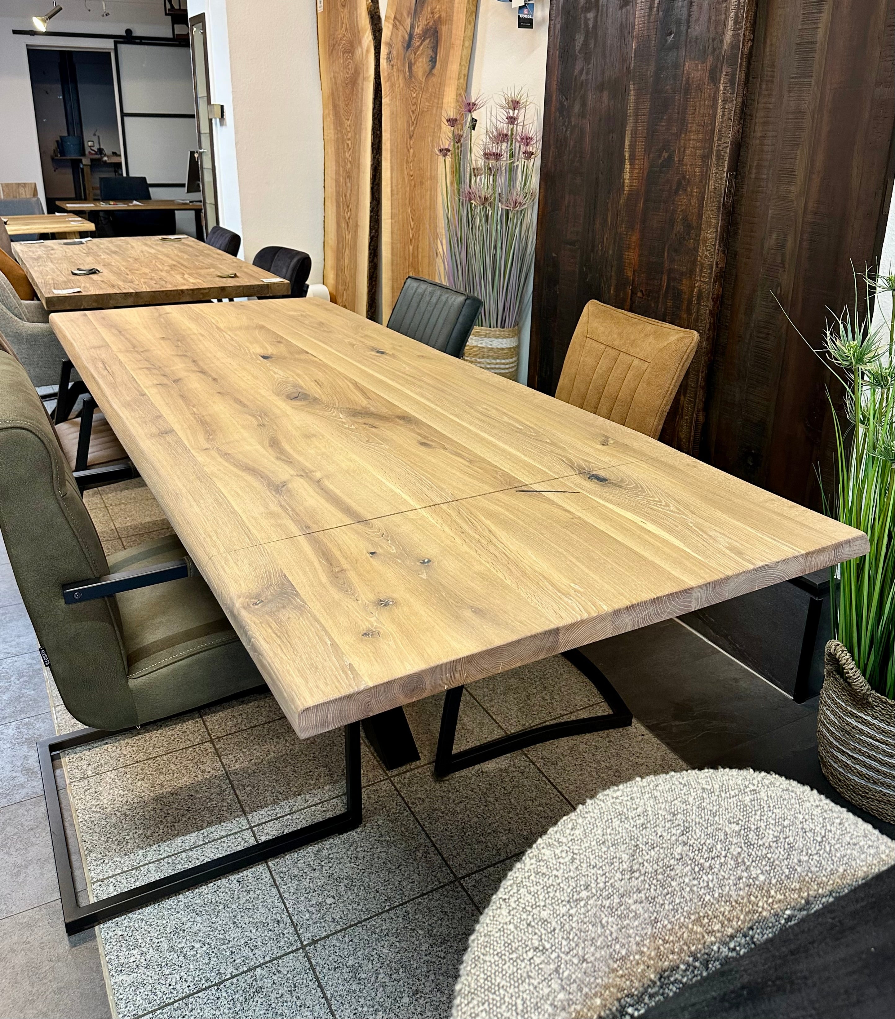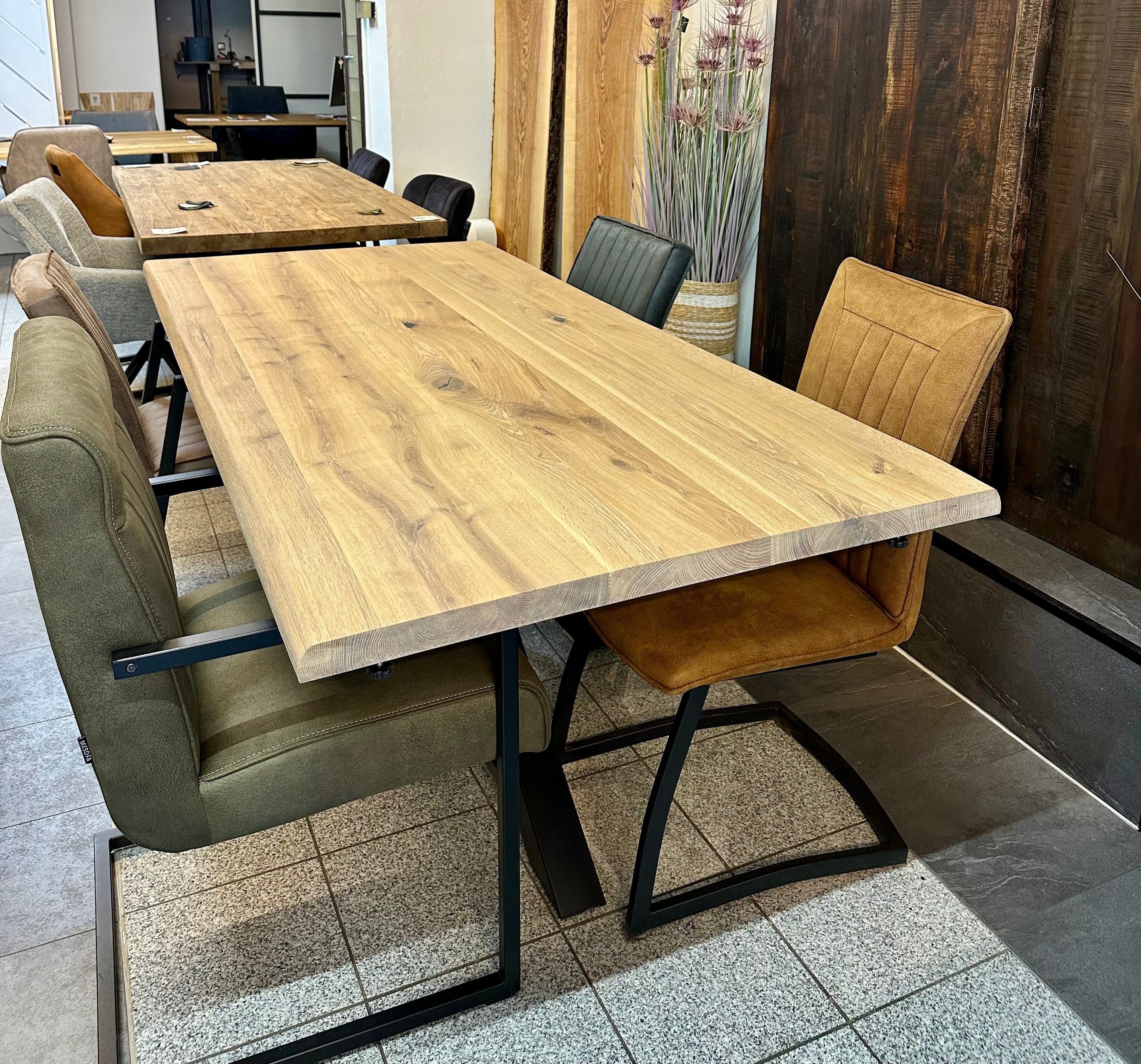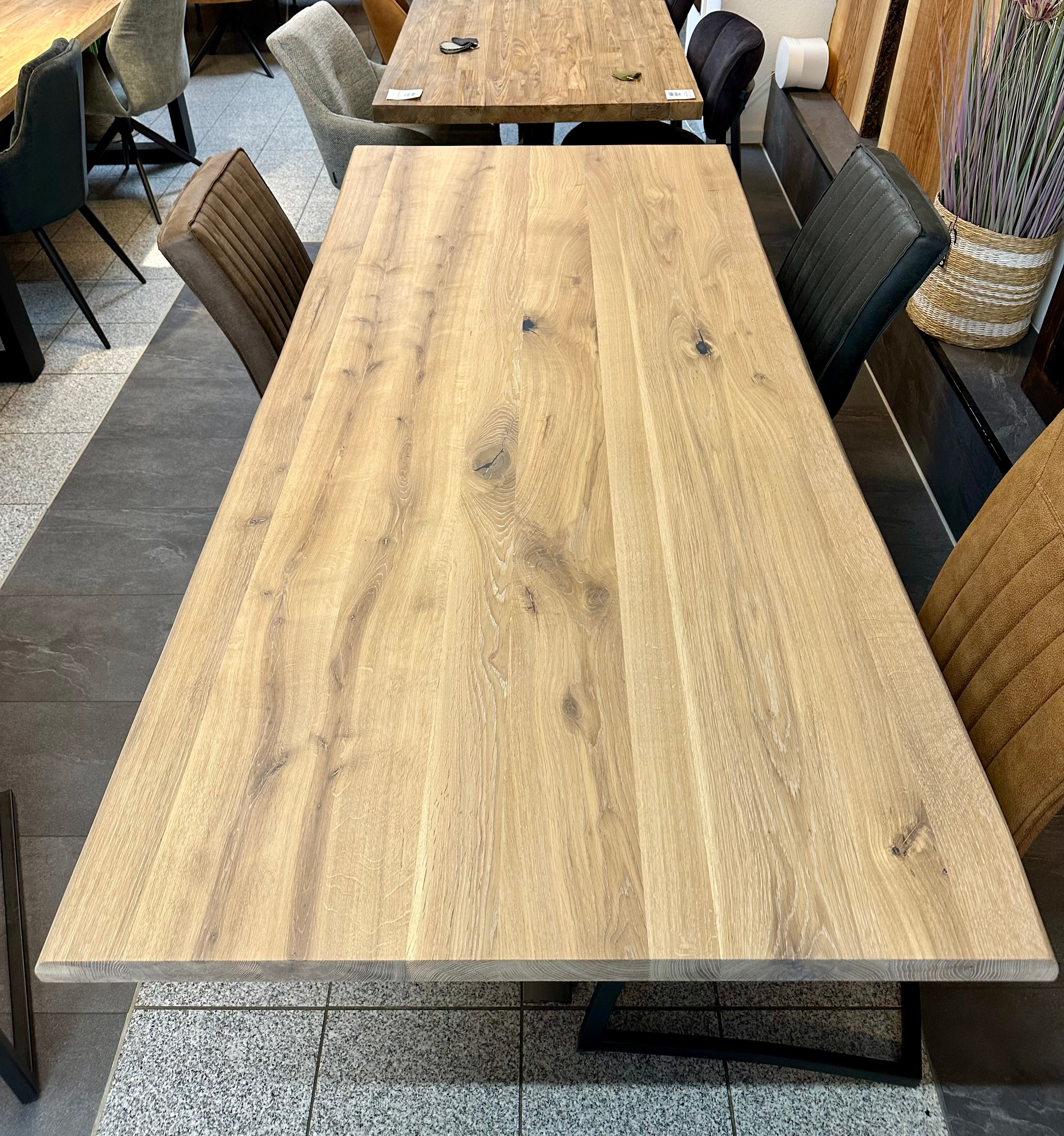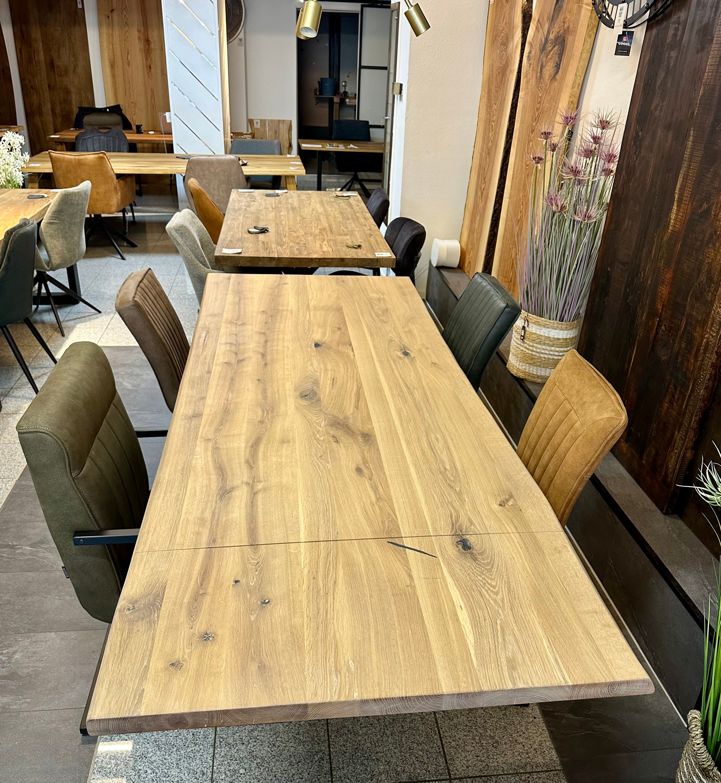 Falls sie Interesse an Eiche Holz Tischen haben, so fragen sie gerne an - wir haben sehr viele Platten in unterschiedlichen Längen und Breiten - auch die Gestelle können sie selbst bestimmen.
