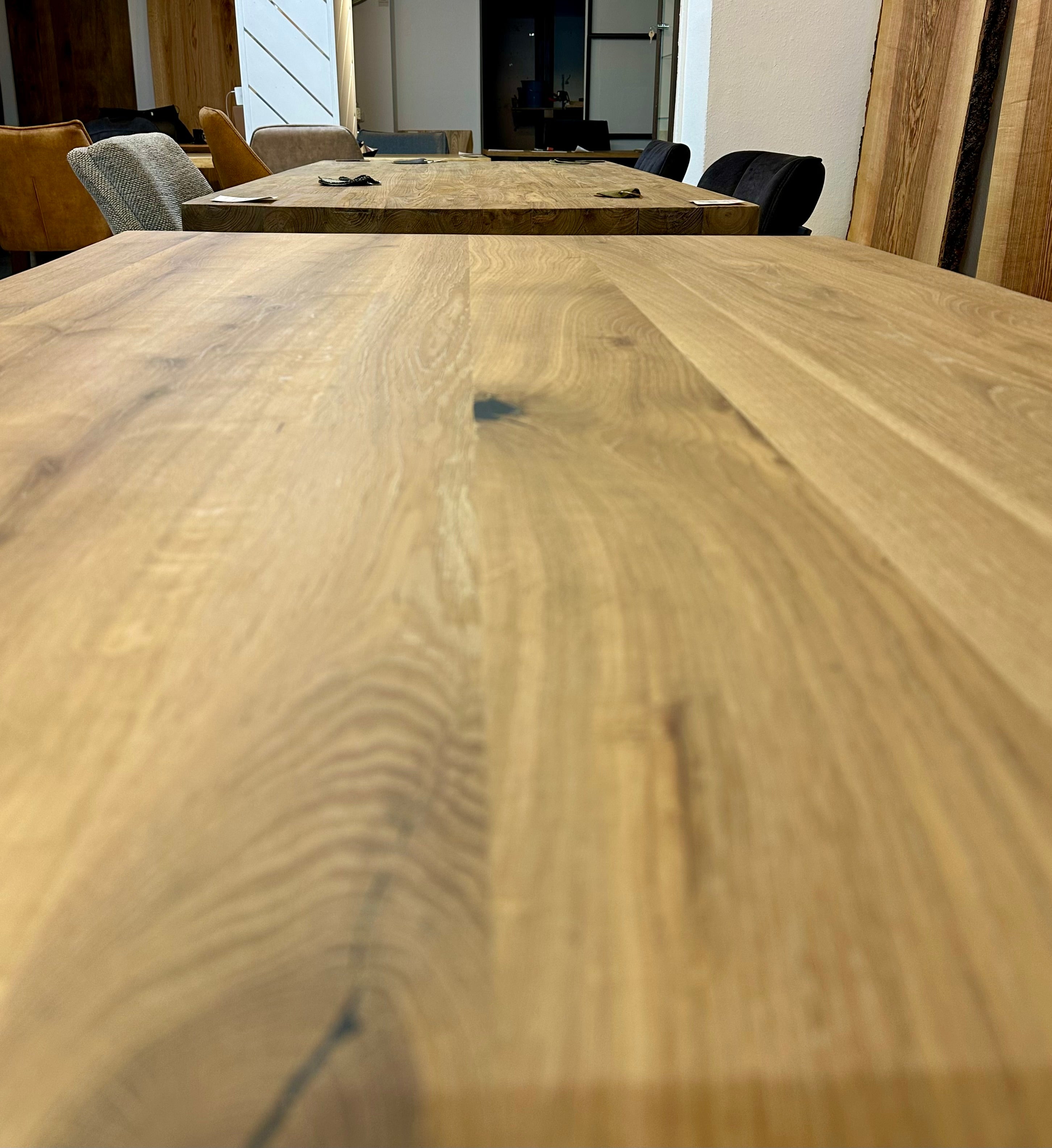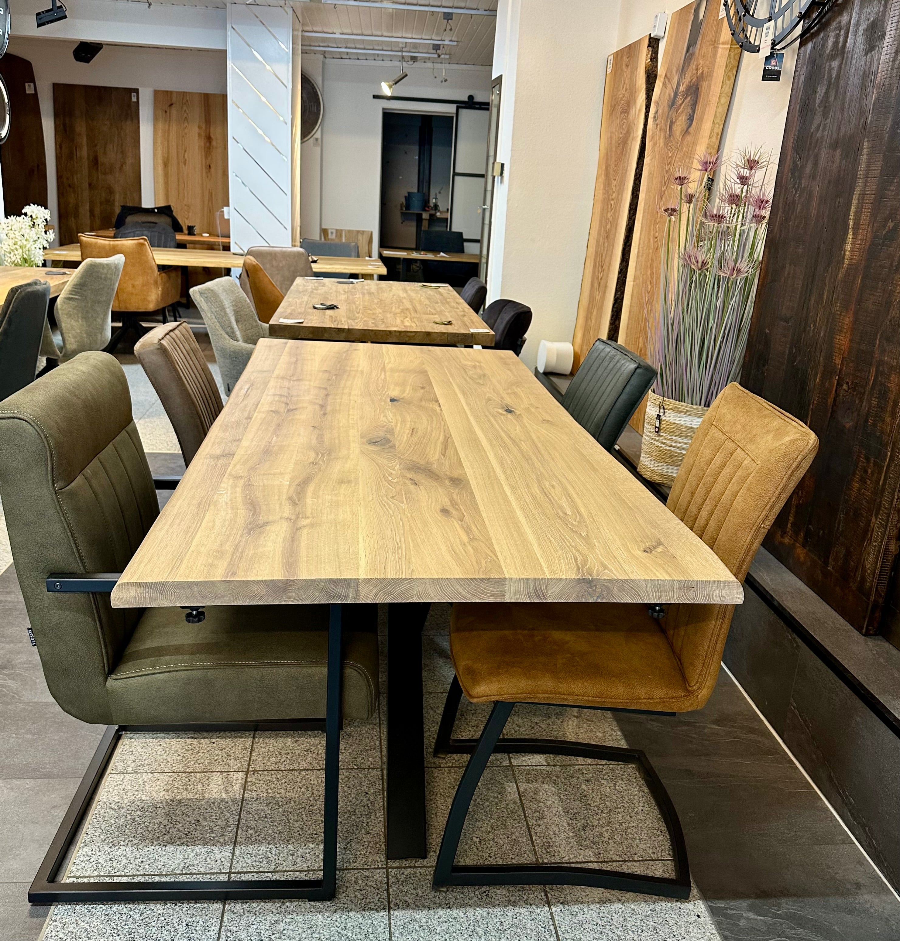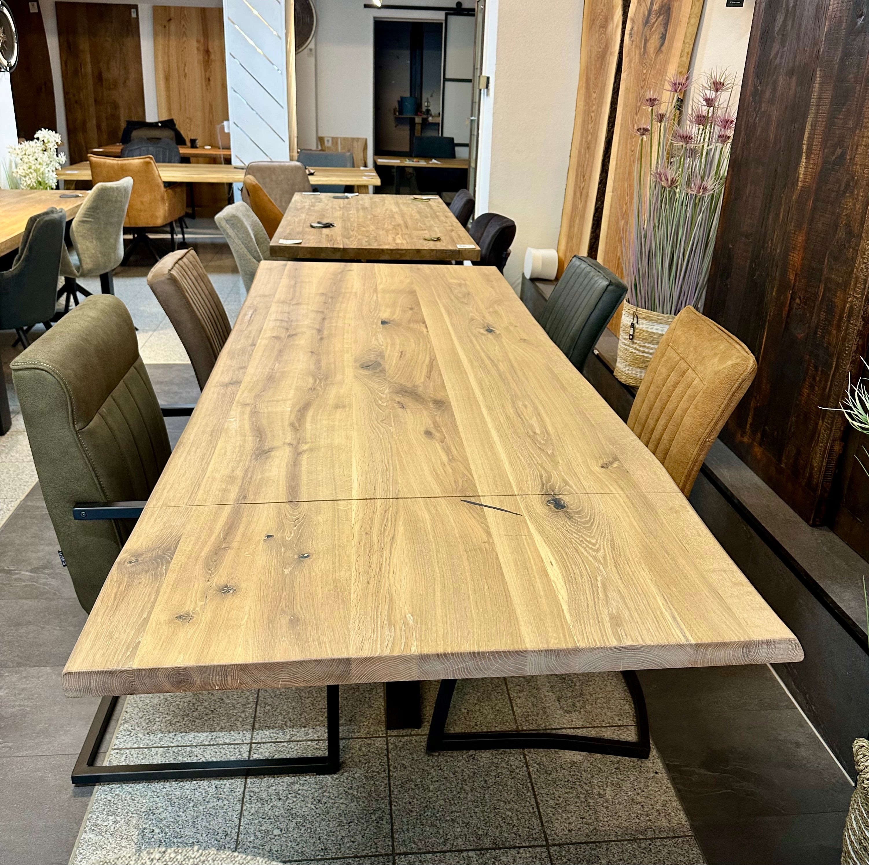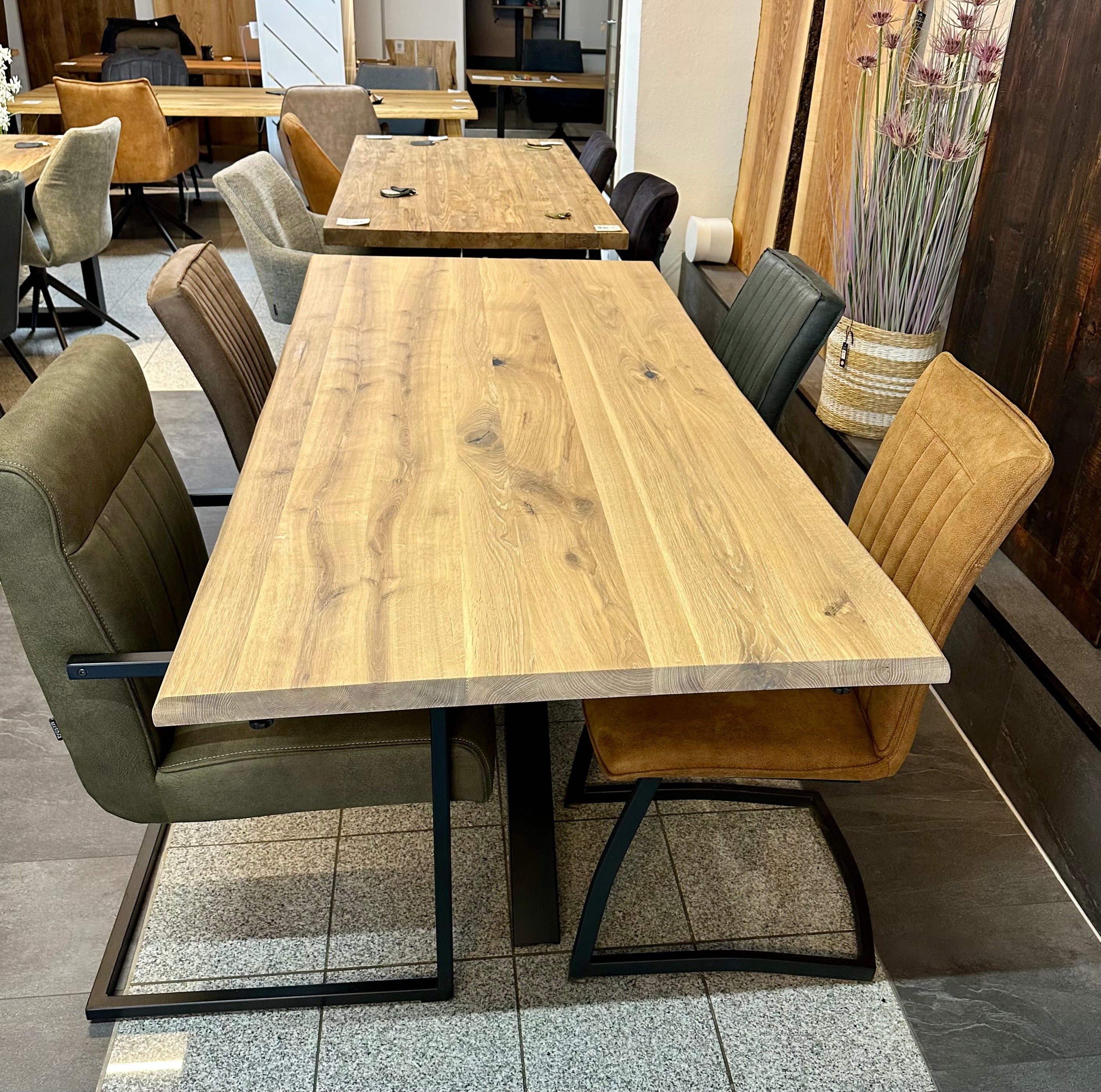 Falls sie Interesse an Eiche Holz Tischen haben, so fragen sie gerne an - wir haben sehr viele Platten in unterschiedlichen Längen und Breiten - auch die Gestelle können sie selbst bestimmen.