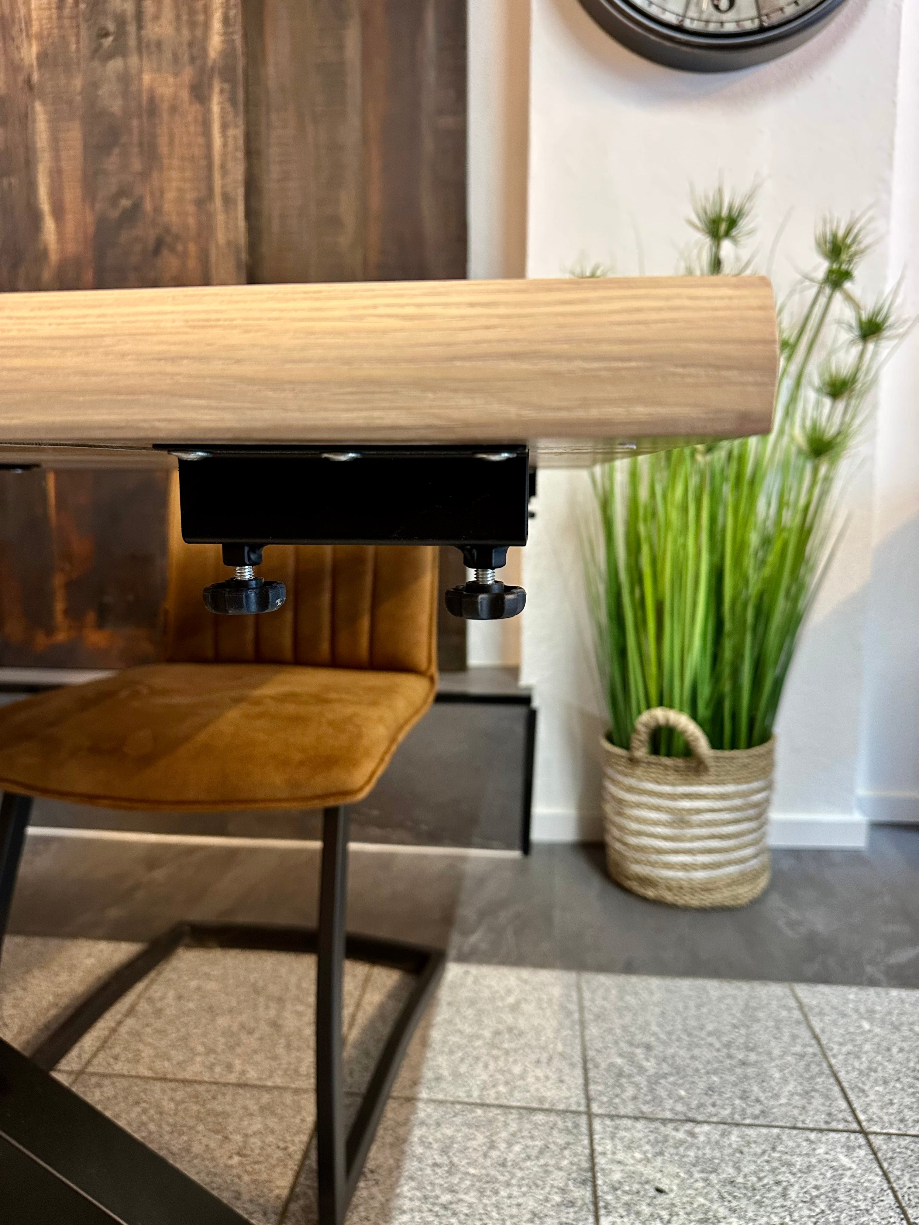 Die Oberfläche des Massivholz Tisches ist glatt und modern.