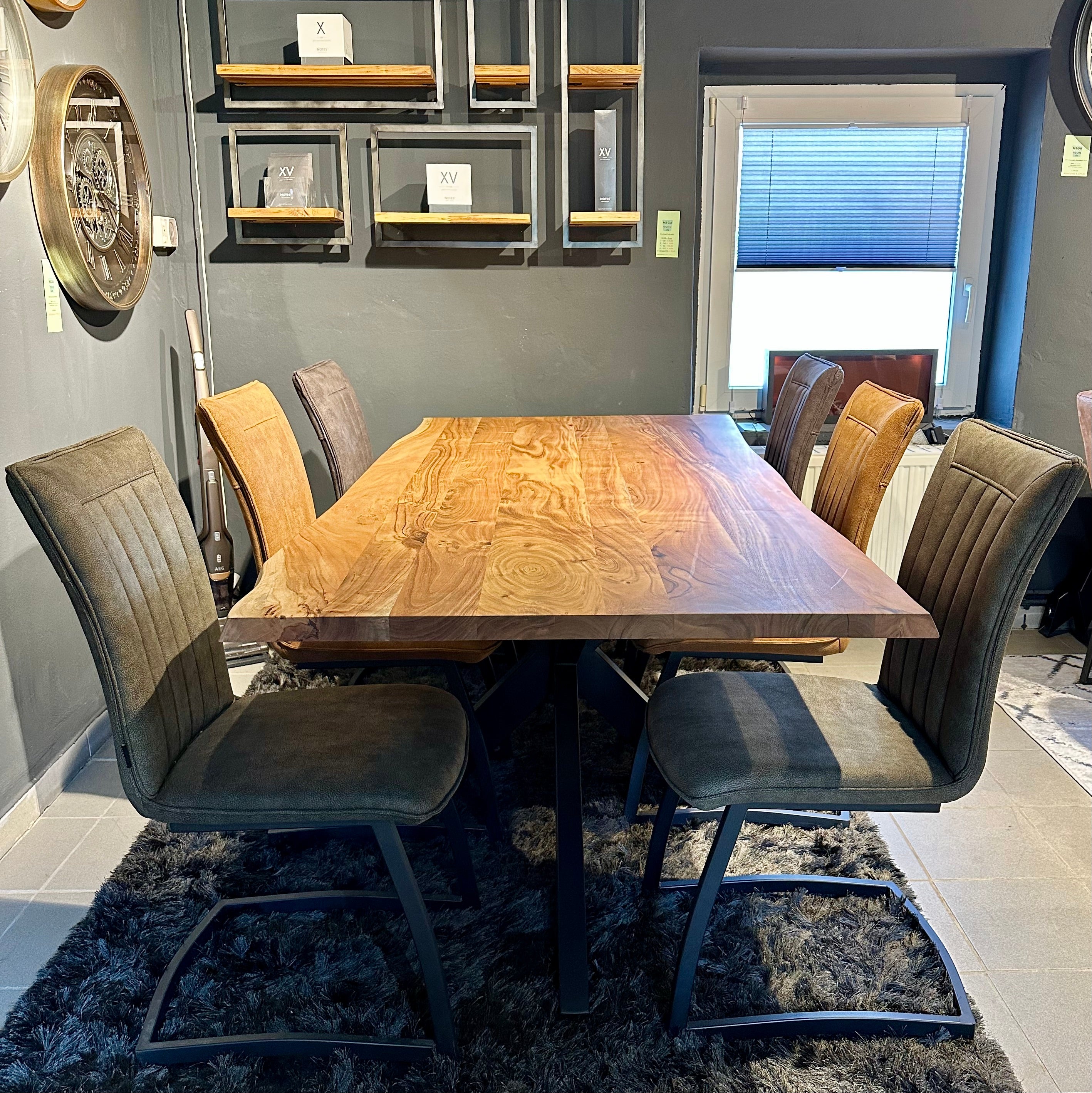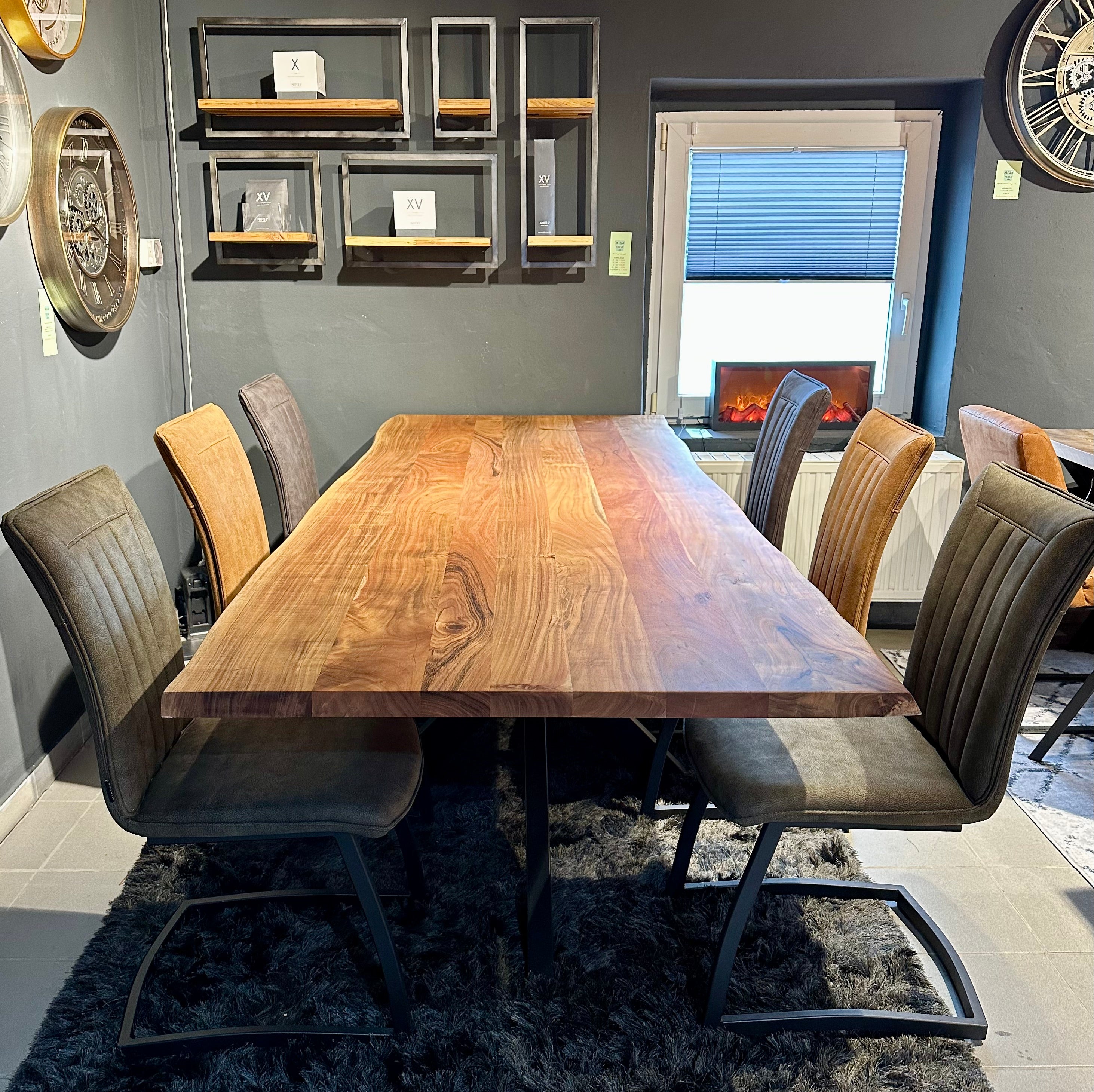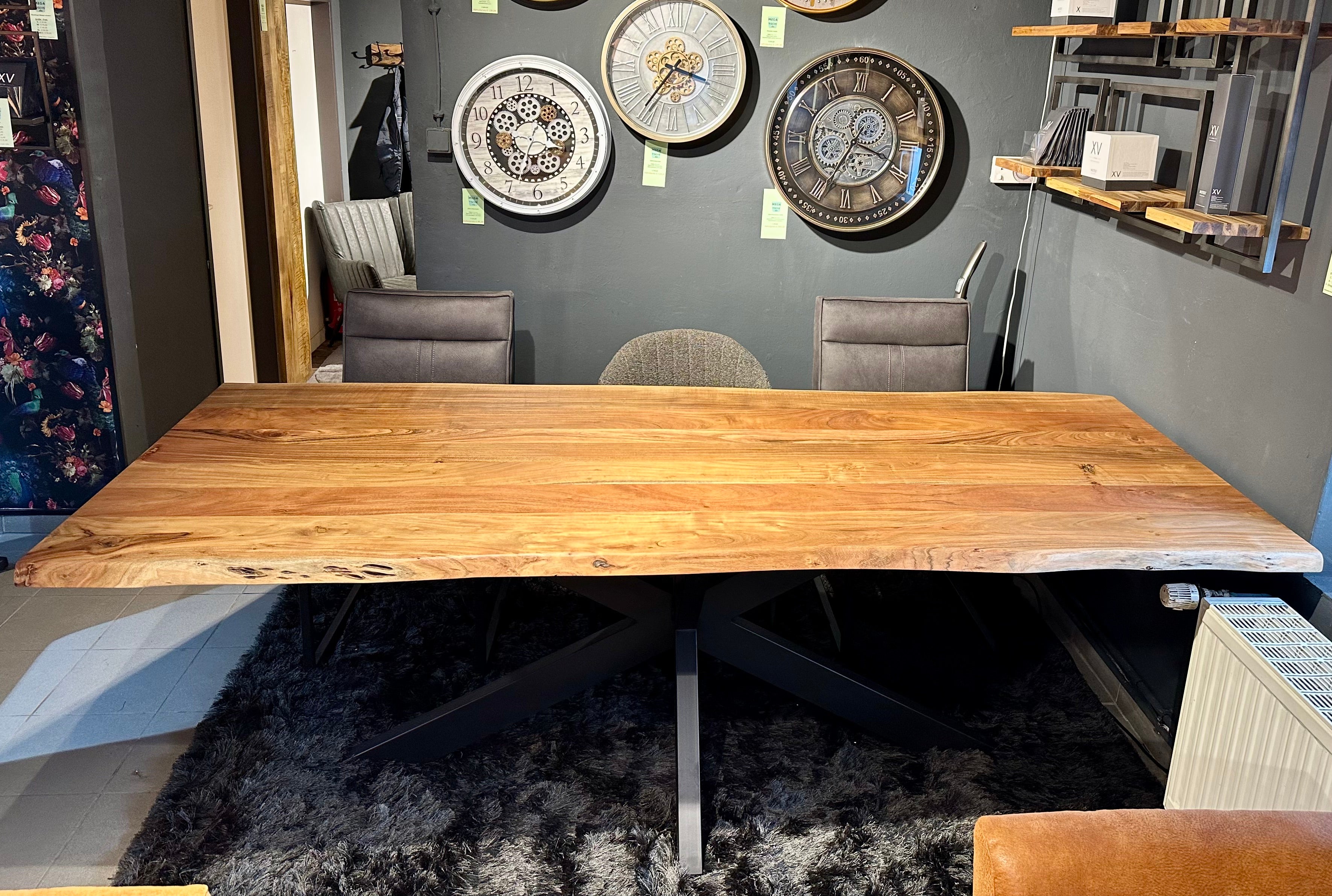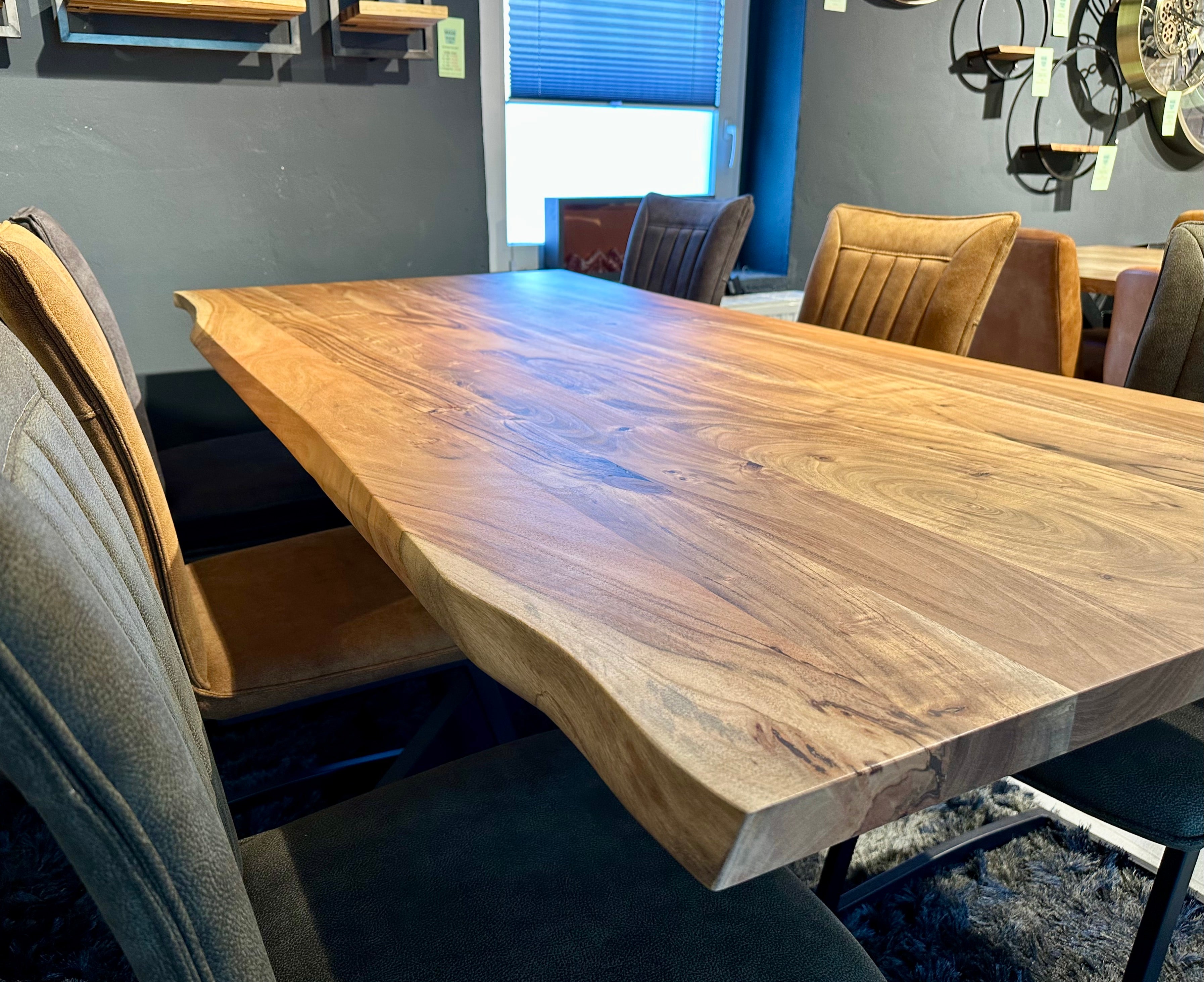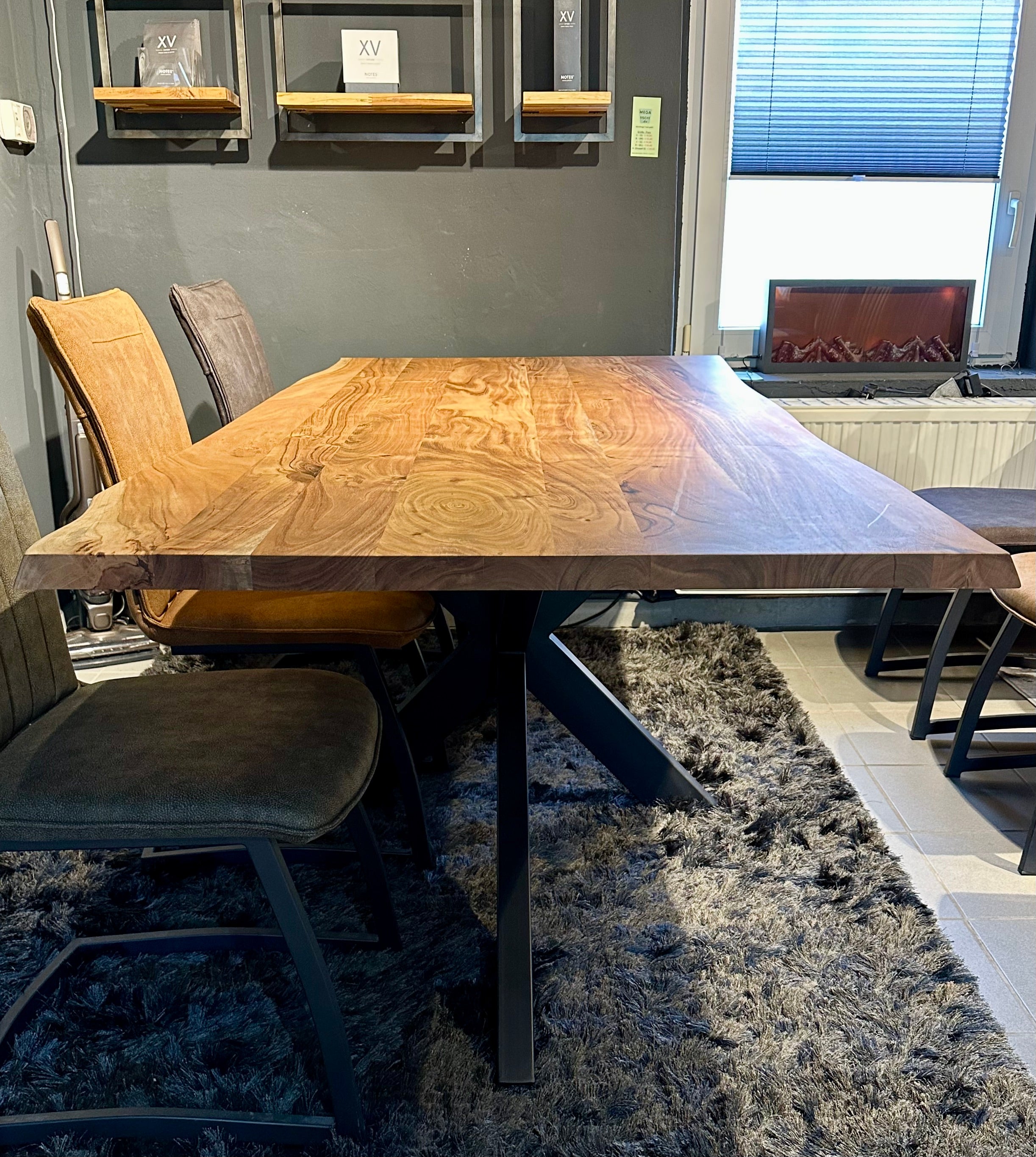 Baumkante Esstisch Yukon natur Akazie massiv & Spider Gestell in 3 Größen