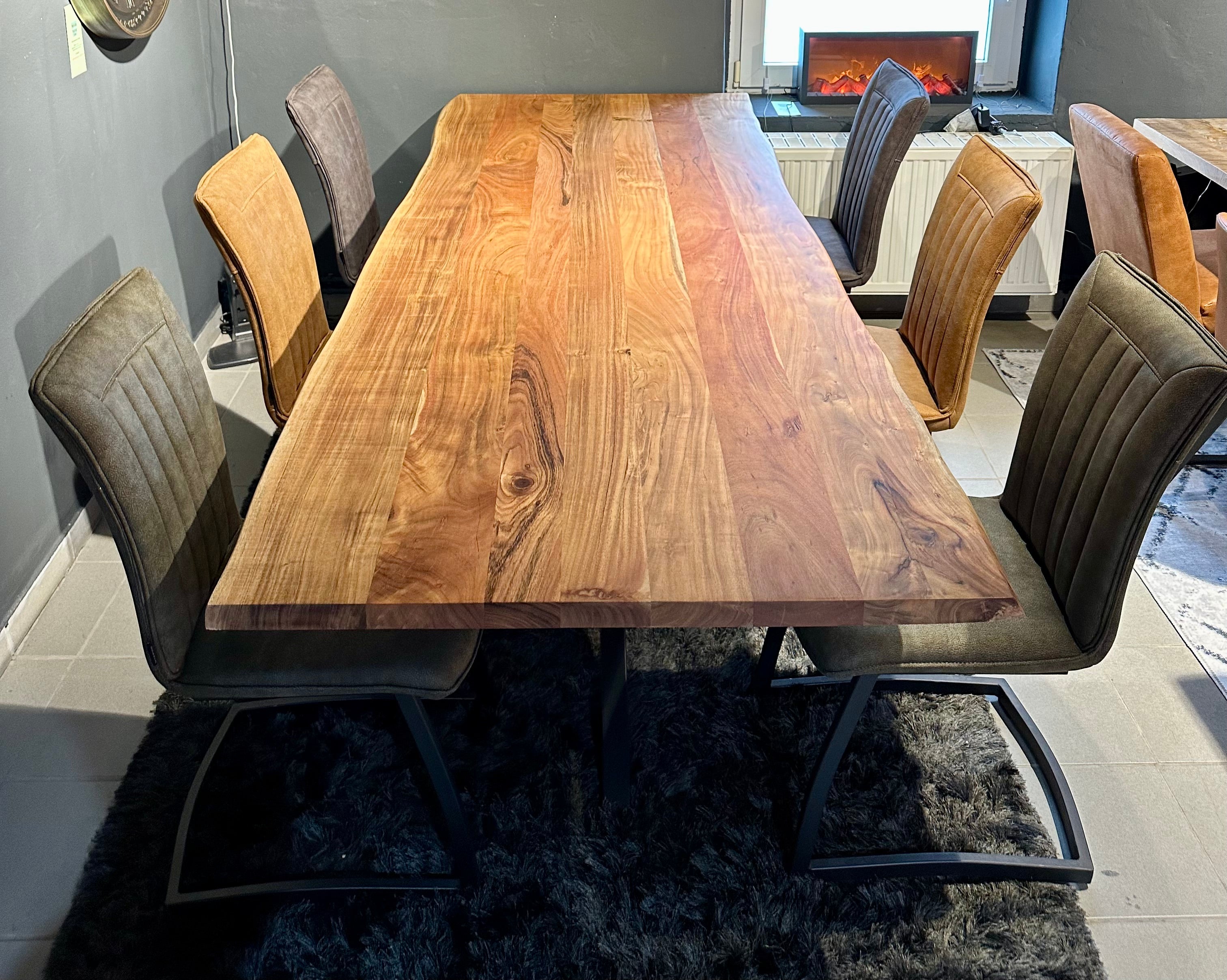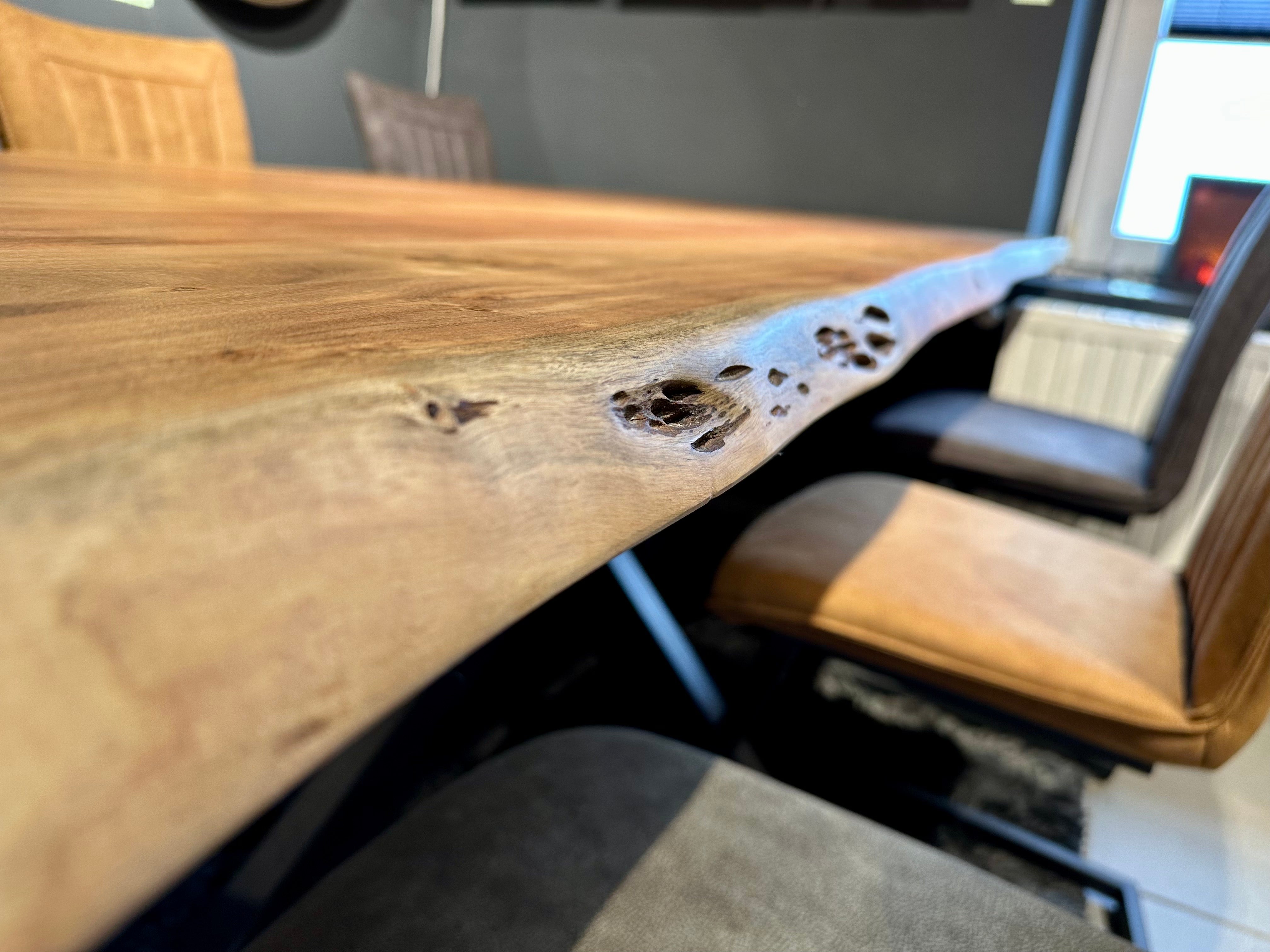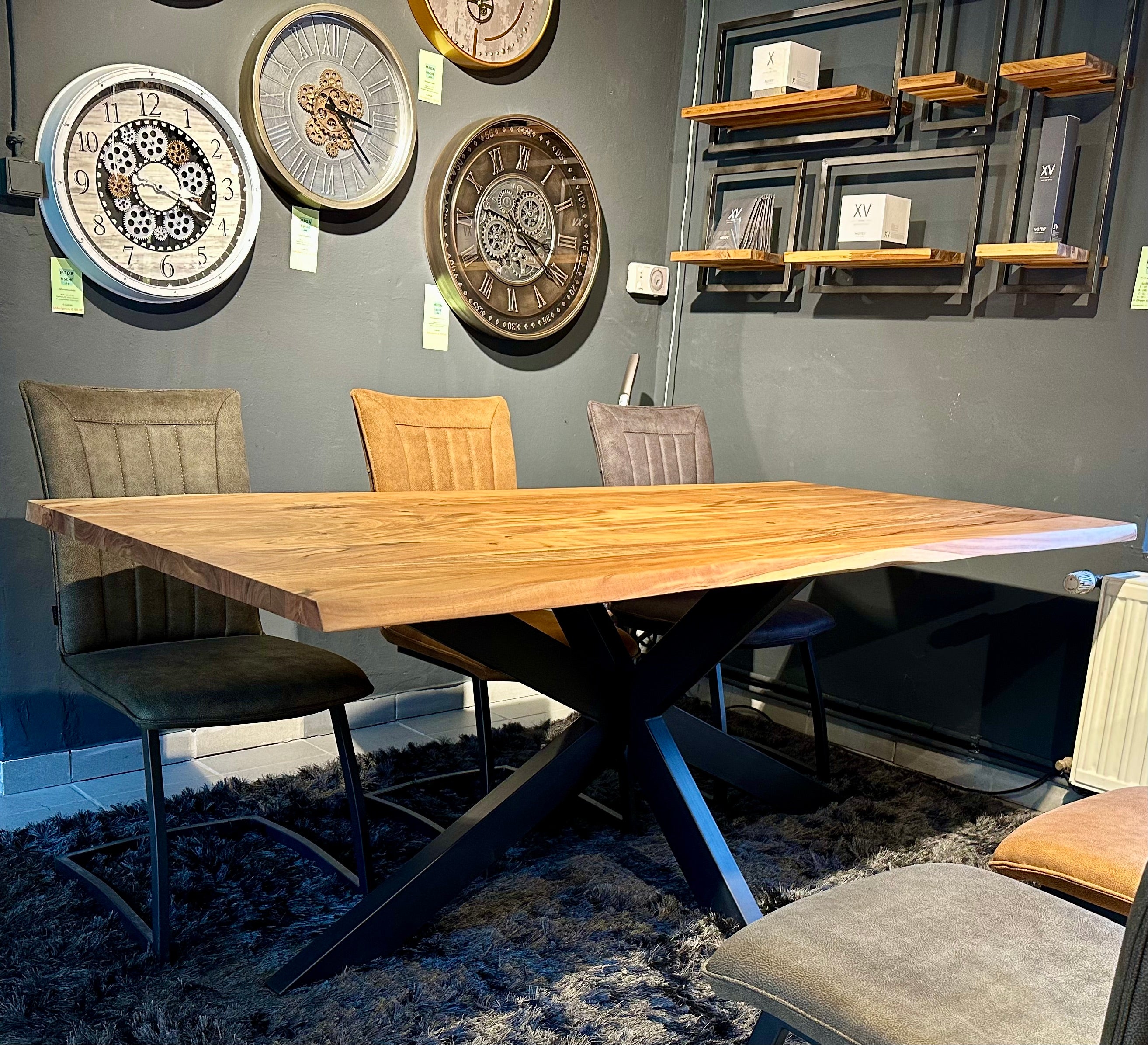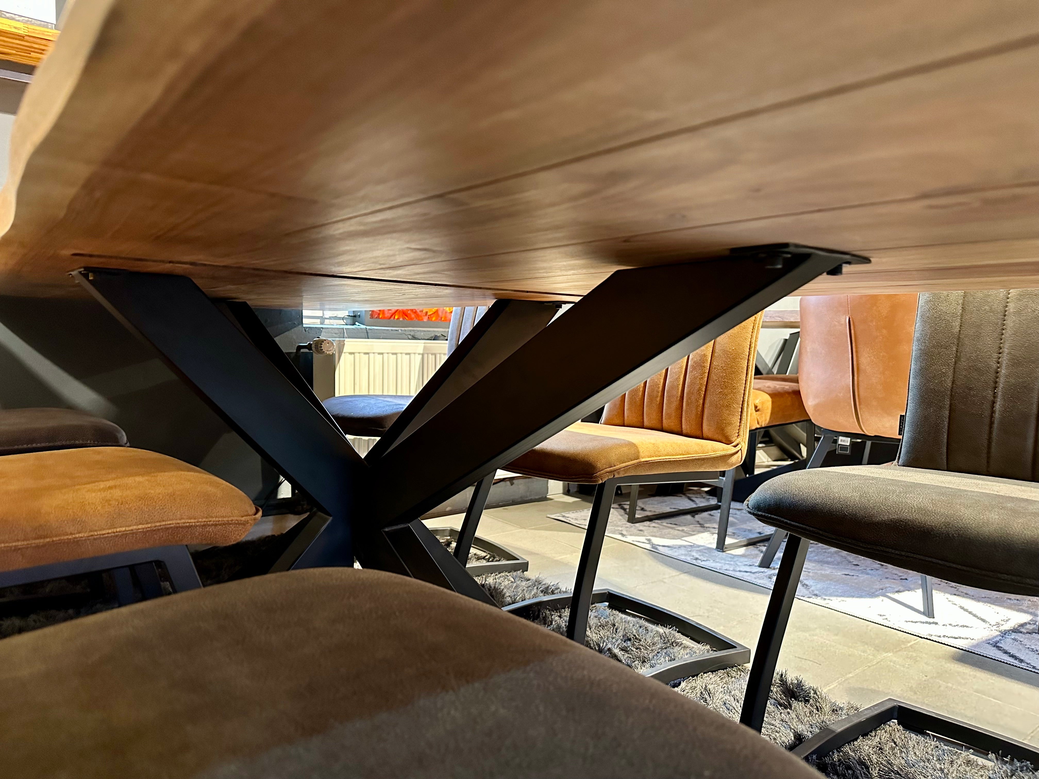 Baumkante Esstisch Yukon natur Akazie massiv & Spider Gestell in 3 Größen