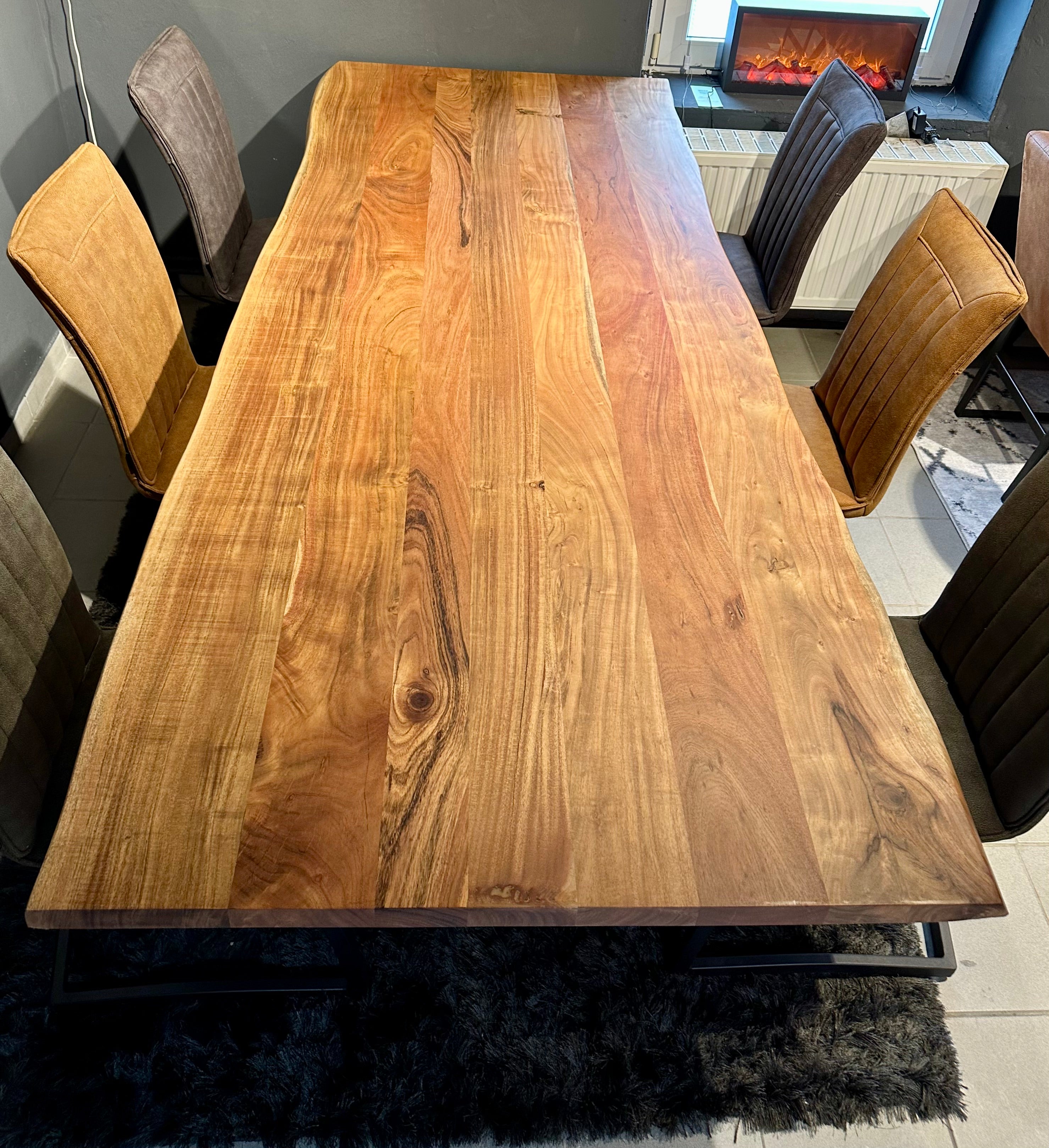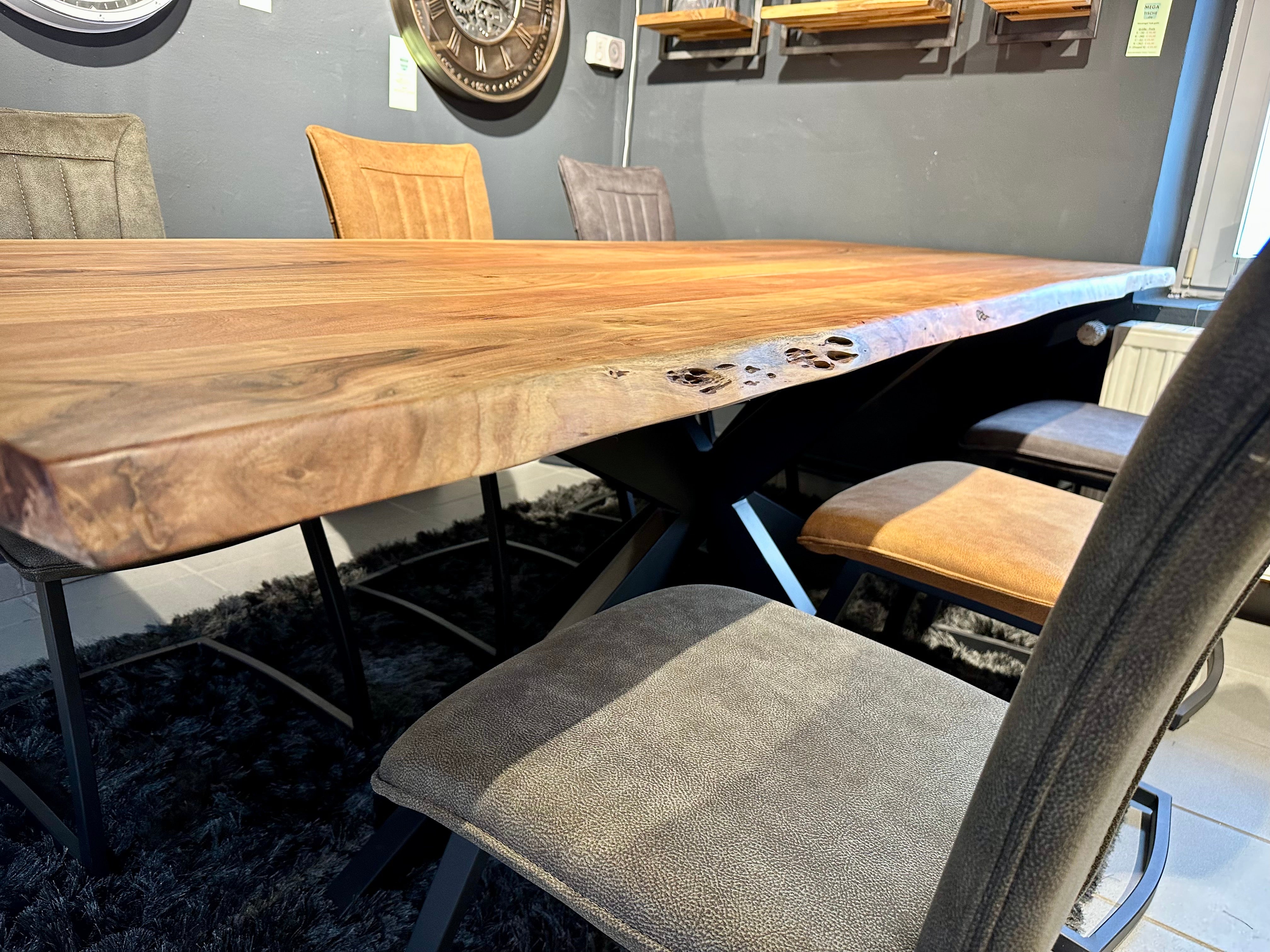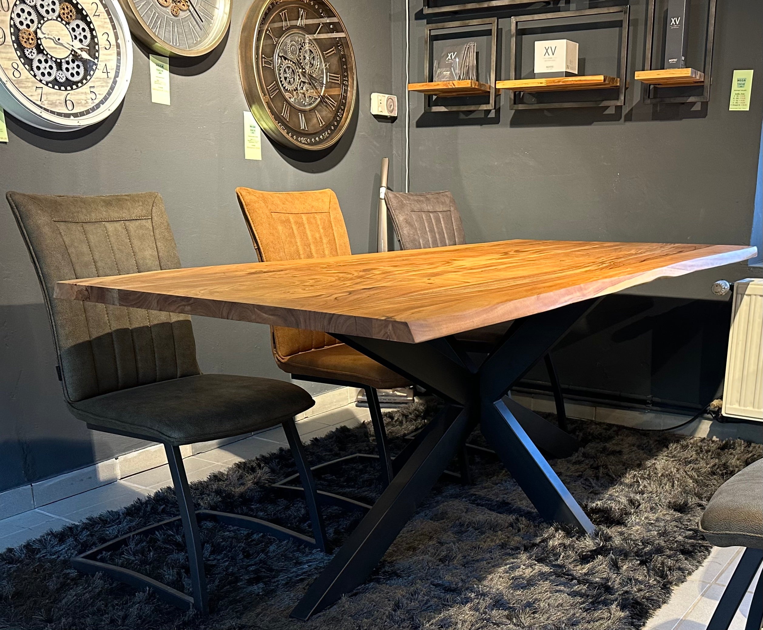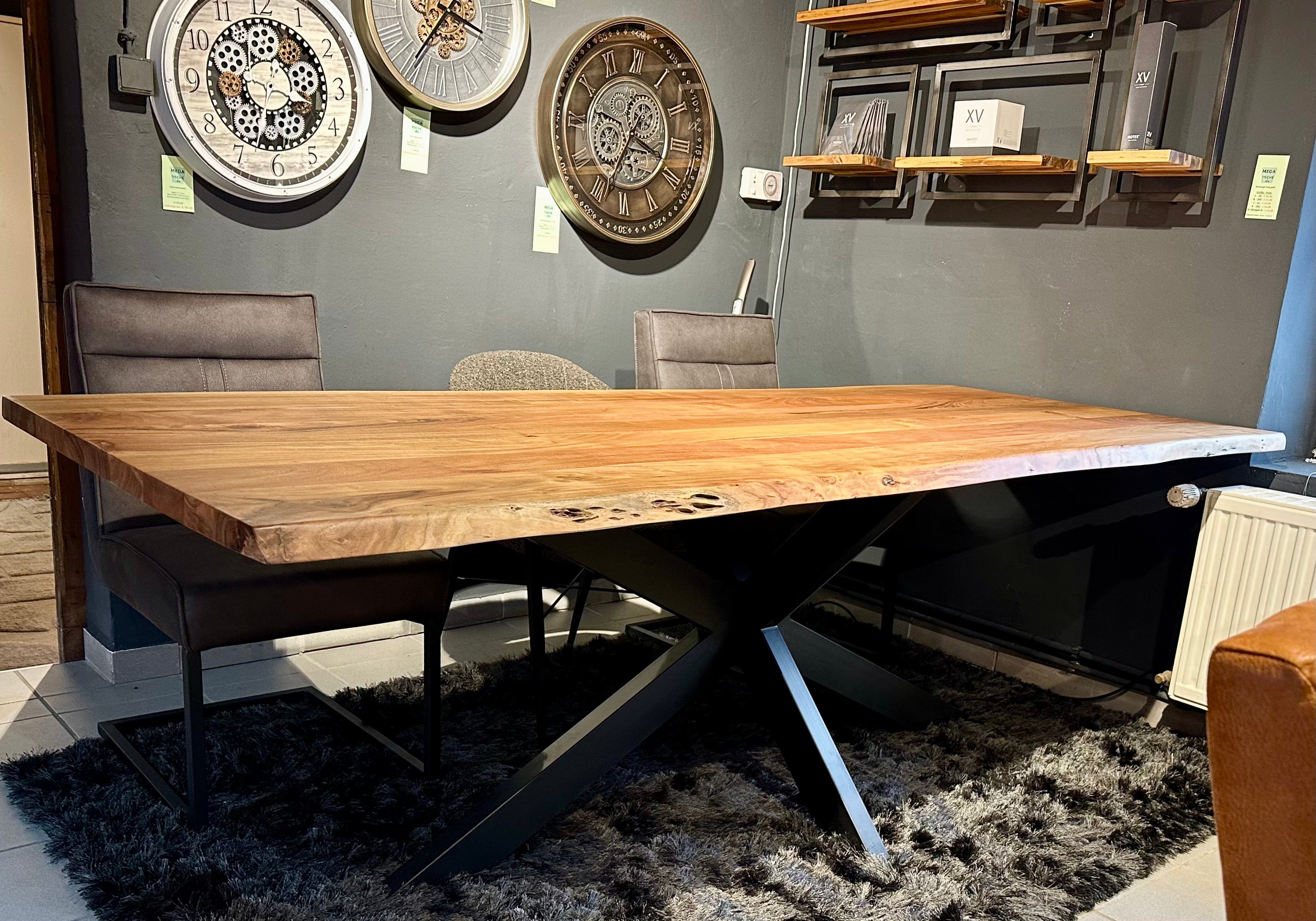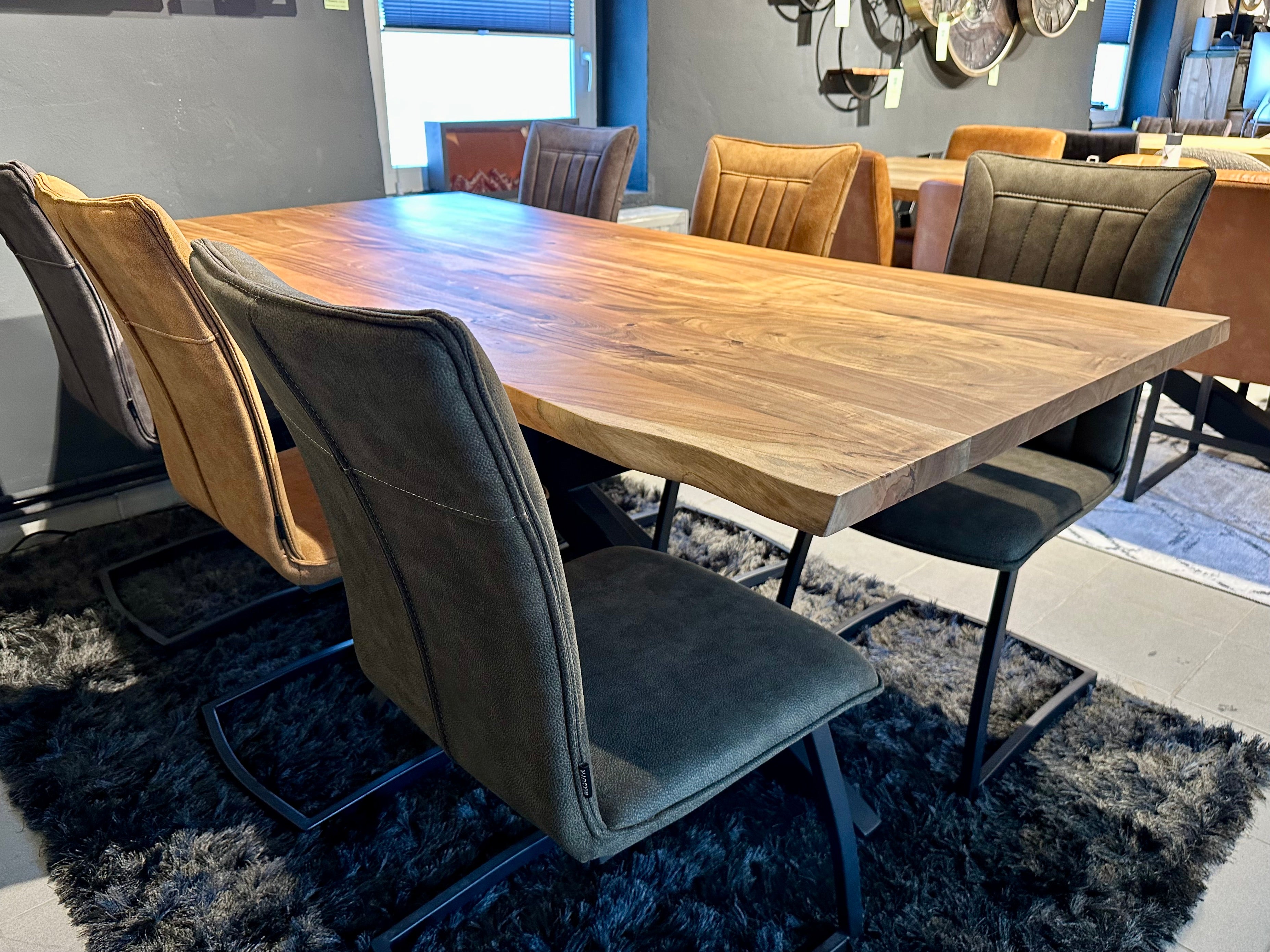 Baumkante Esstisch Yukon natur Akazie massiv & Spider Gestell in 3 Größen