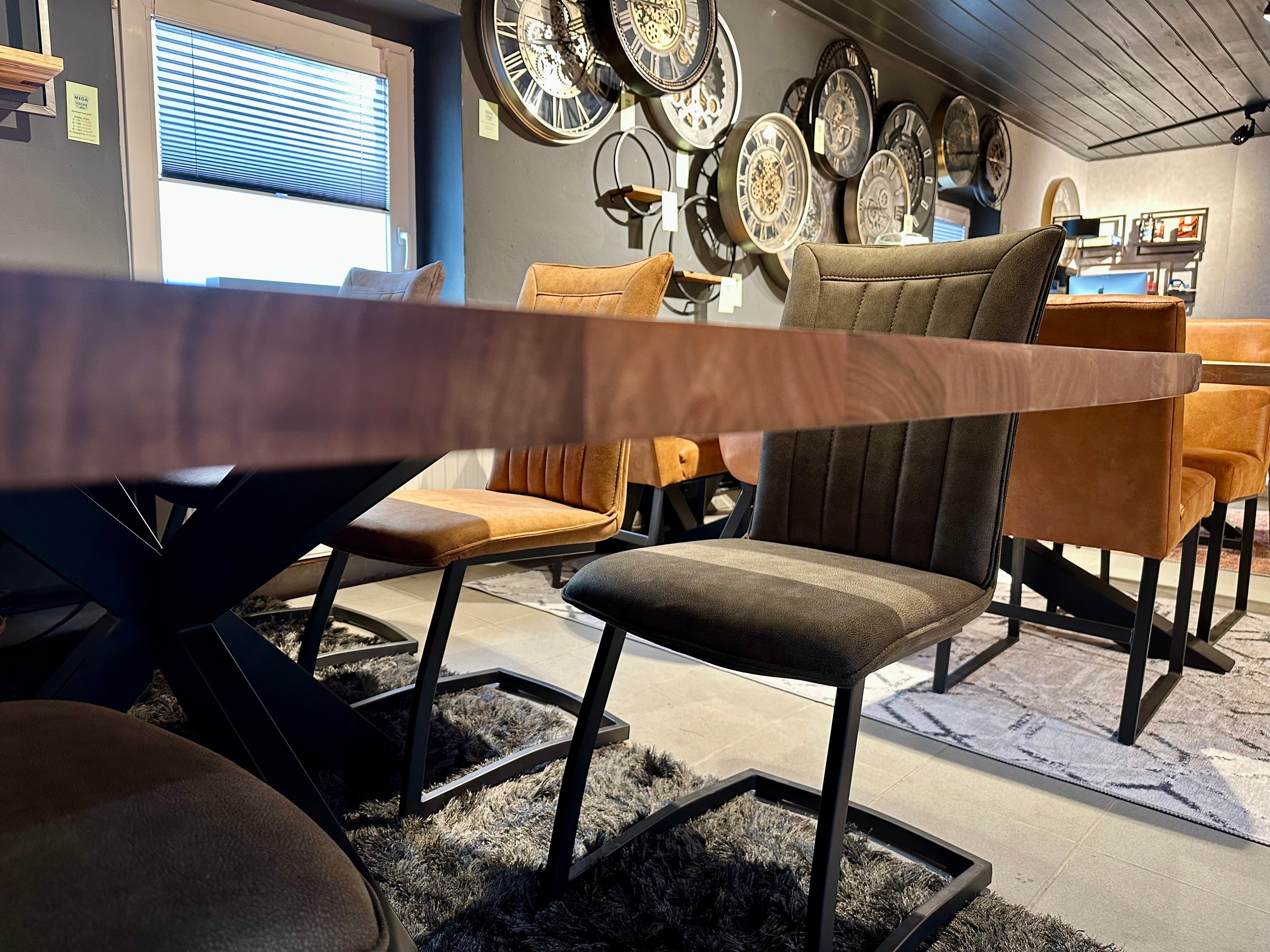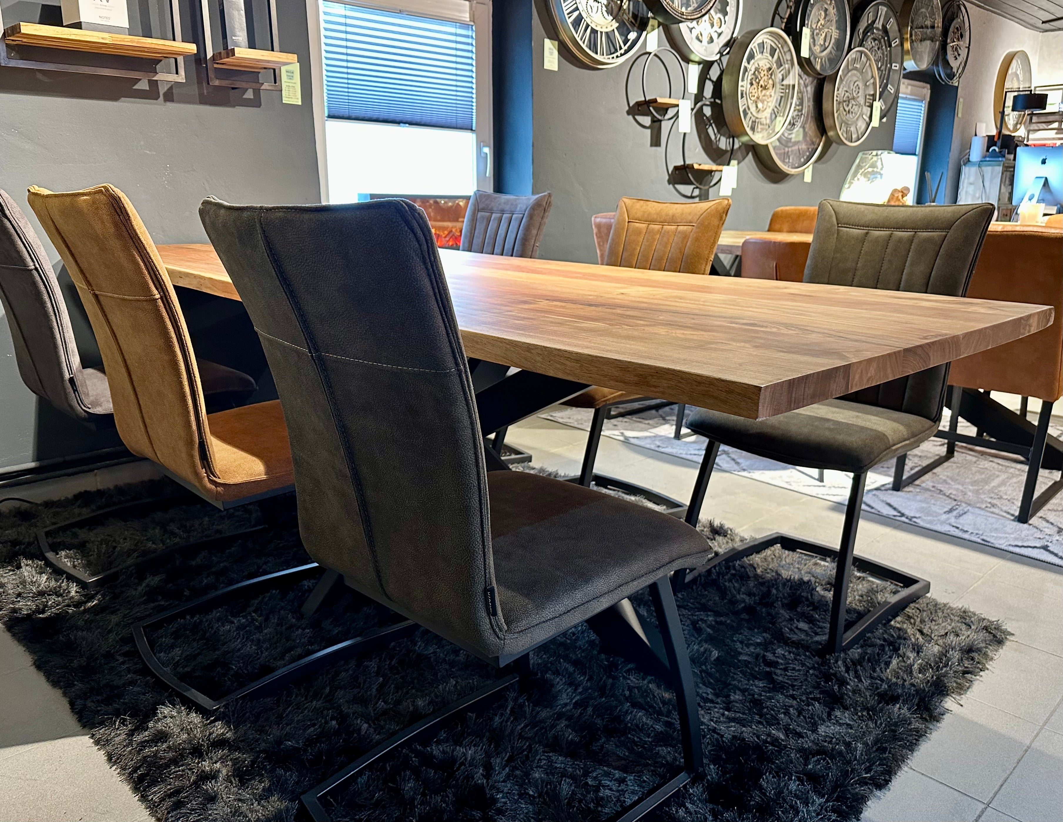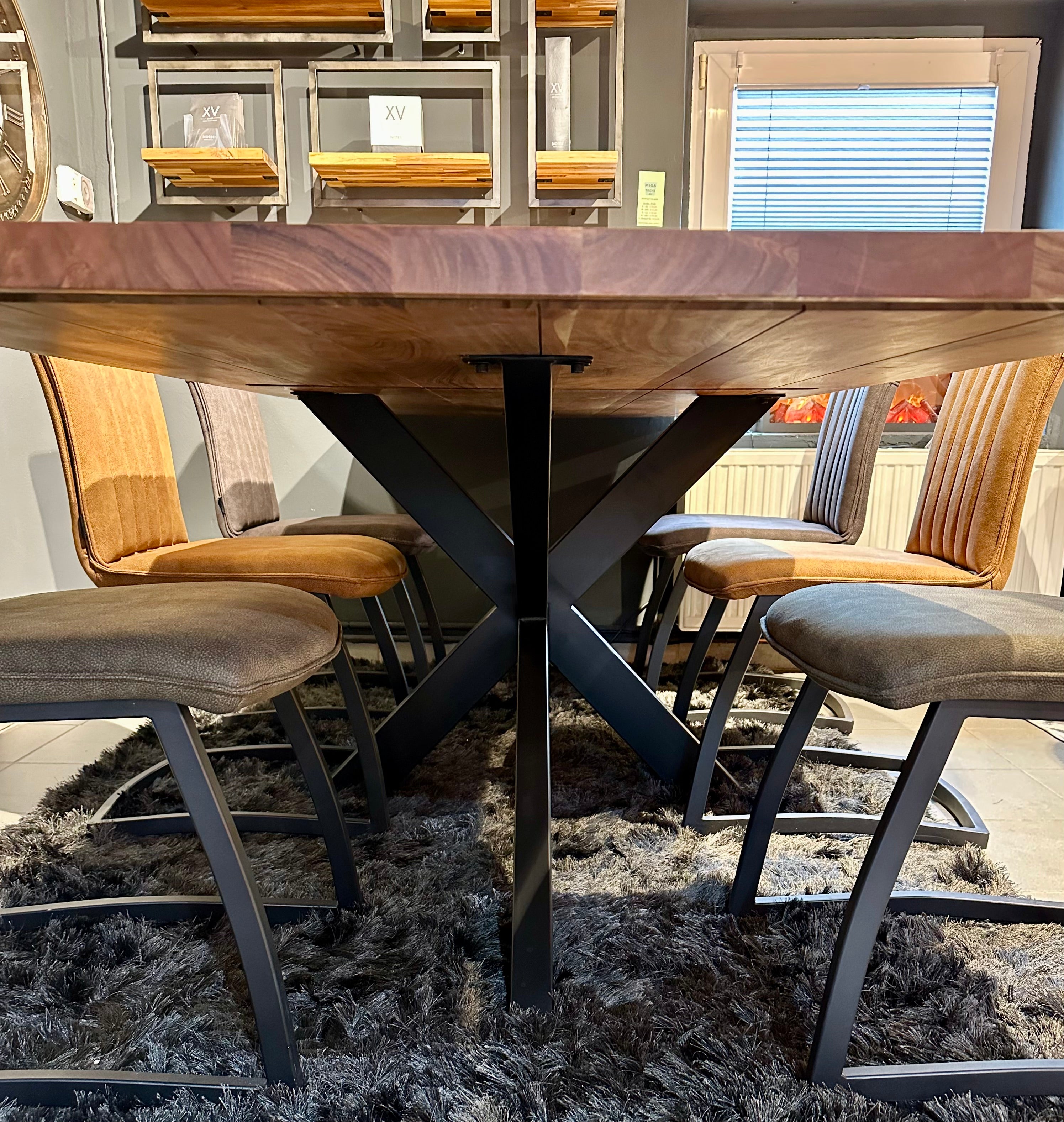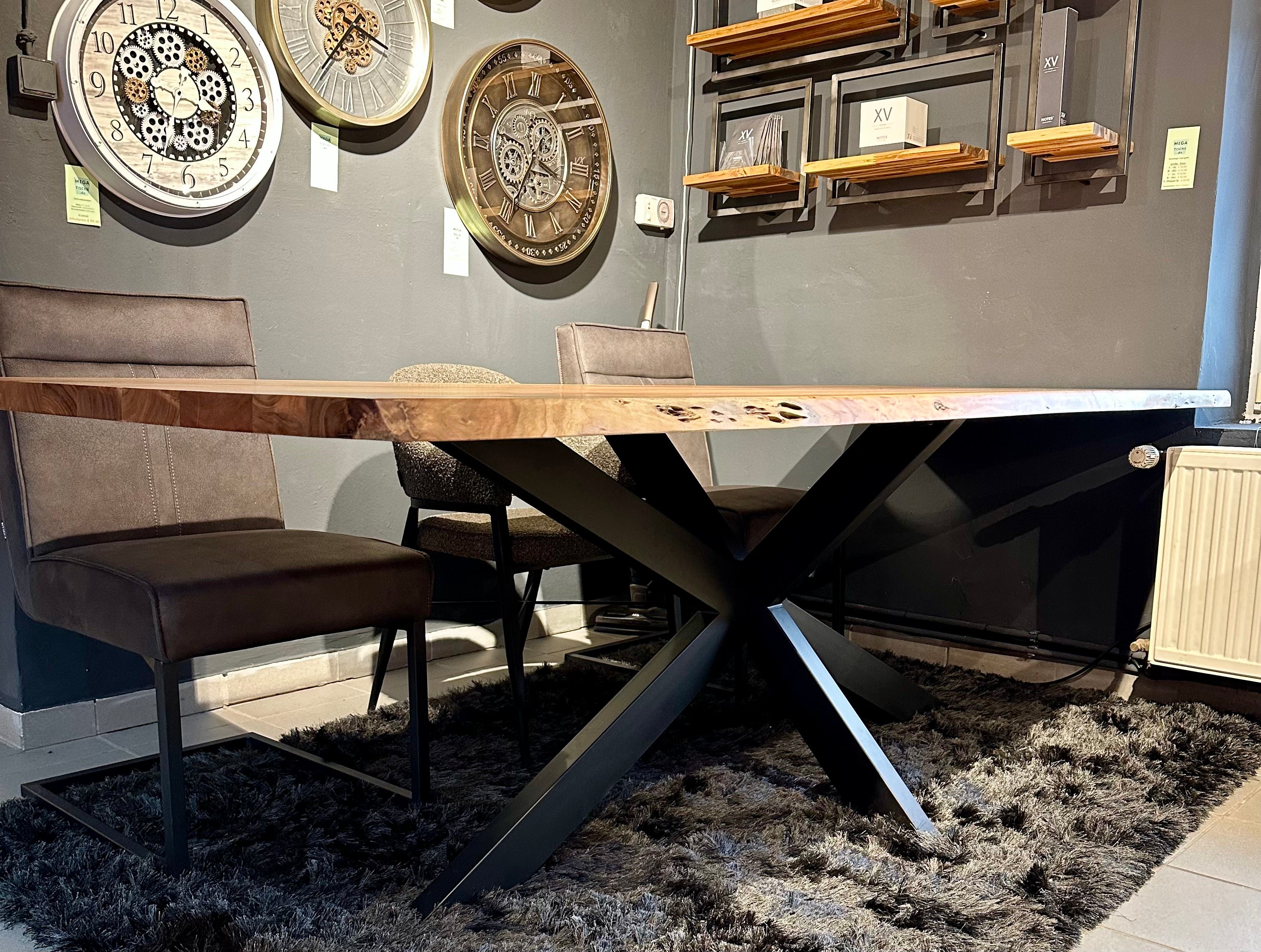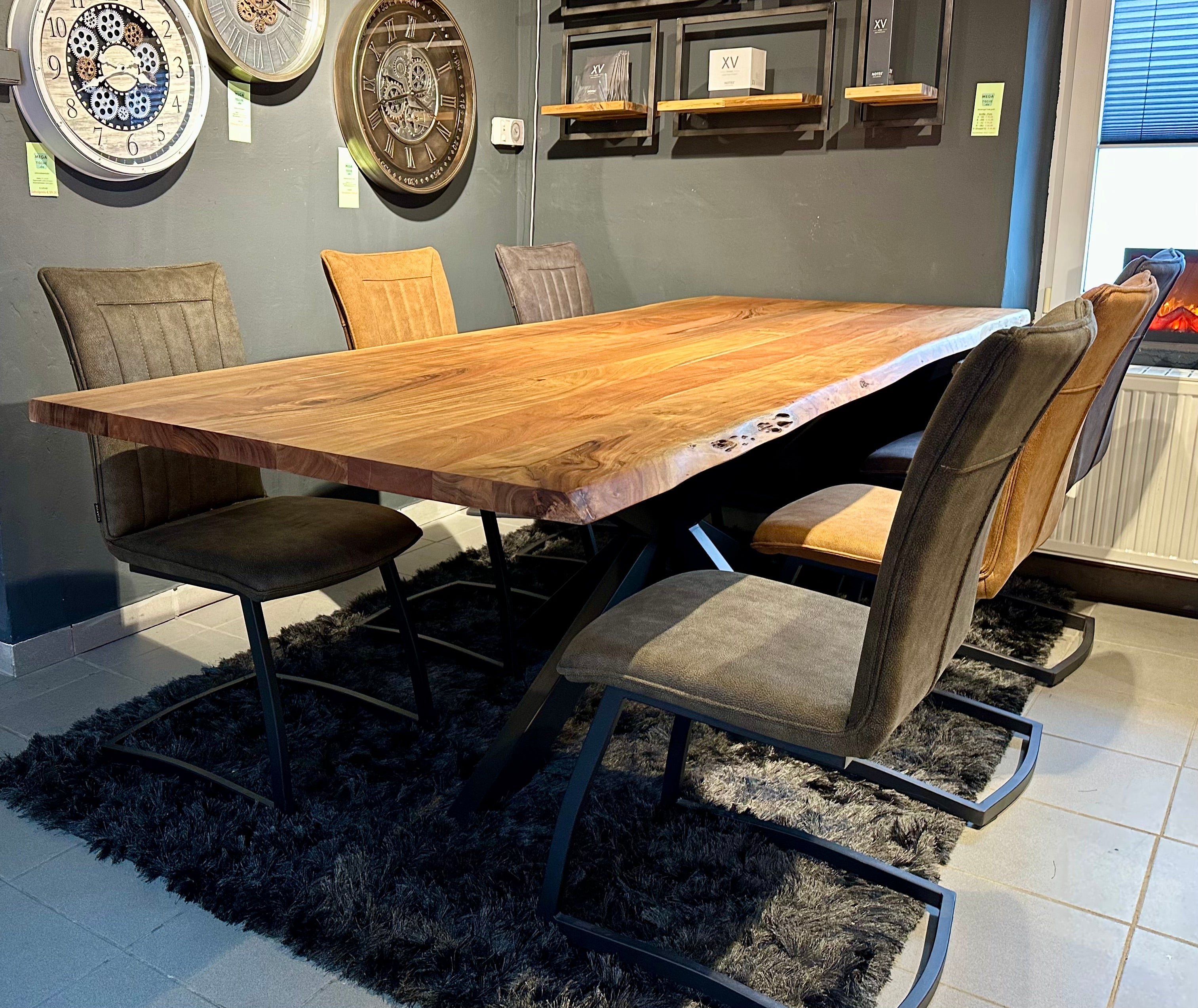 Baumkante Esstisch Yukon natur Akazie massiv & Spider Gestell in 3 Größen
