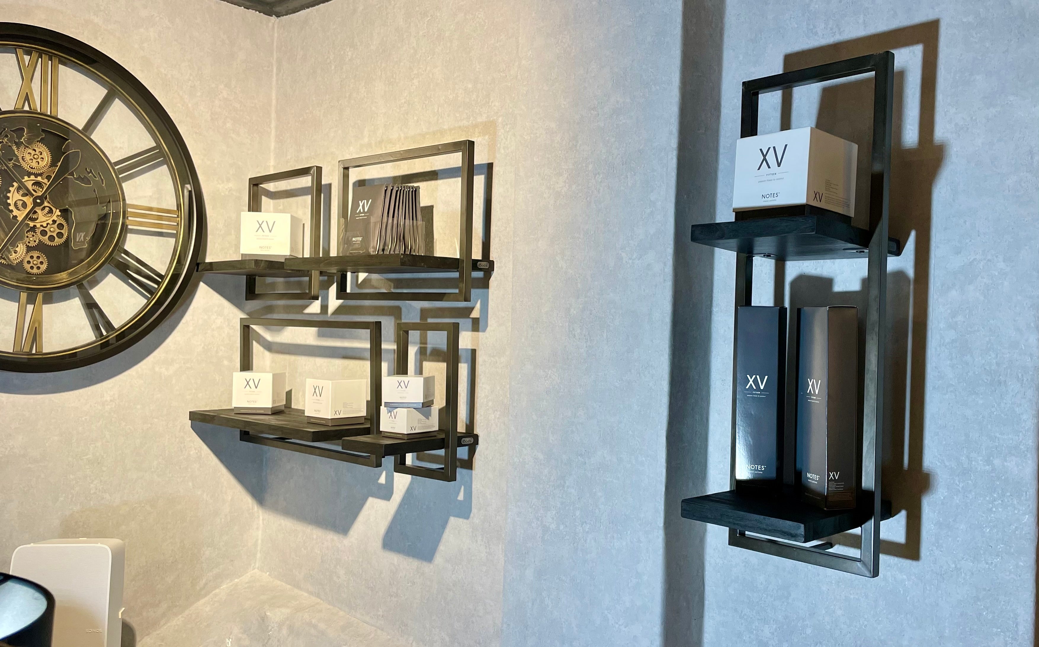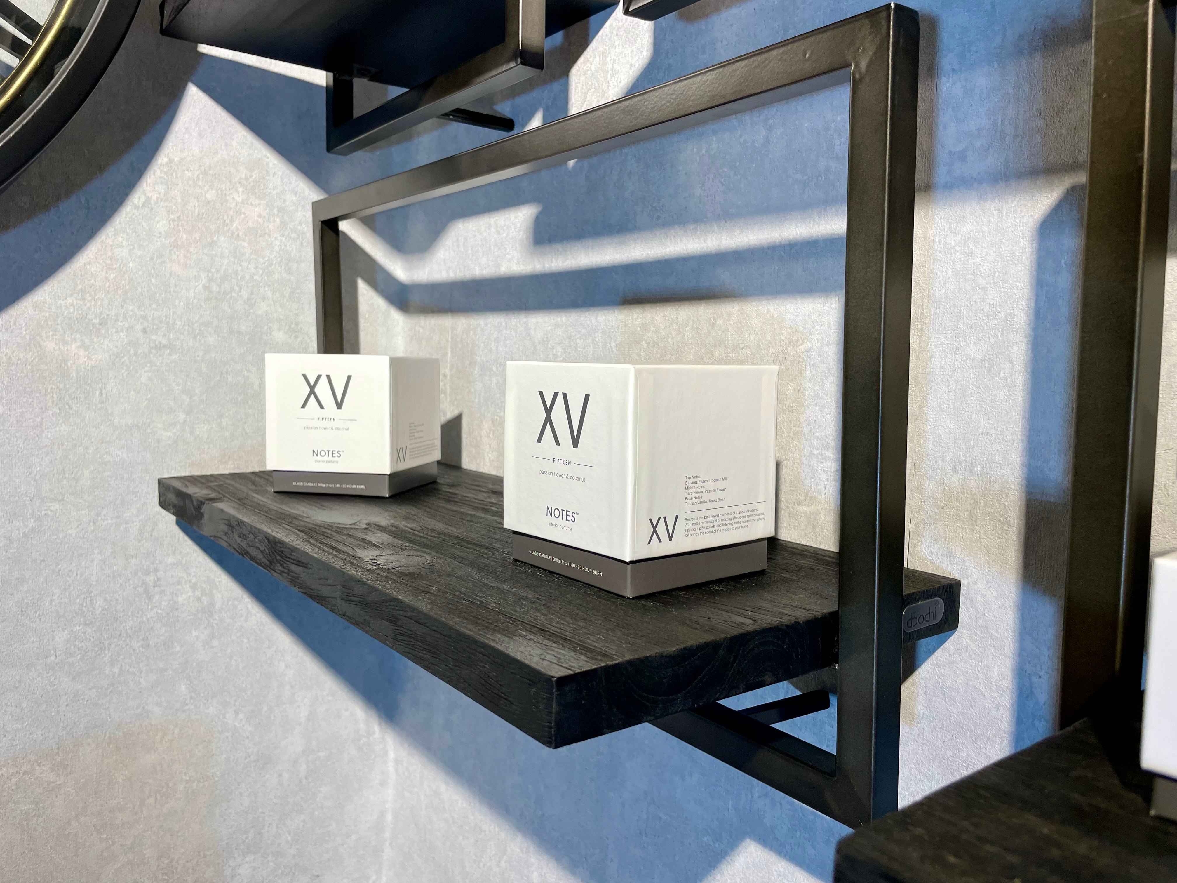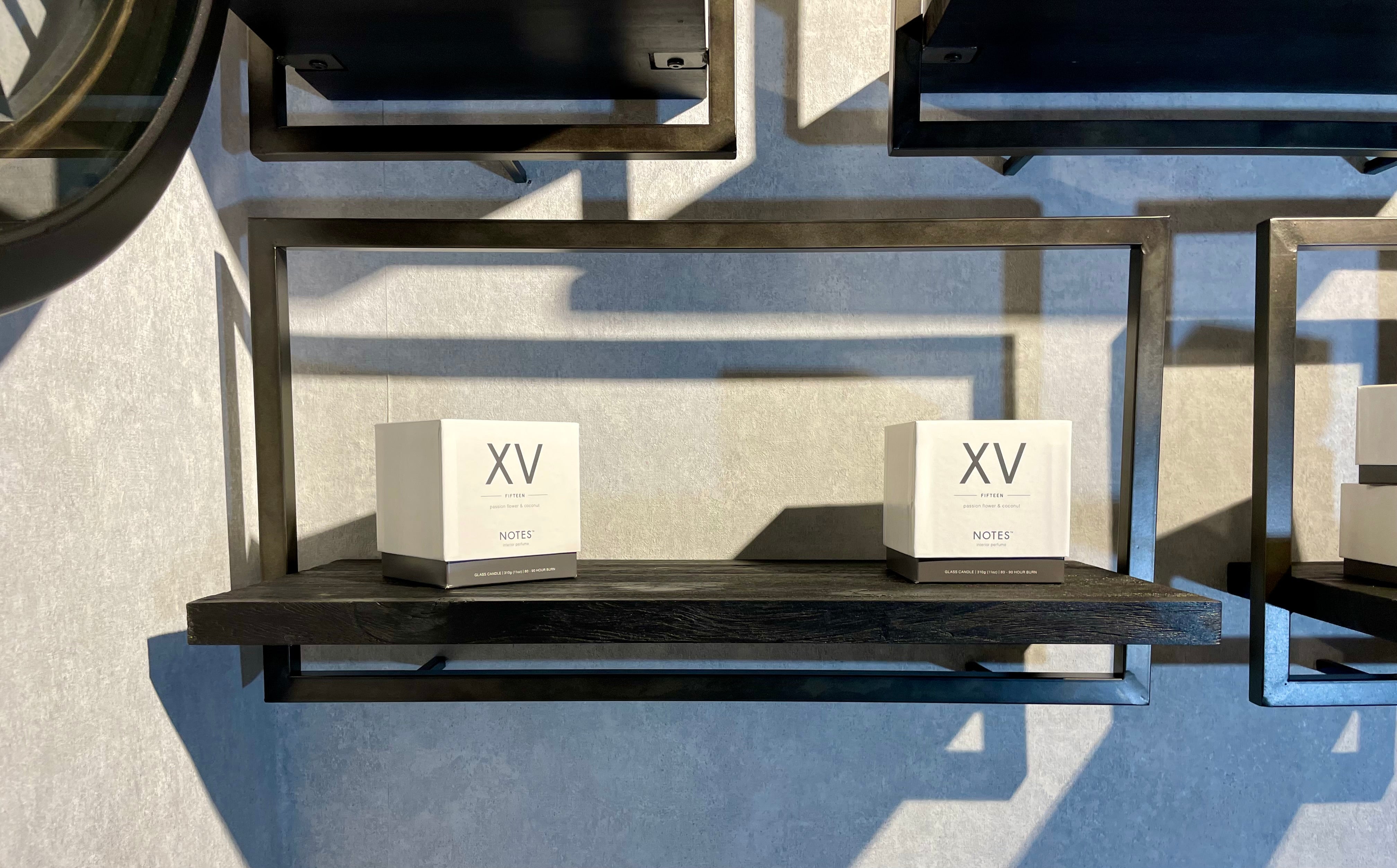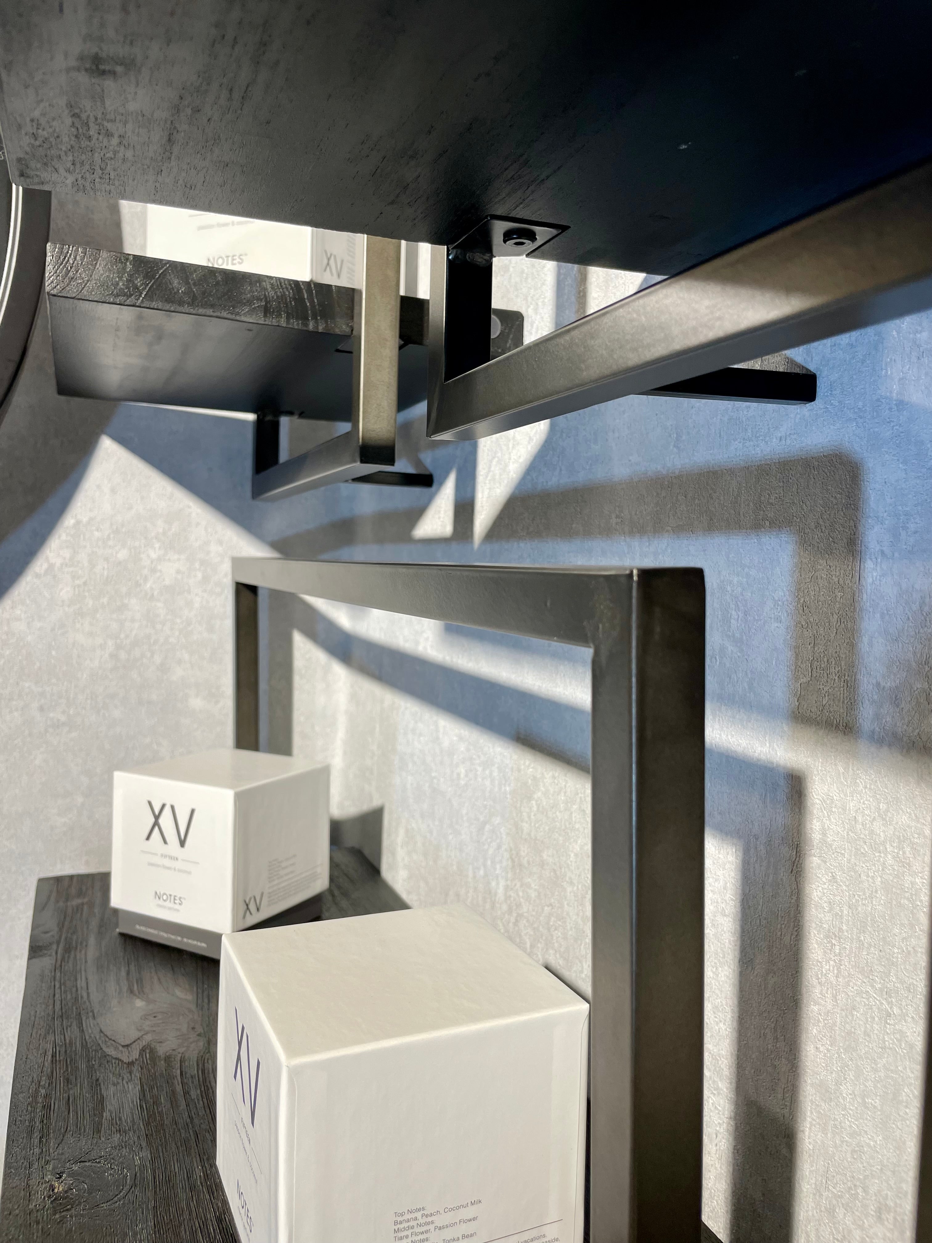 Die Regale sind handgefertigt aus Eisen und aus recyceltem Teakholz, das aus alten javanischen Häusern stammt.
