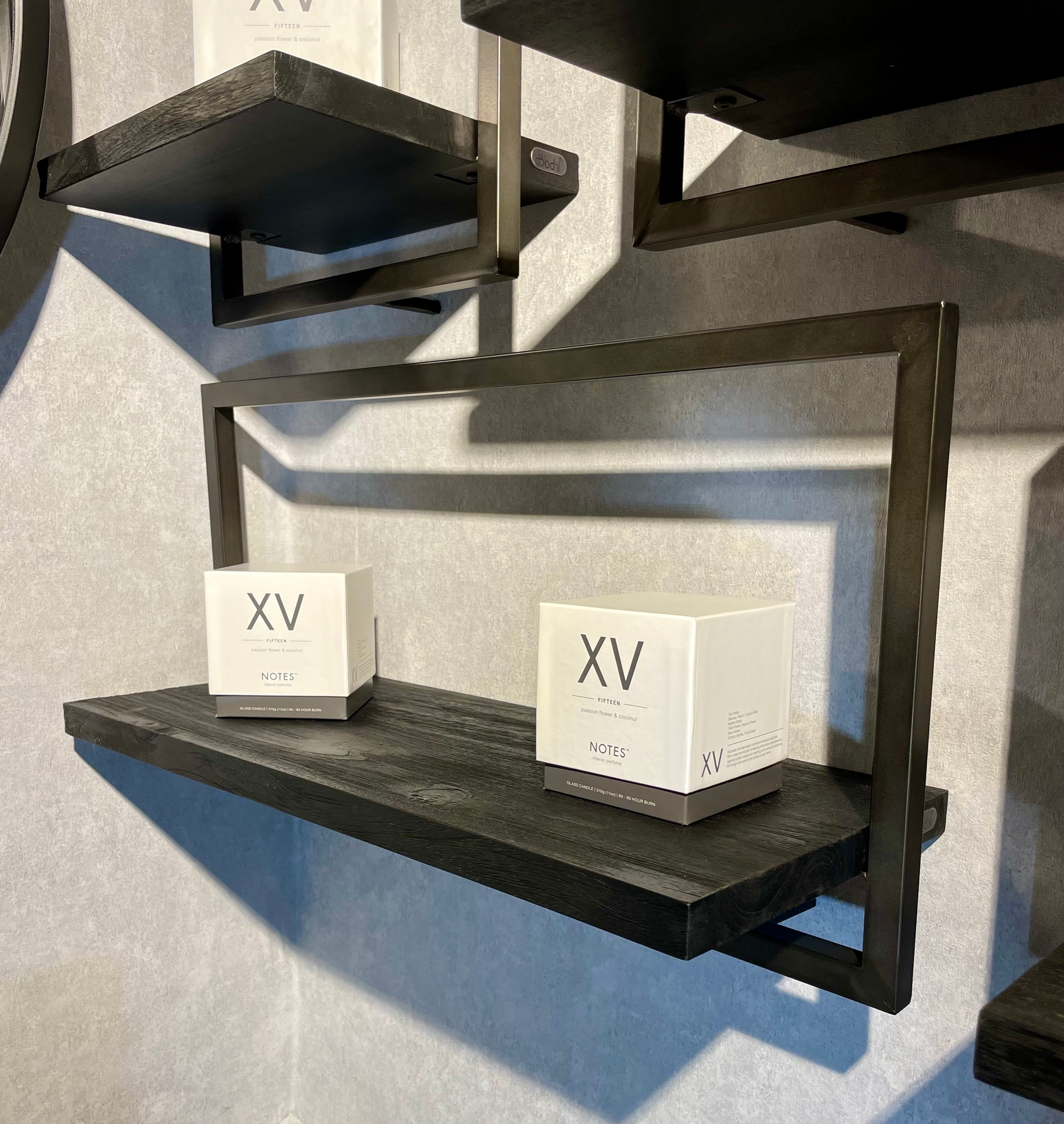 BLACK SHELFMATE Typ A schwarz Wandregal Industrial Möbel Teakholz Metall Blankstahl Hängeregal Industrie Stil Regal Used Look Teak Holz