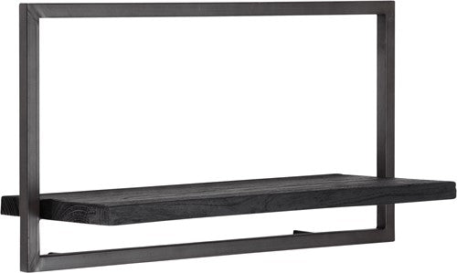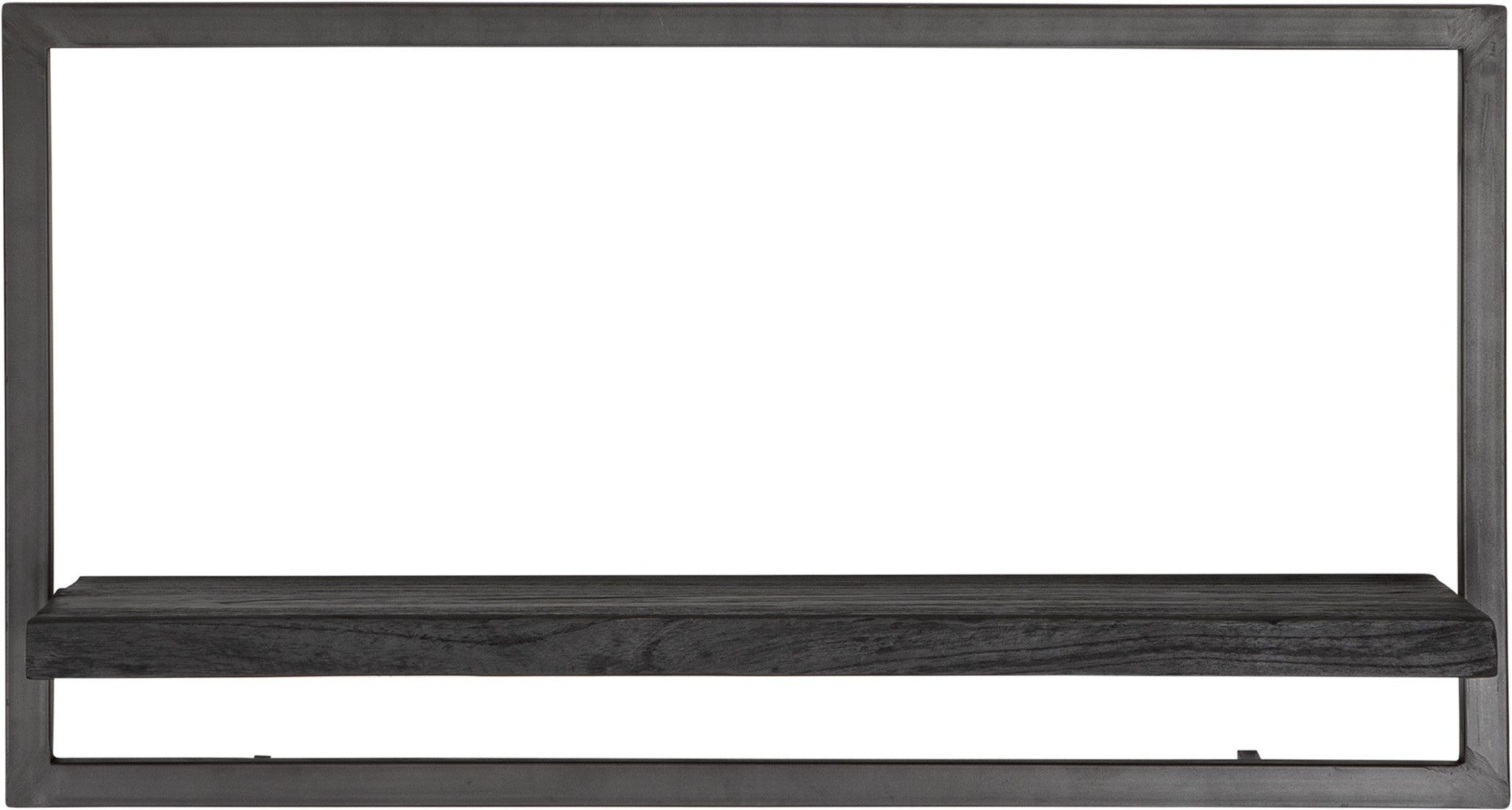 Wandregal Gr. TYP A der Marke d-BODHI im industrial look aus massiven Teakholz schwarz lackiert und mit einer Metallfassung.