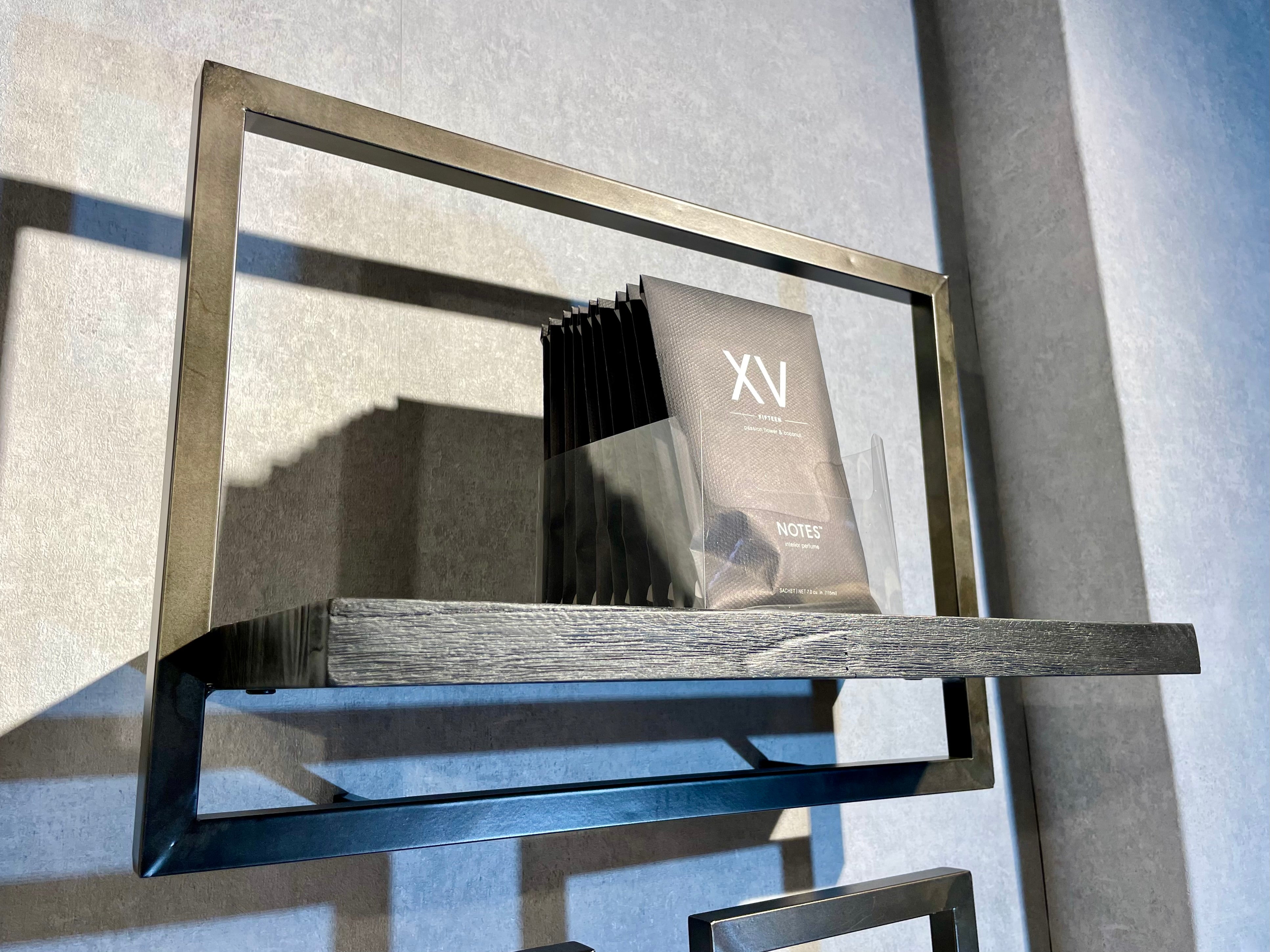Die Regale sind handgefertigt aus Eisen und aus recyceltem Teakholz, das aus alten javanischen Häusern stammt. Hängen Sie die Shelfmates einzeln auf oder kombinieren Sie sie miteinander: Die Kompositionsmöglichkeiten sind endlos!