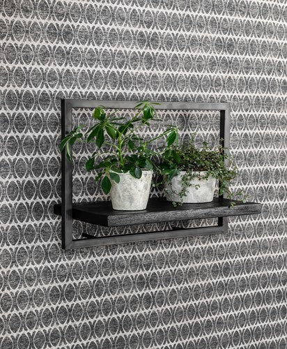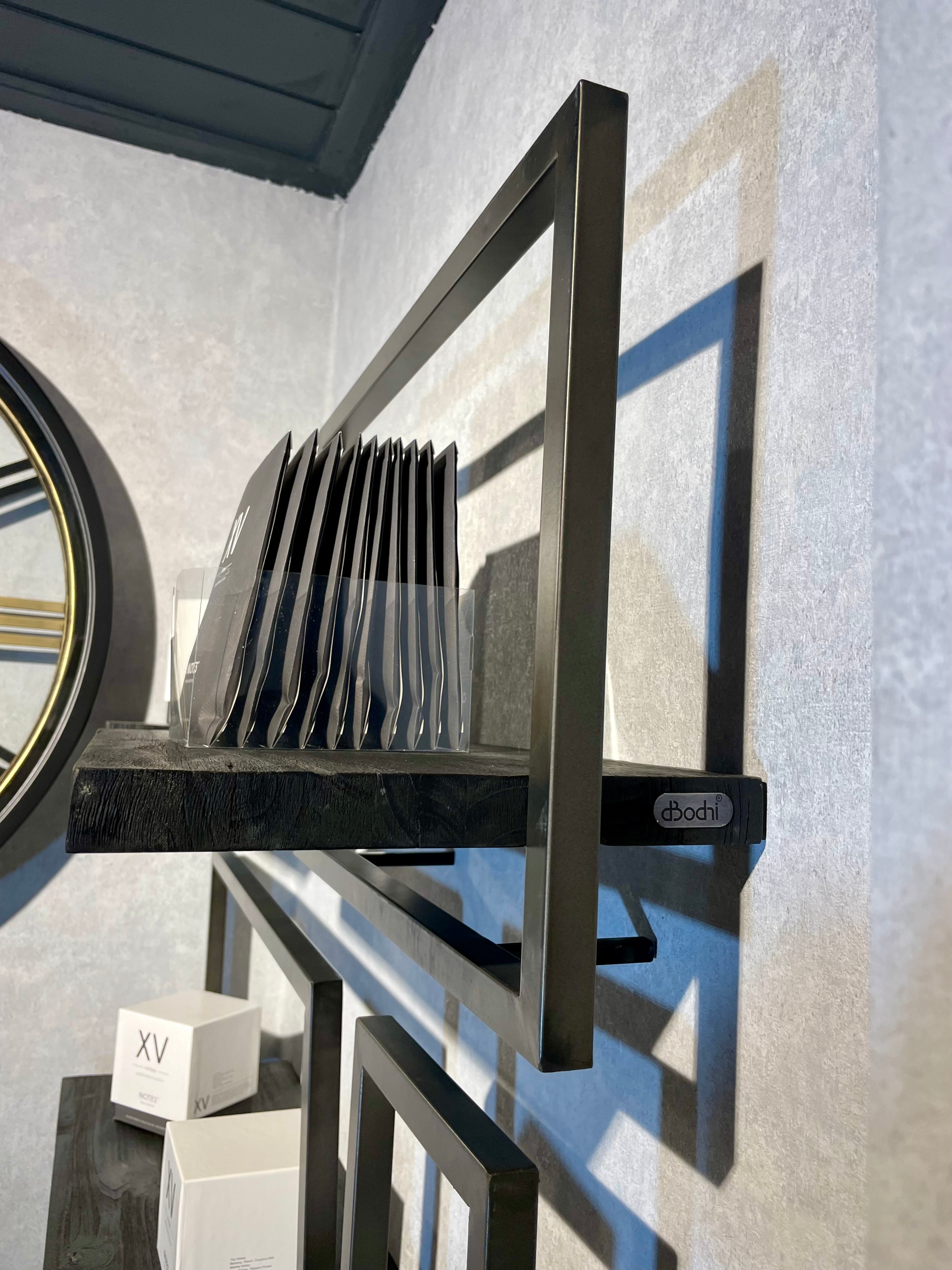 Wandregal Gr. TYP C der Marke d-BODHI im industrial look aus massiven Teakholz schwarz lackiert und mit einer Metallfassung.