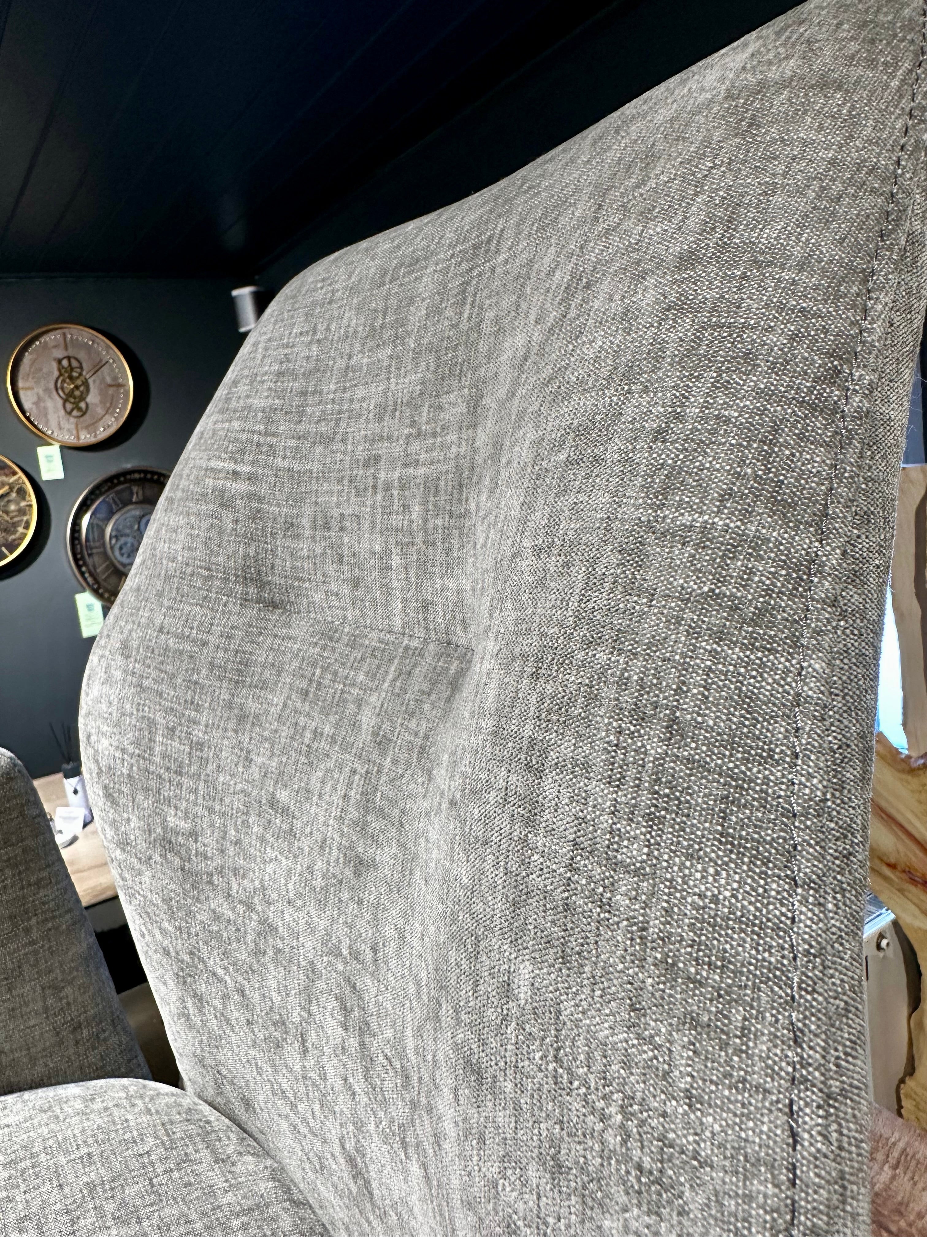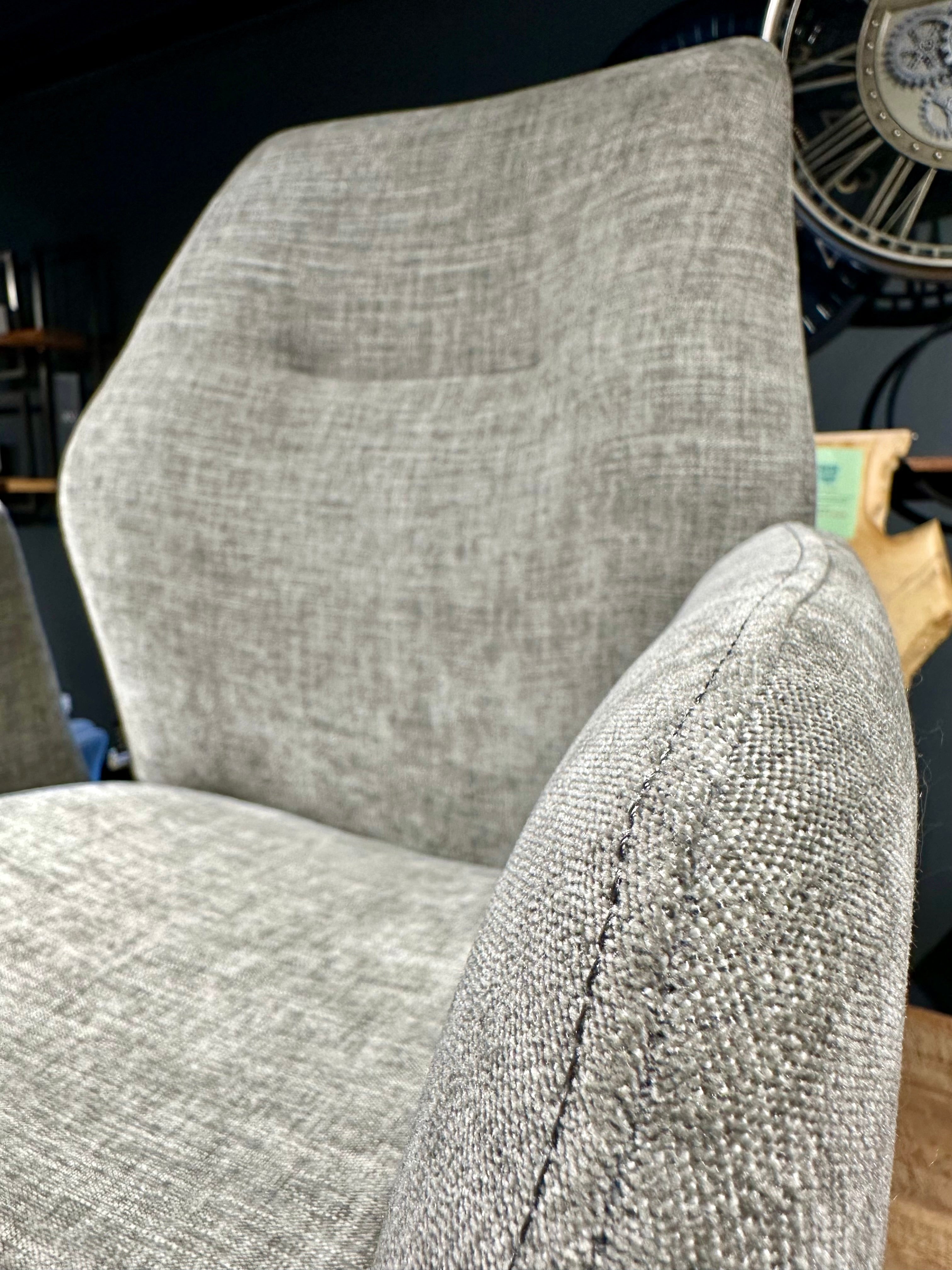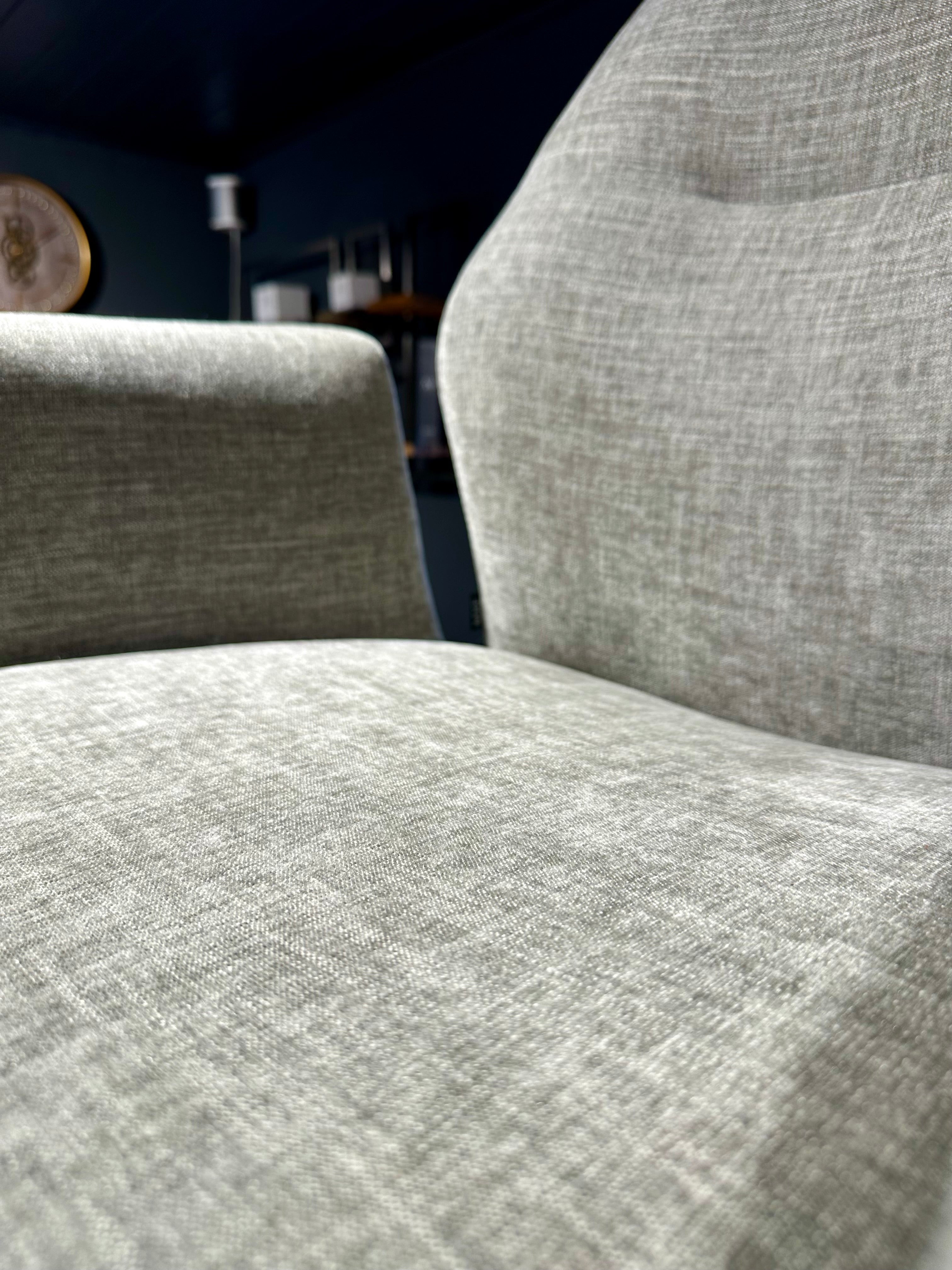 Der Stuhl ist mit einem imprägnierten Mikrostoff bezogen und sehr pflegeleicht.