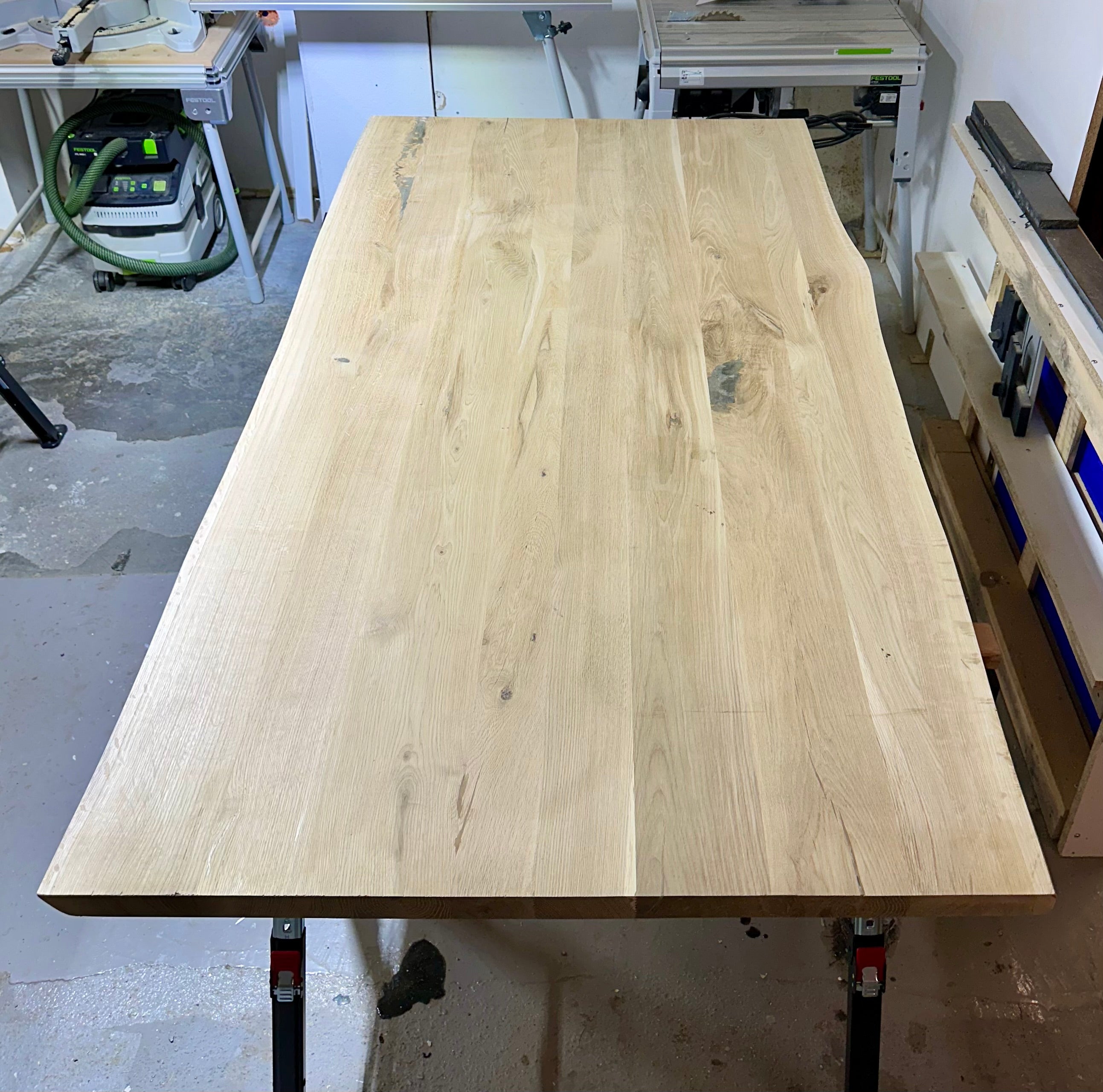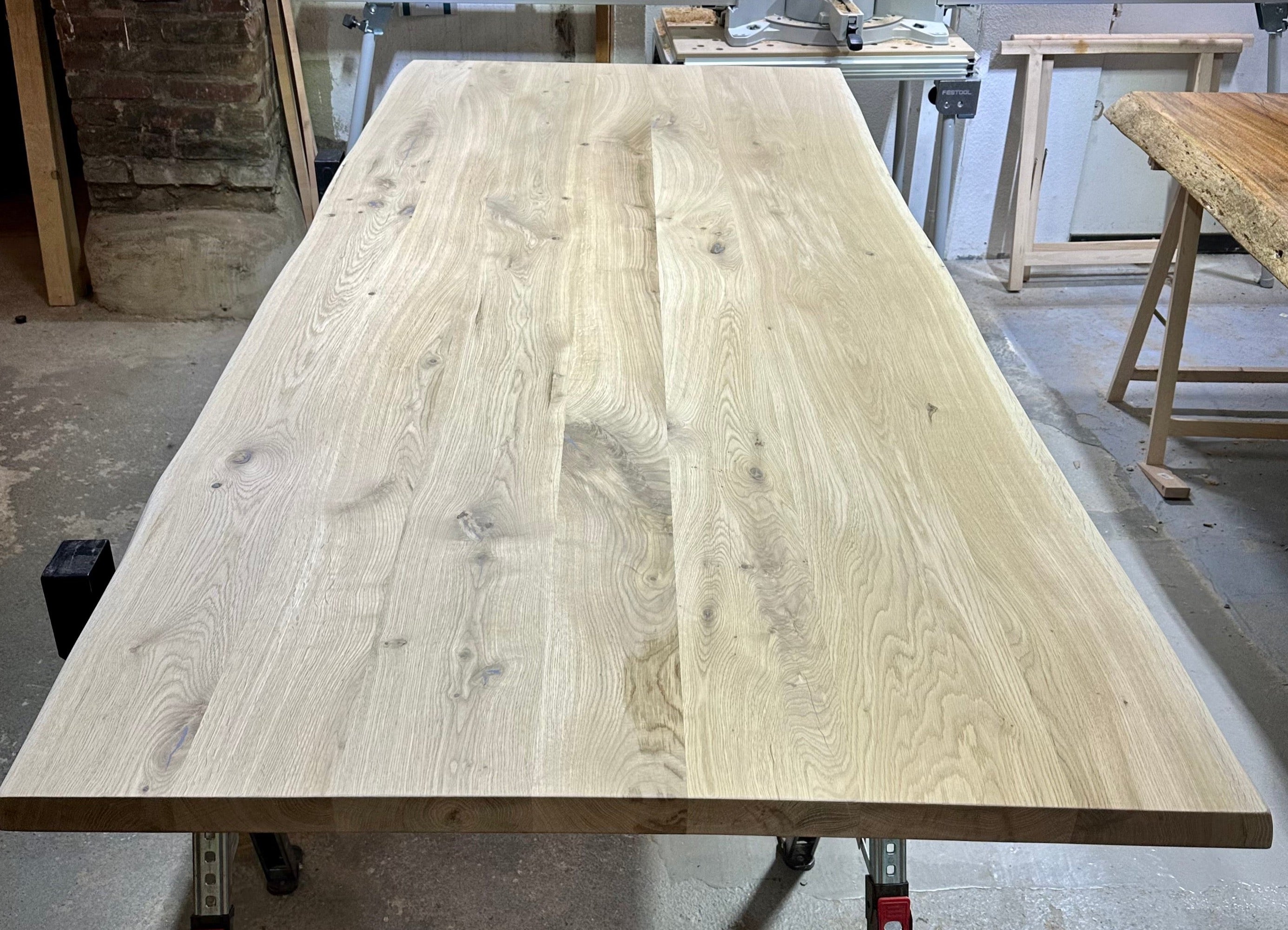 Die Eichetischplatte ist ungeölt und wird als Rohling für Do-it-Yourself Projekte verkauft.