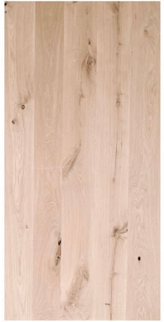 Diese Echtholz Eicheplatte besteht aus mehreren Bohlen. Die Tischplattenoberfläche ist glatt und unbehandelt.
