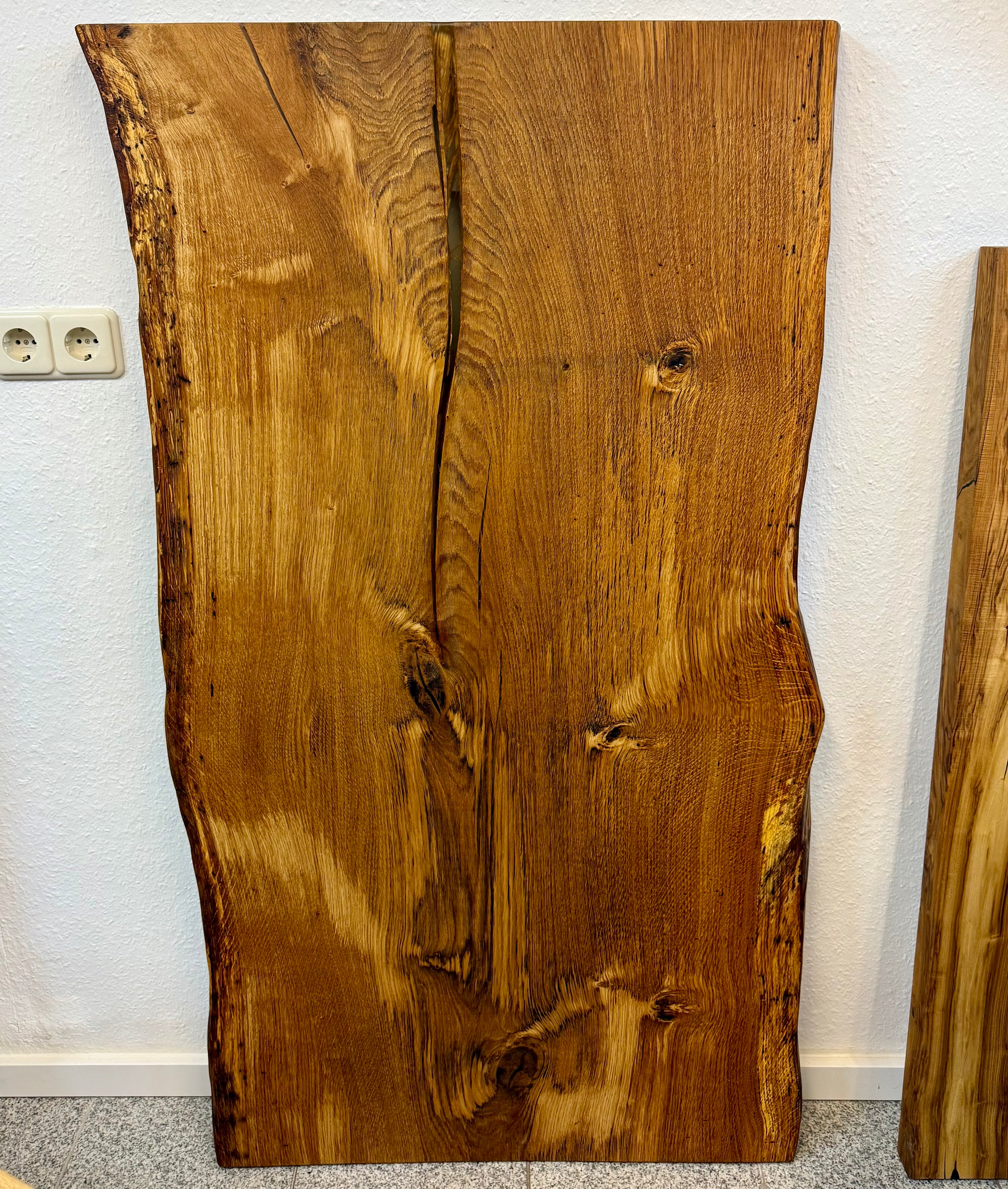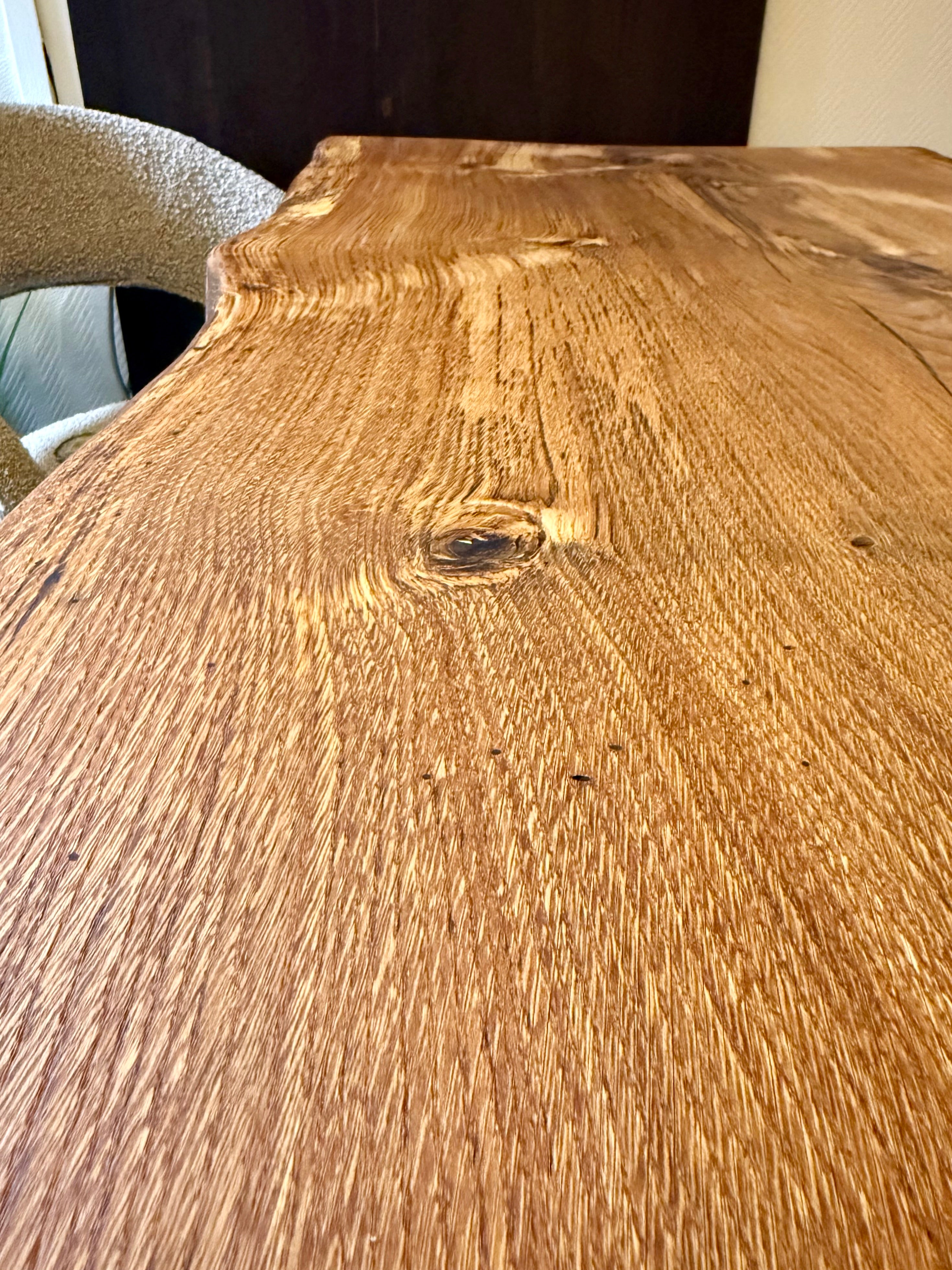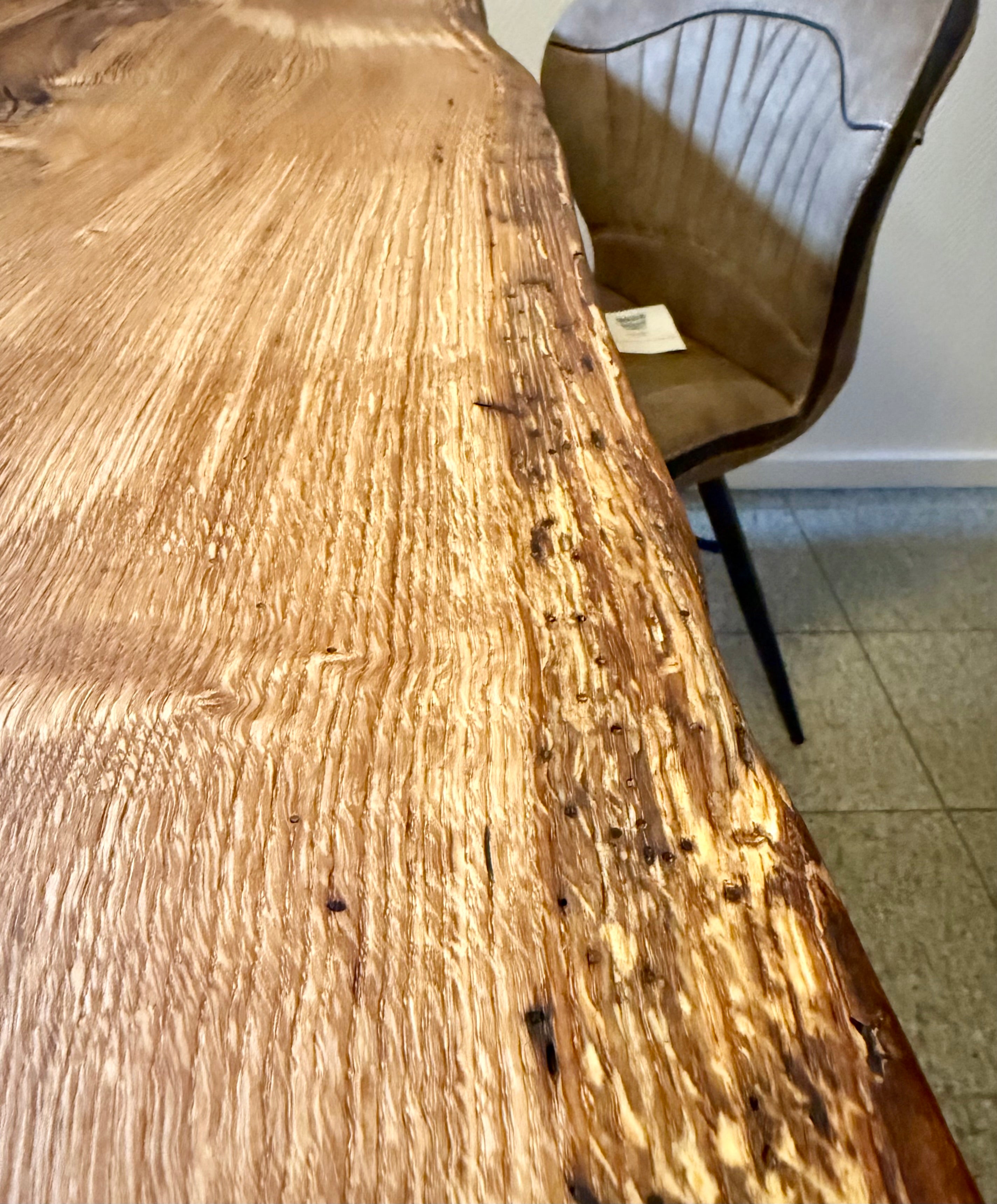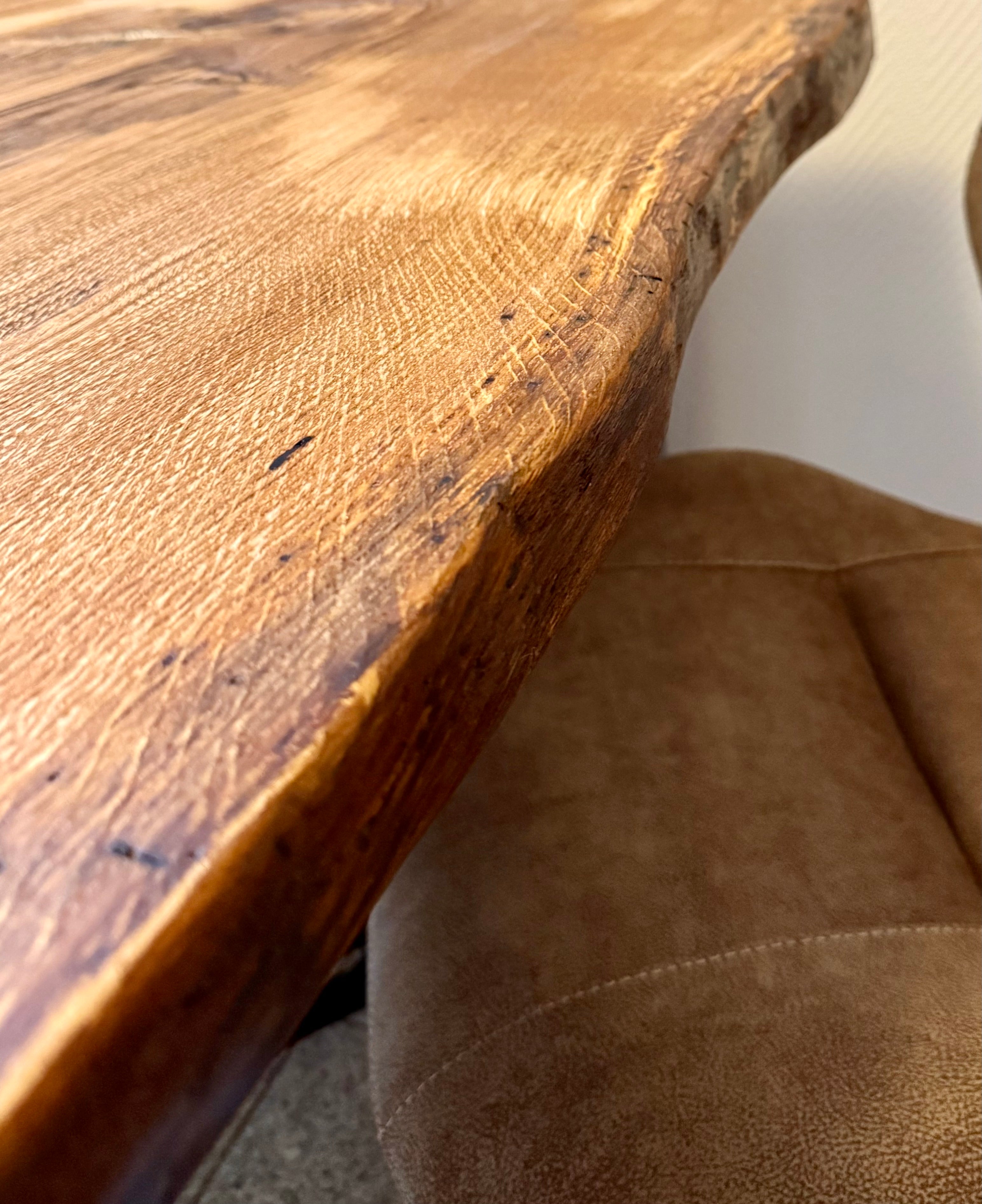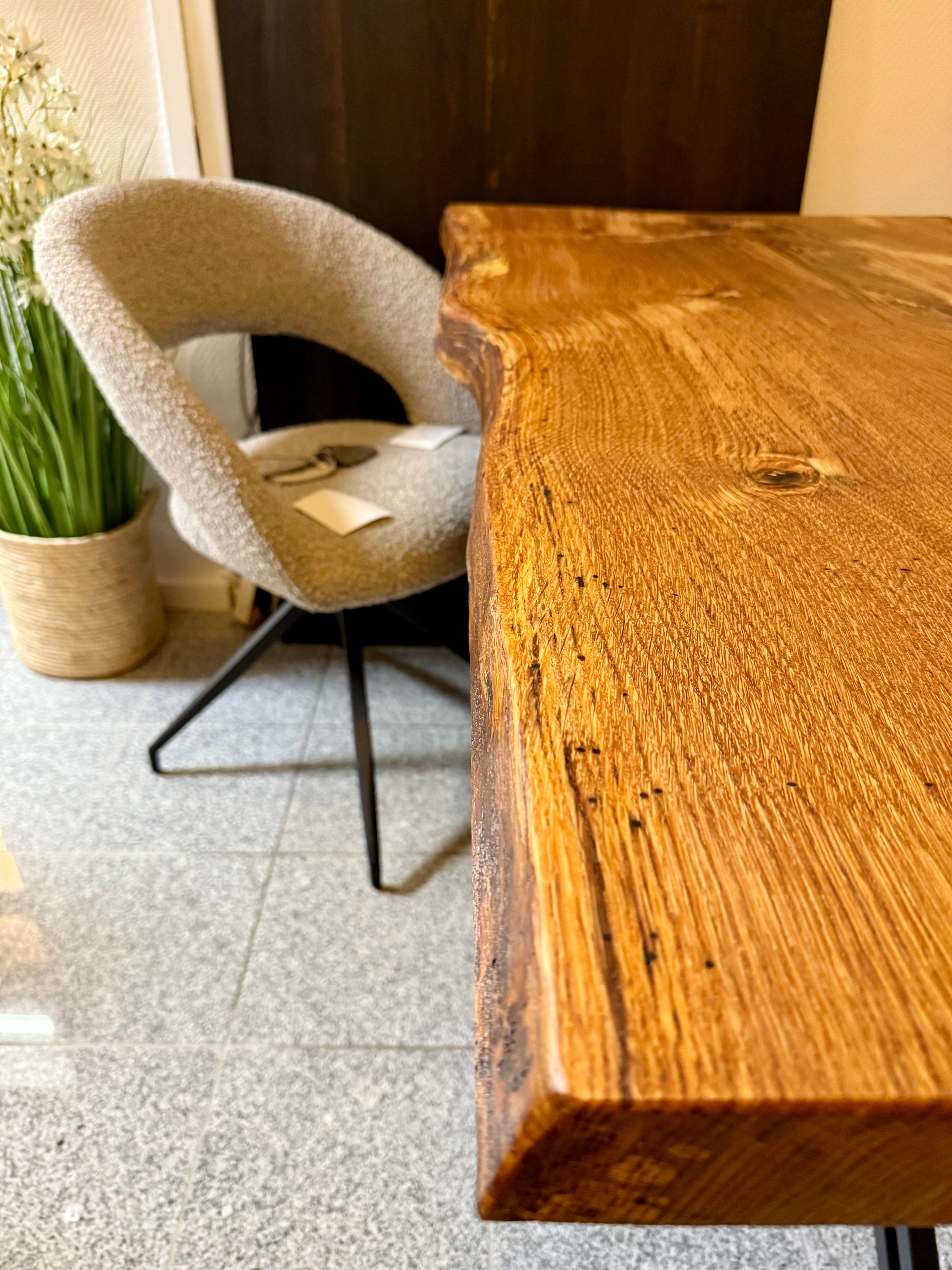 Dieser Eichenholztisch - ist aus einer massiven Eichebohle gefertigt.