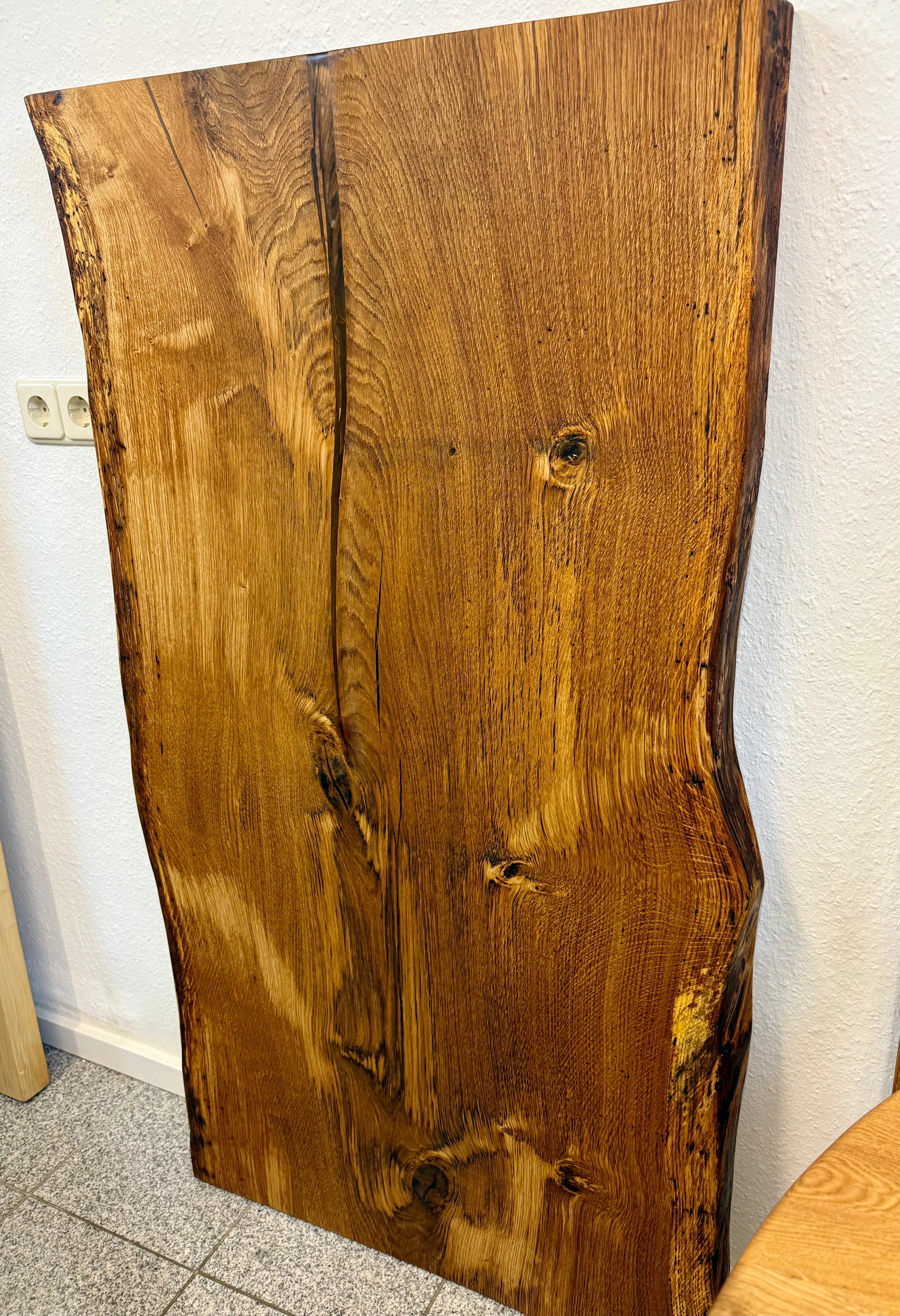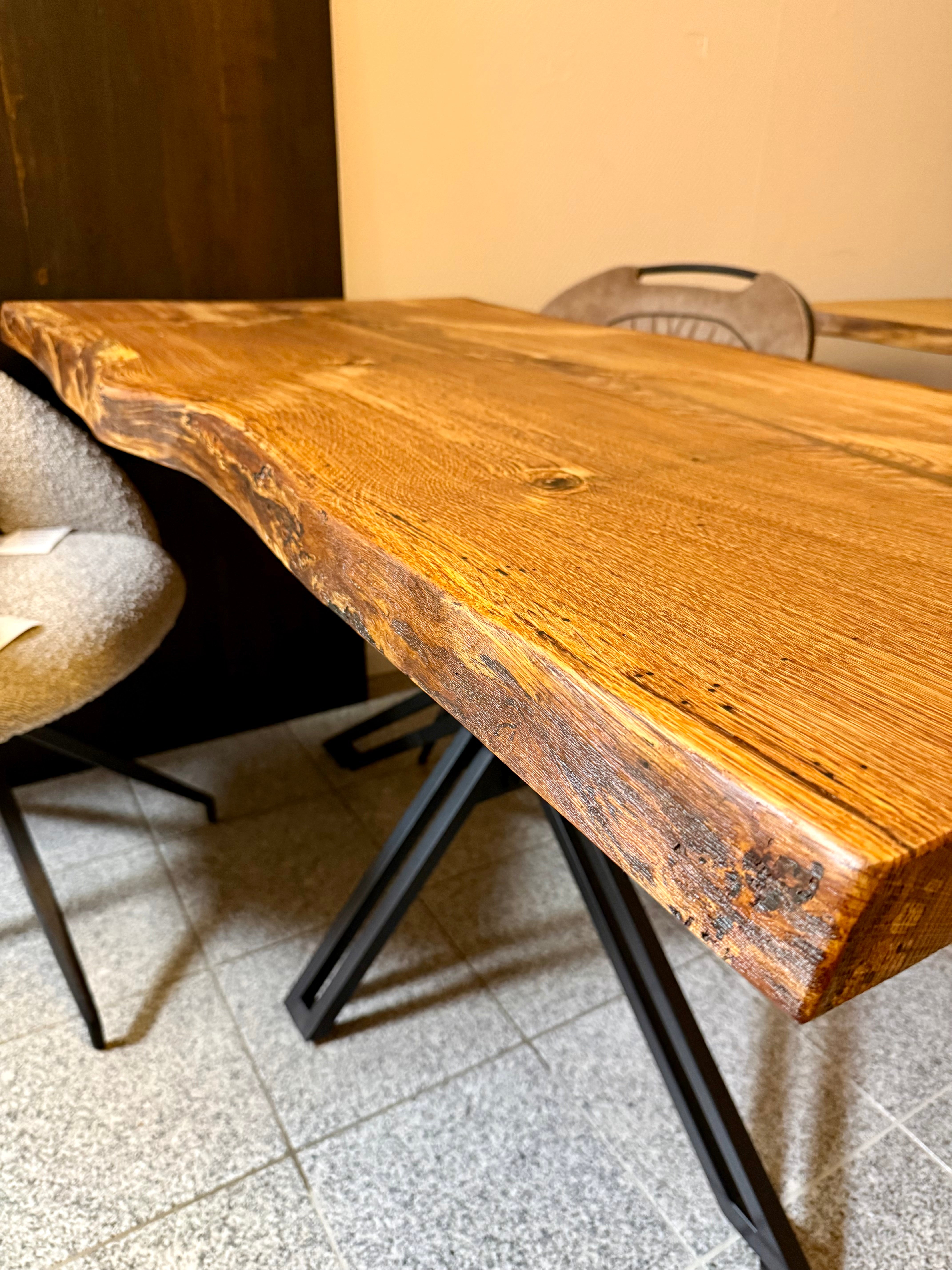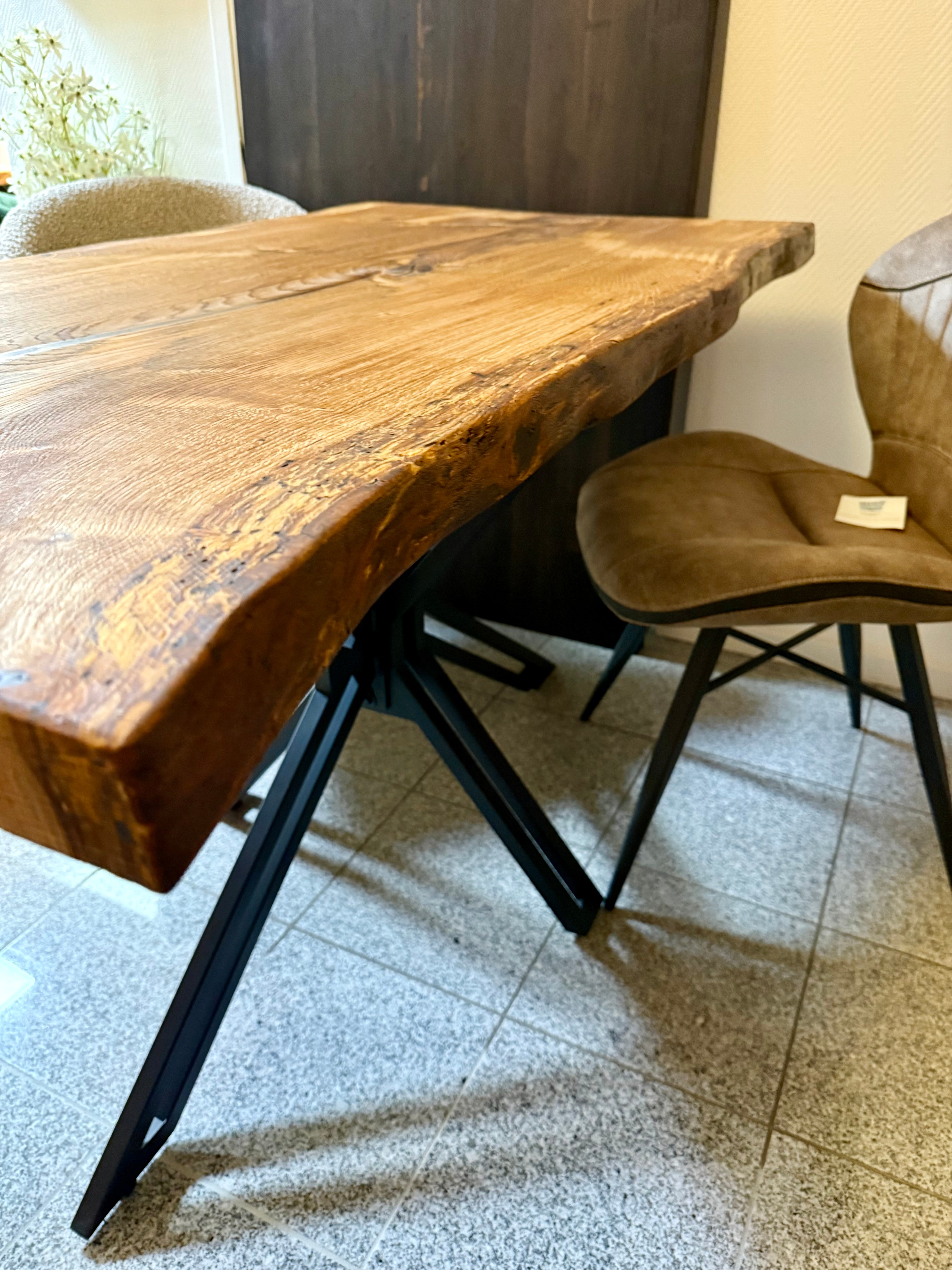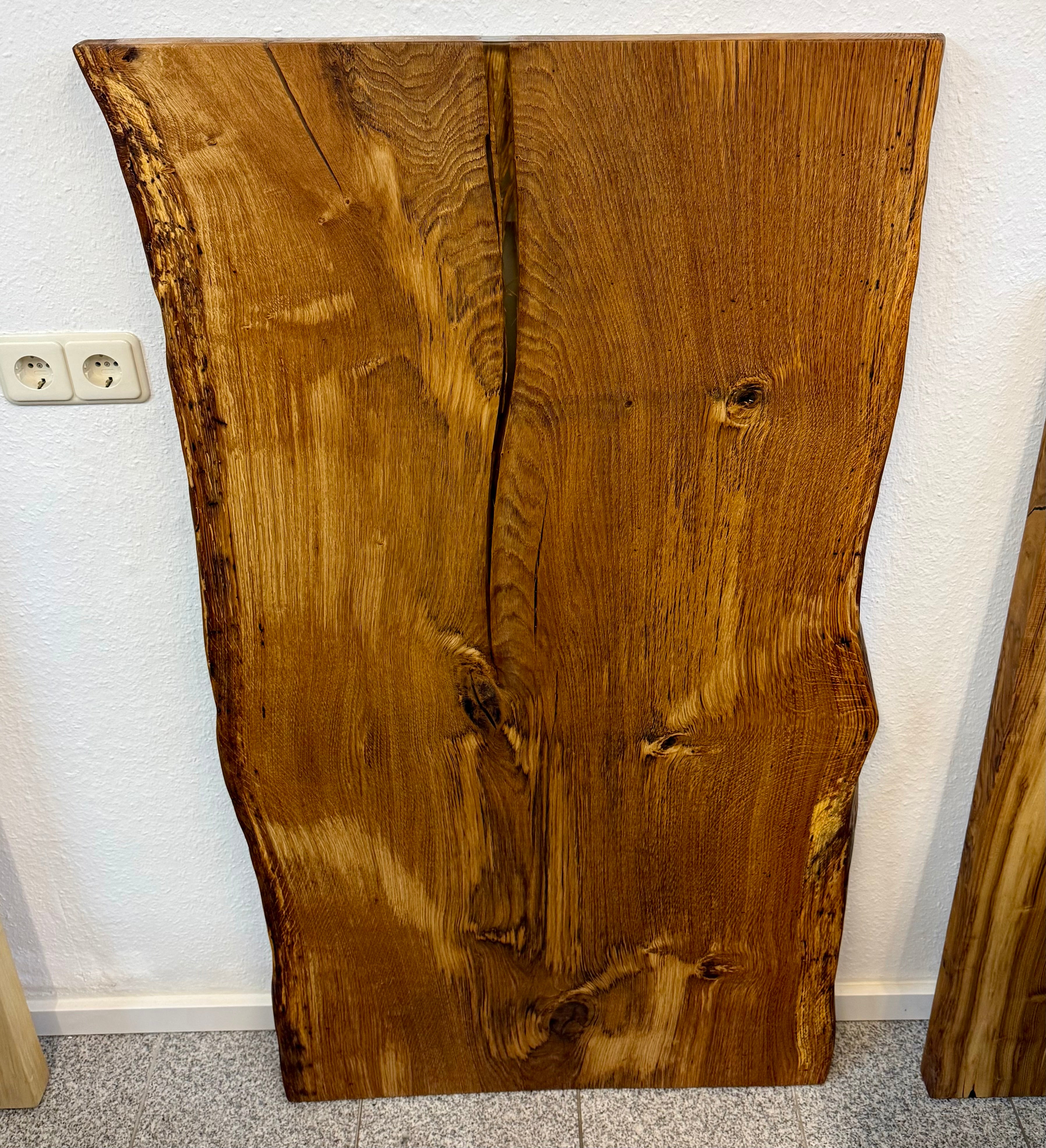 Dieser Eichenholztisch - ist aus einer massiven Eichebohle gefertigt.