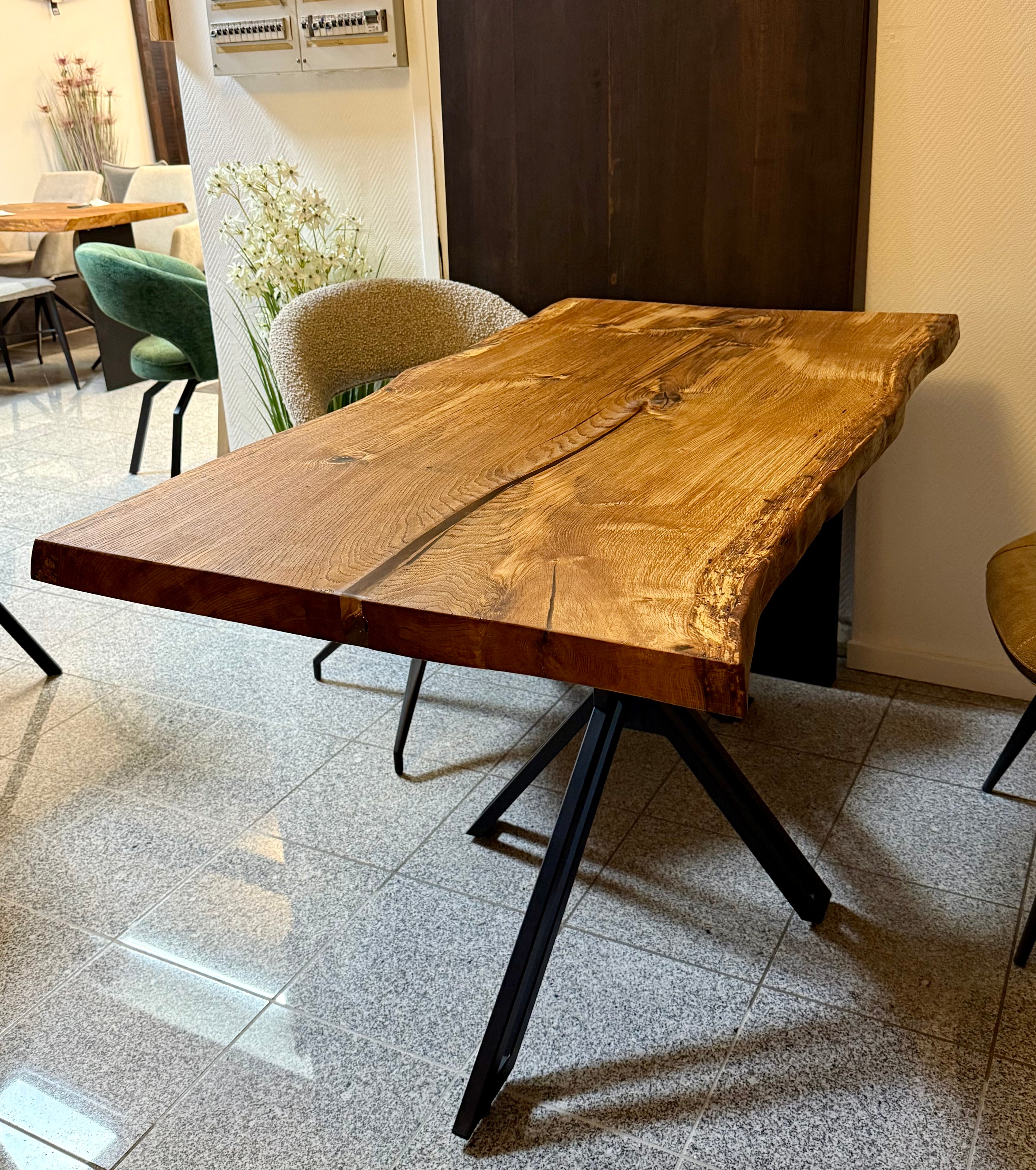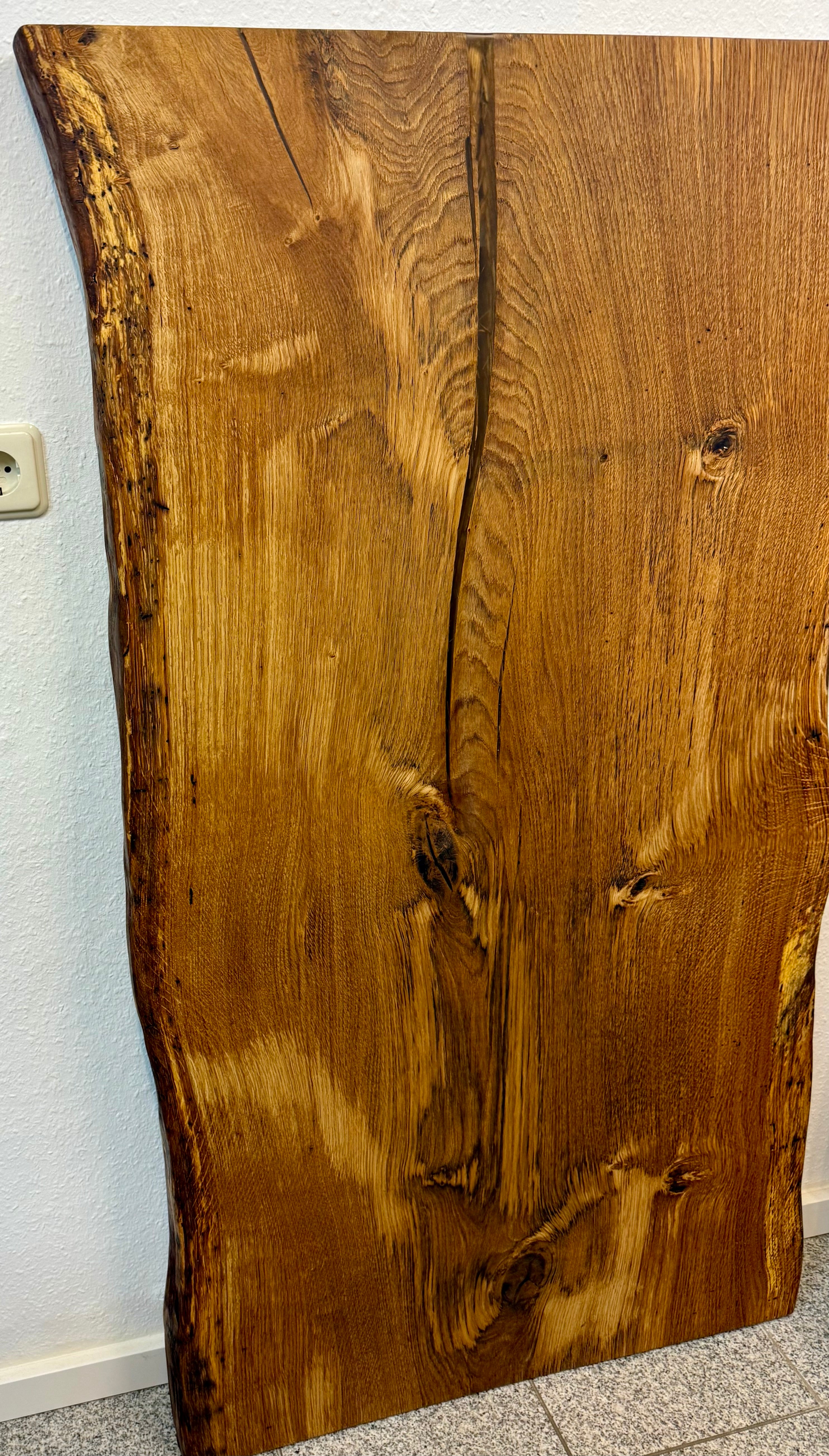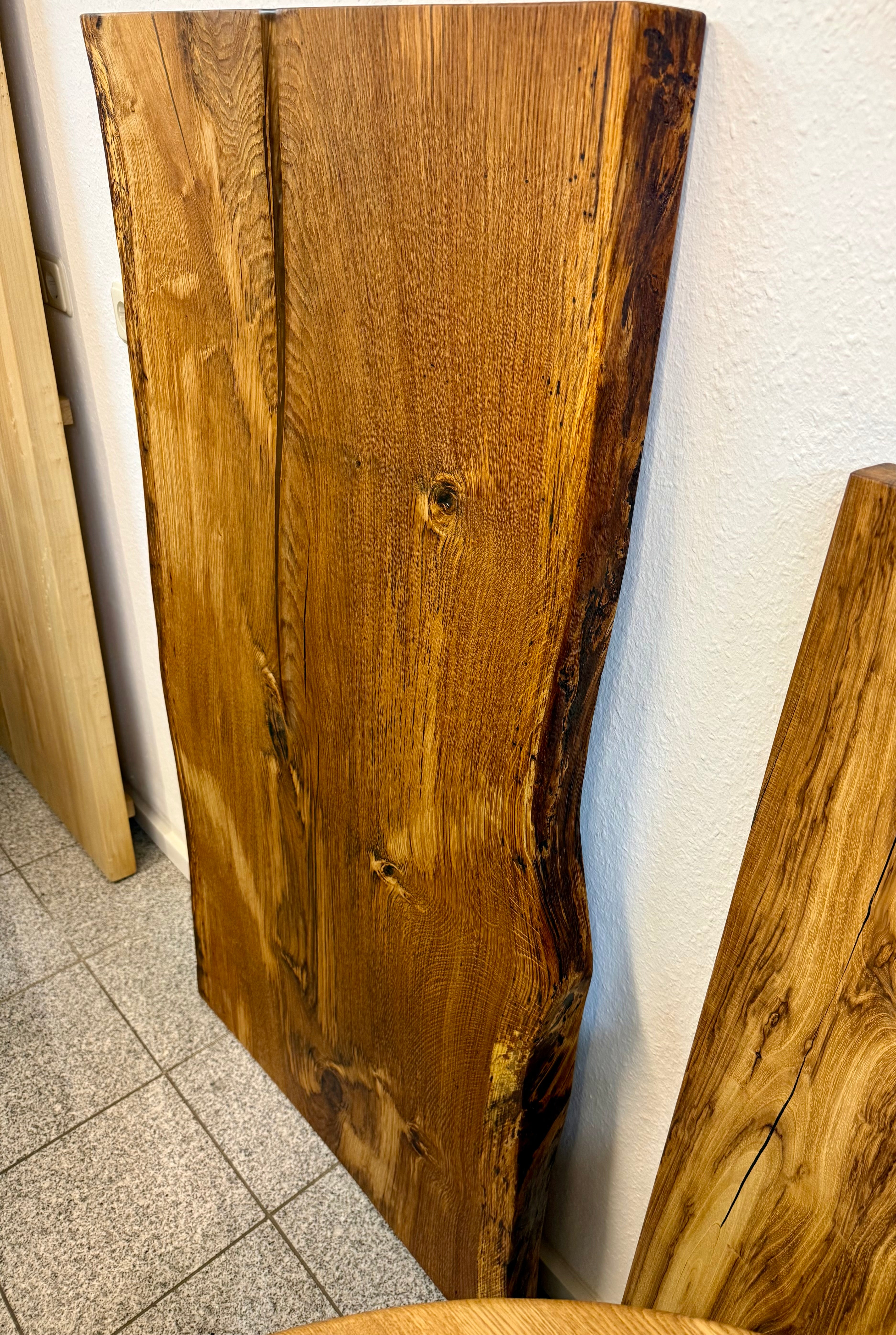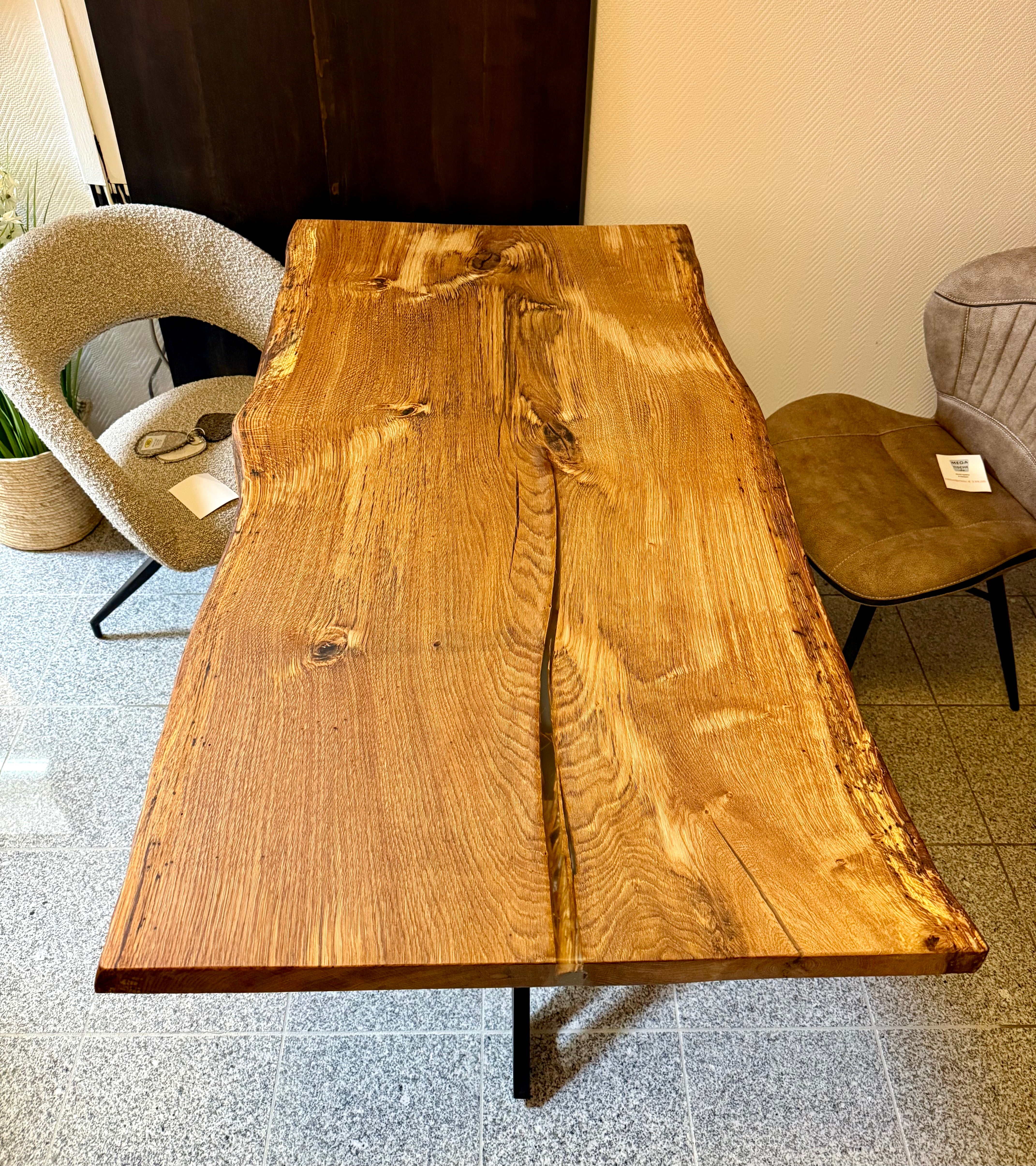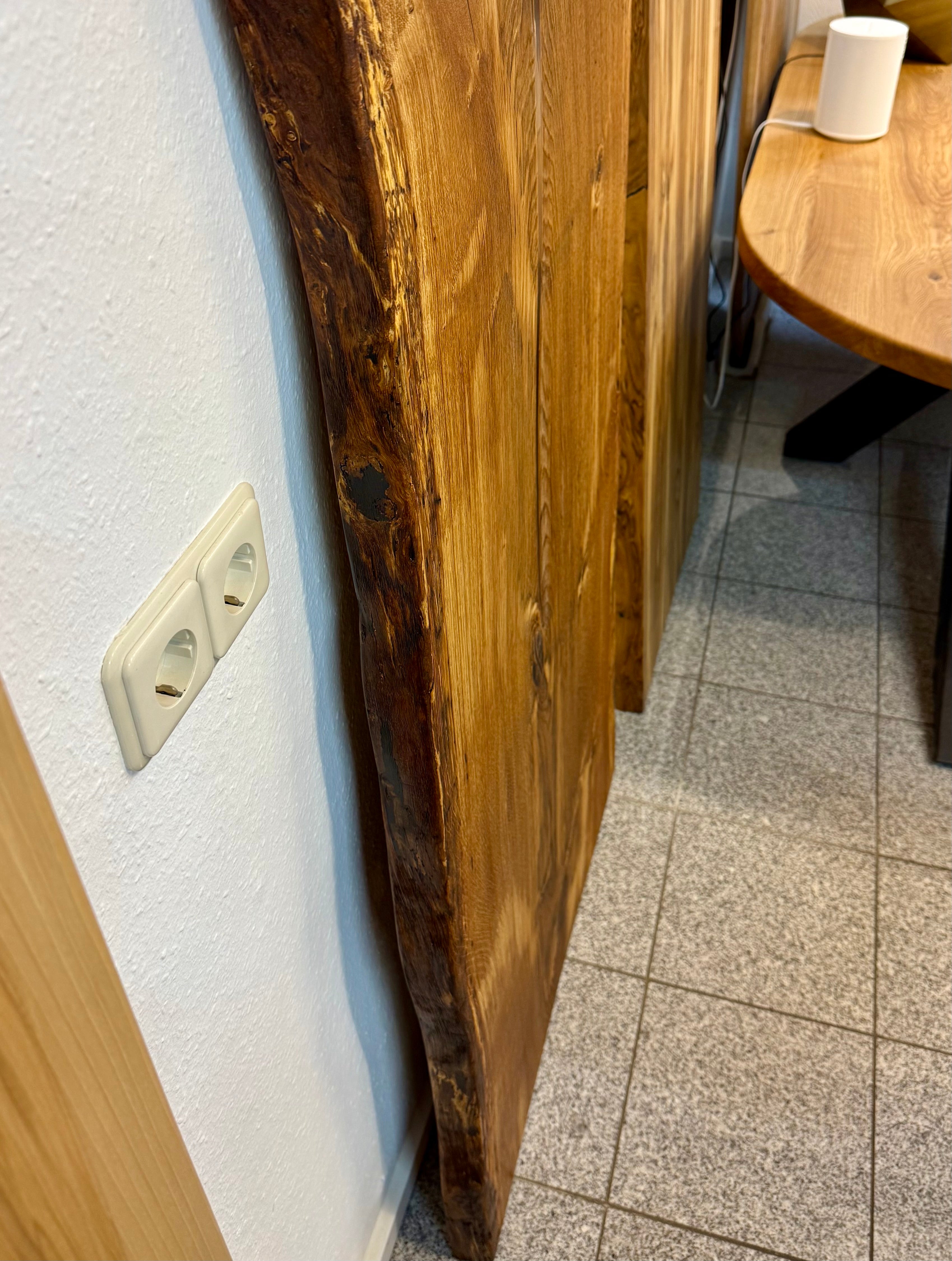 Dieser Eichenholztisch - ist aus einer massiven Eichebohle gefertigt.