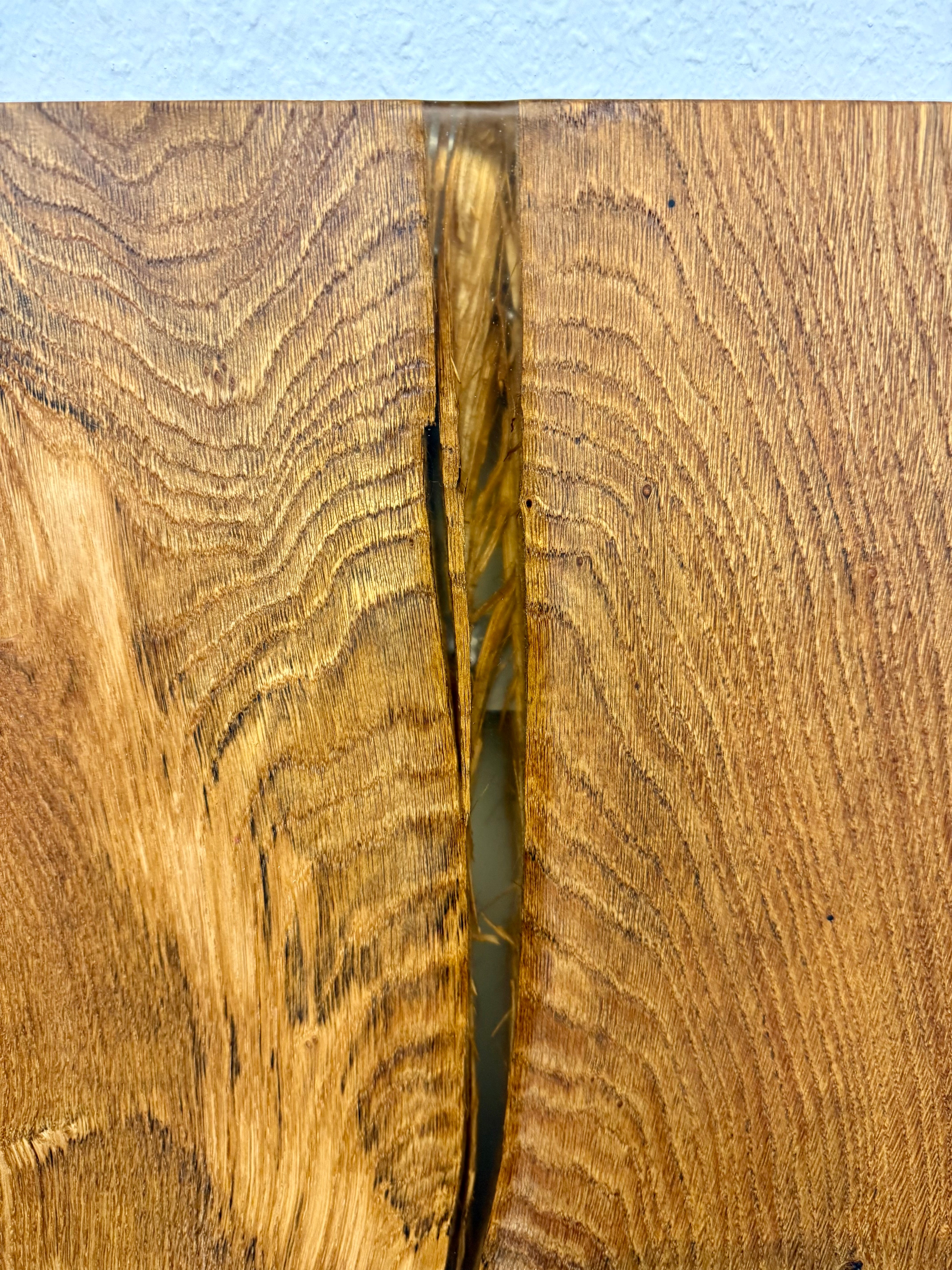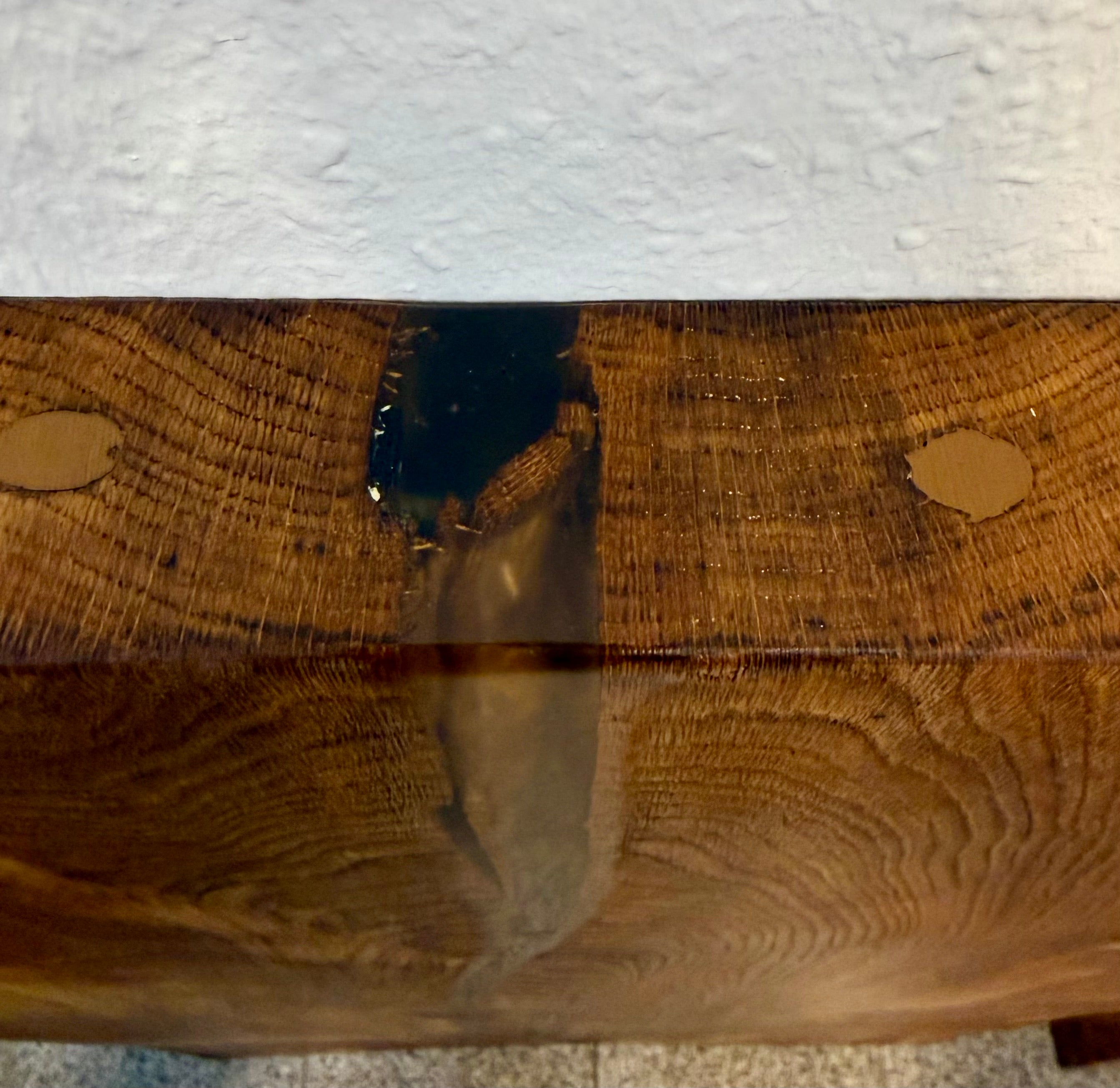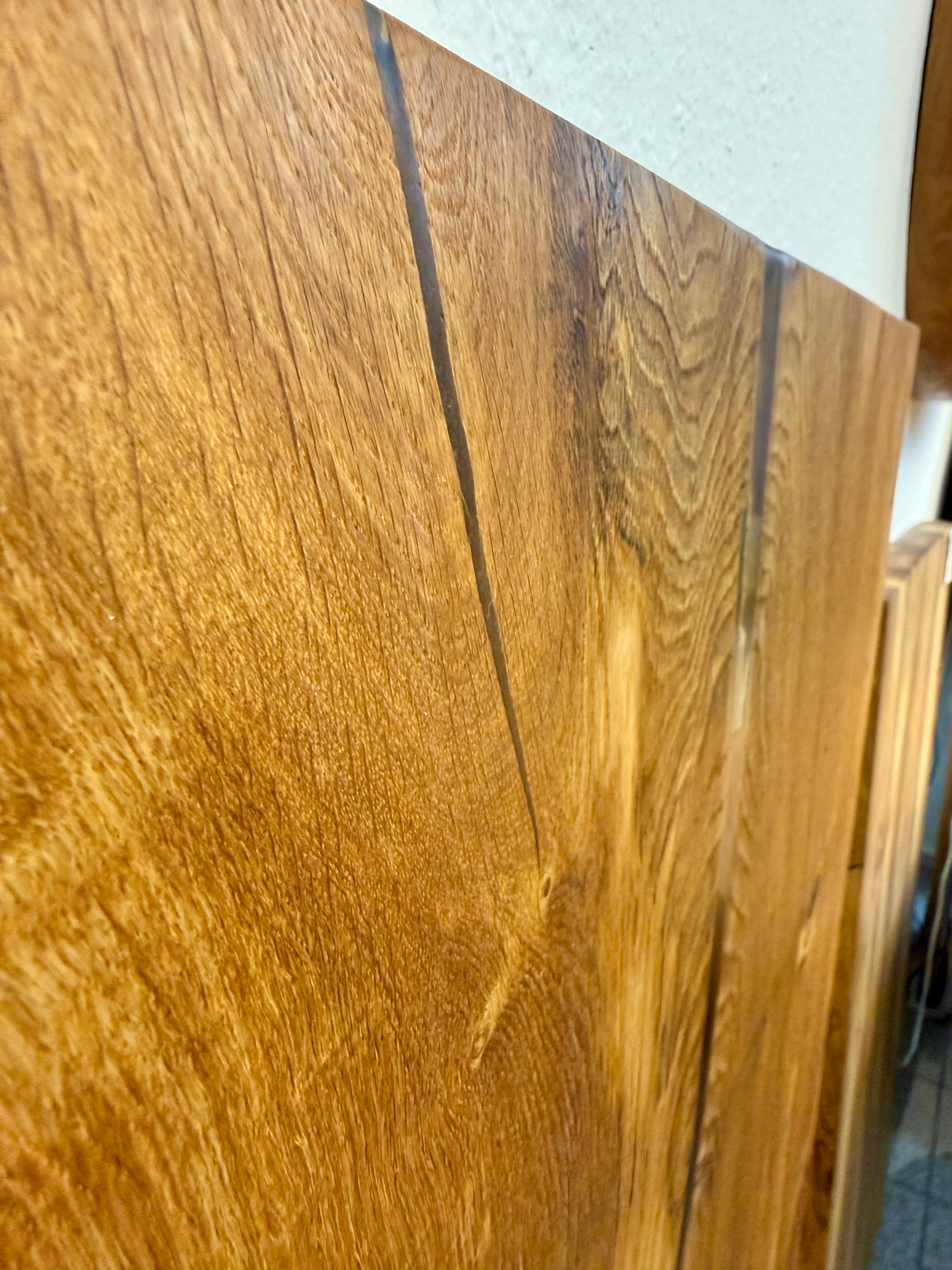 Die Tischoberfläche ist geölt und mit Epoxidharz versiegelt.