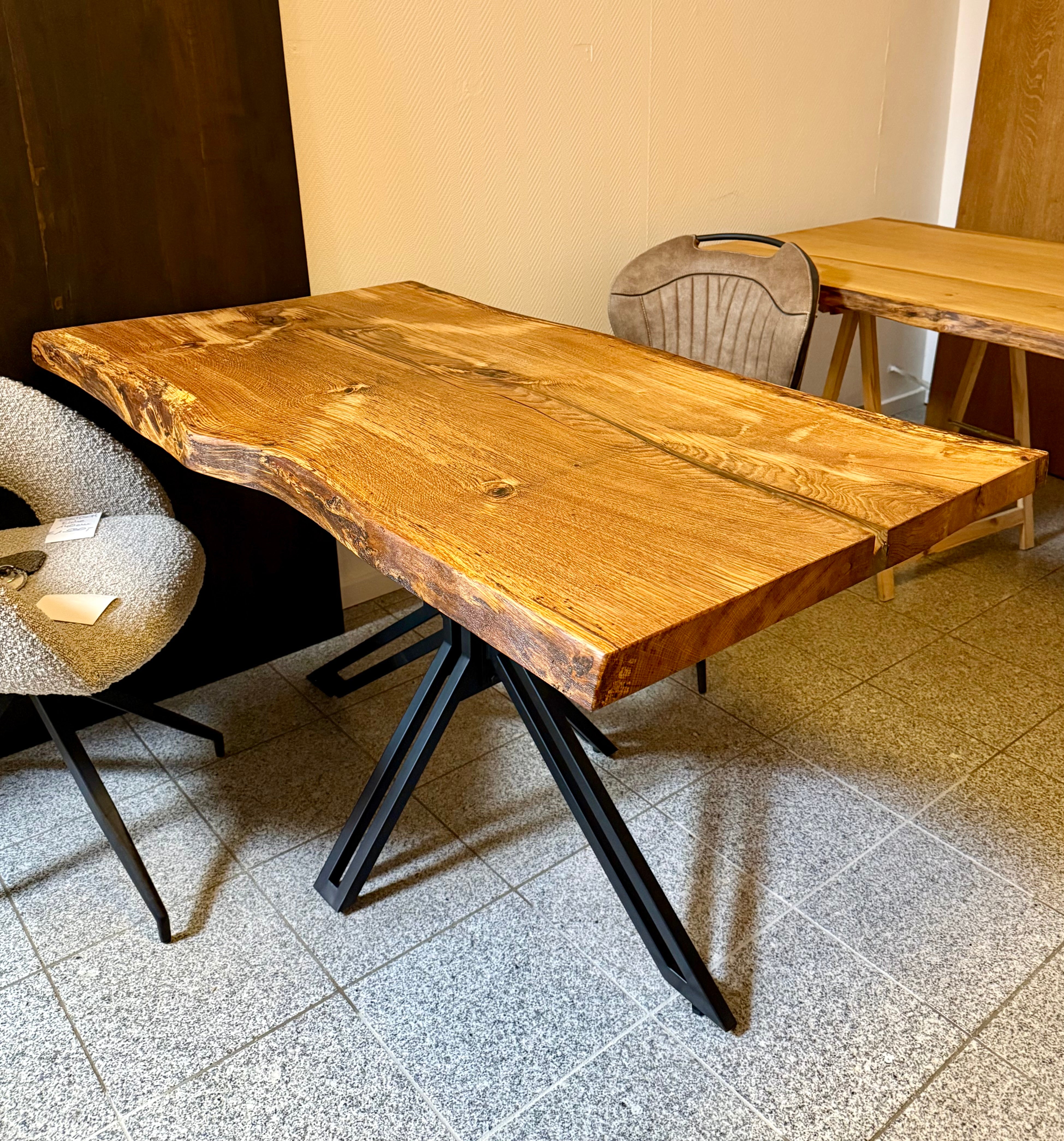 Falls sie Interesse an Holz Tischen haben, so fragen sie gerne an - wir haben sehr viele Platten in unterschiedlichen Längen und Breiten auf Lager - auch die Gestelle können sie selbst bestimmen. Wir haben eine eigene Tischmanufaktur/ Schreinerei und können so auch Anfertigungen für Sie herstellen - auch in anderen Holzarten!