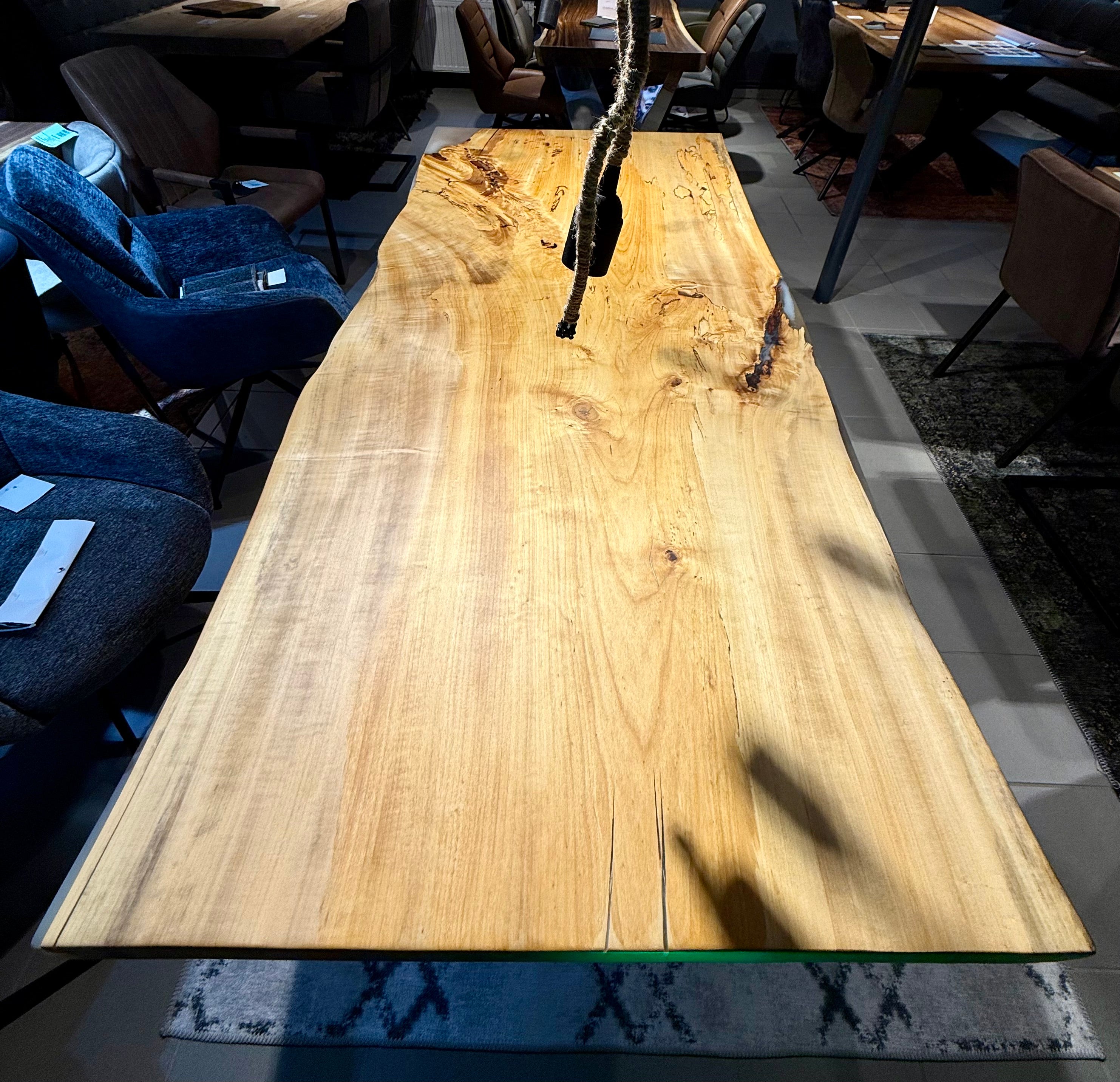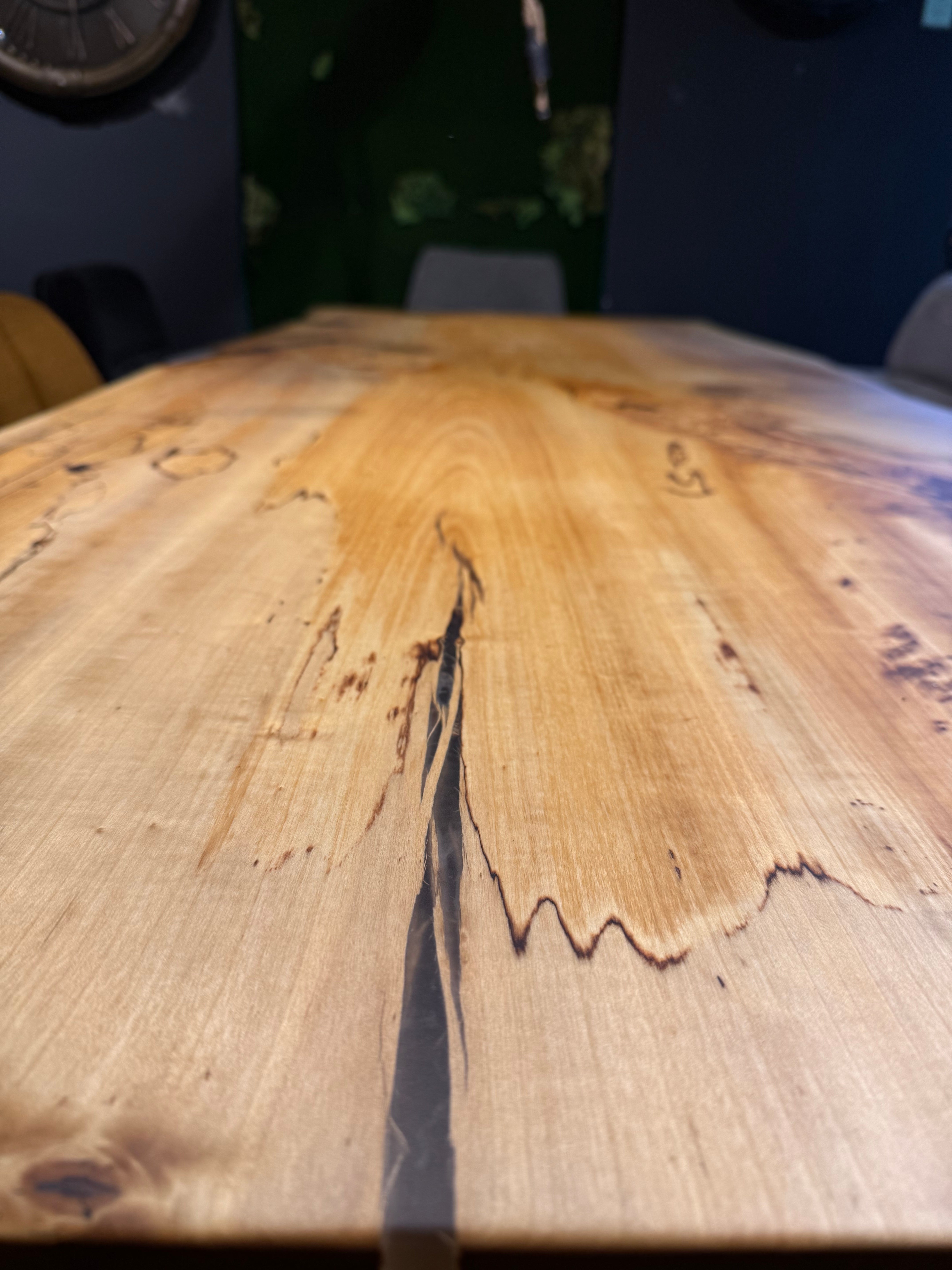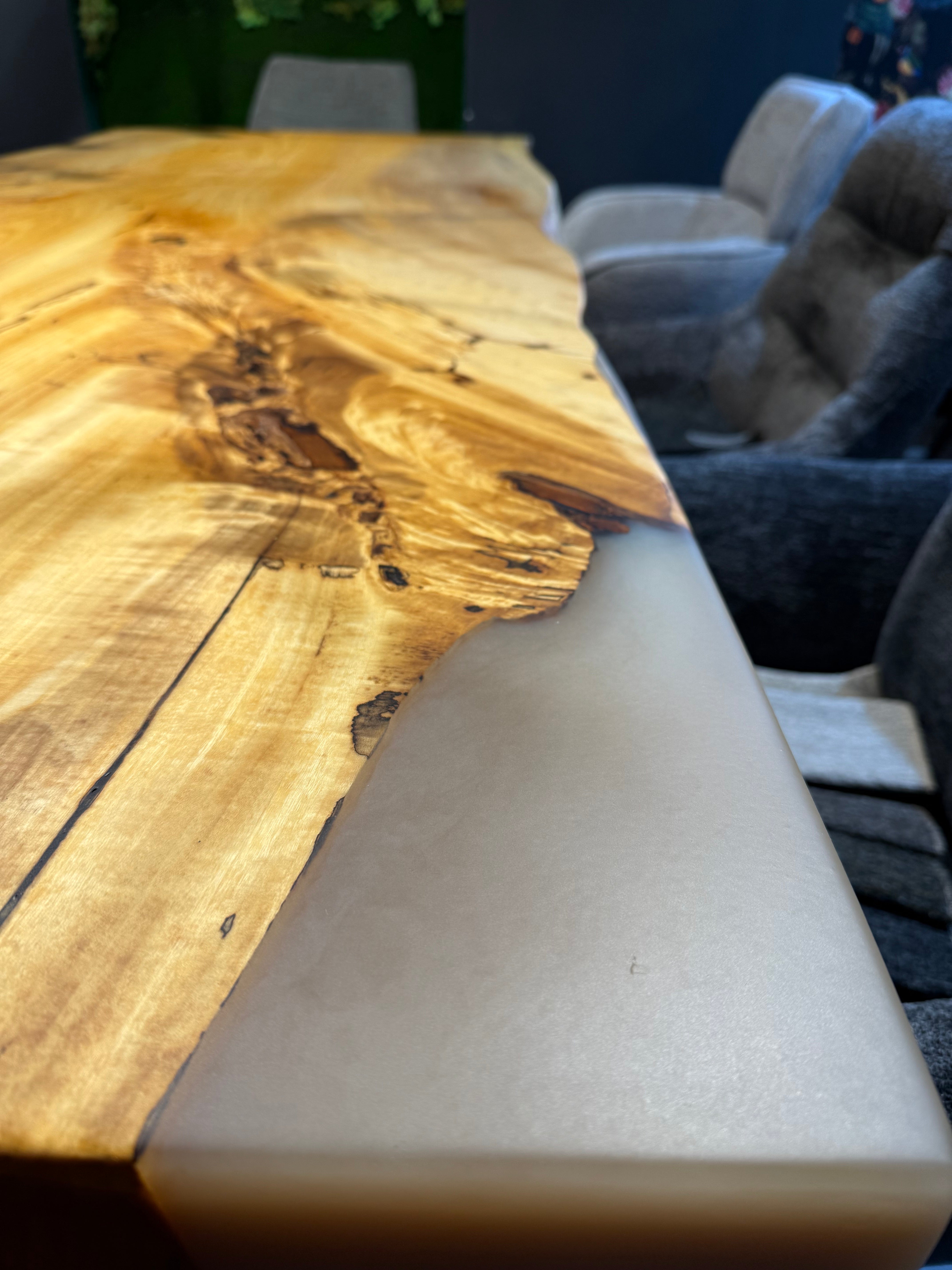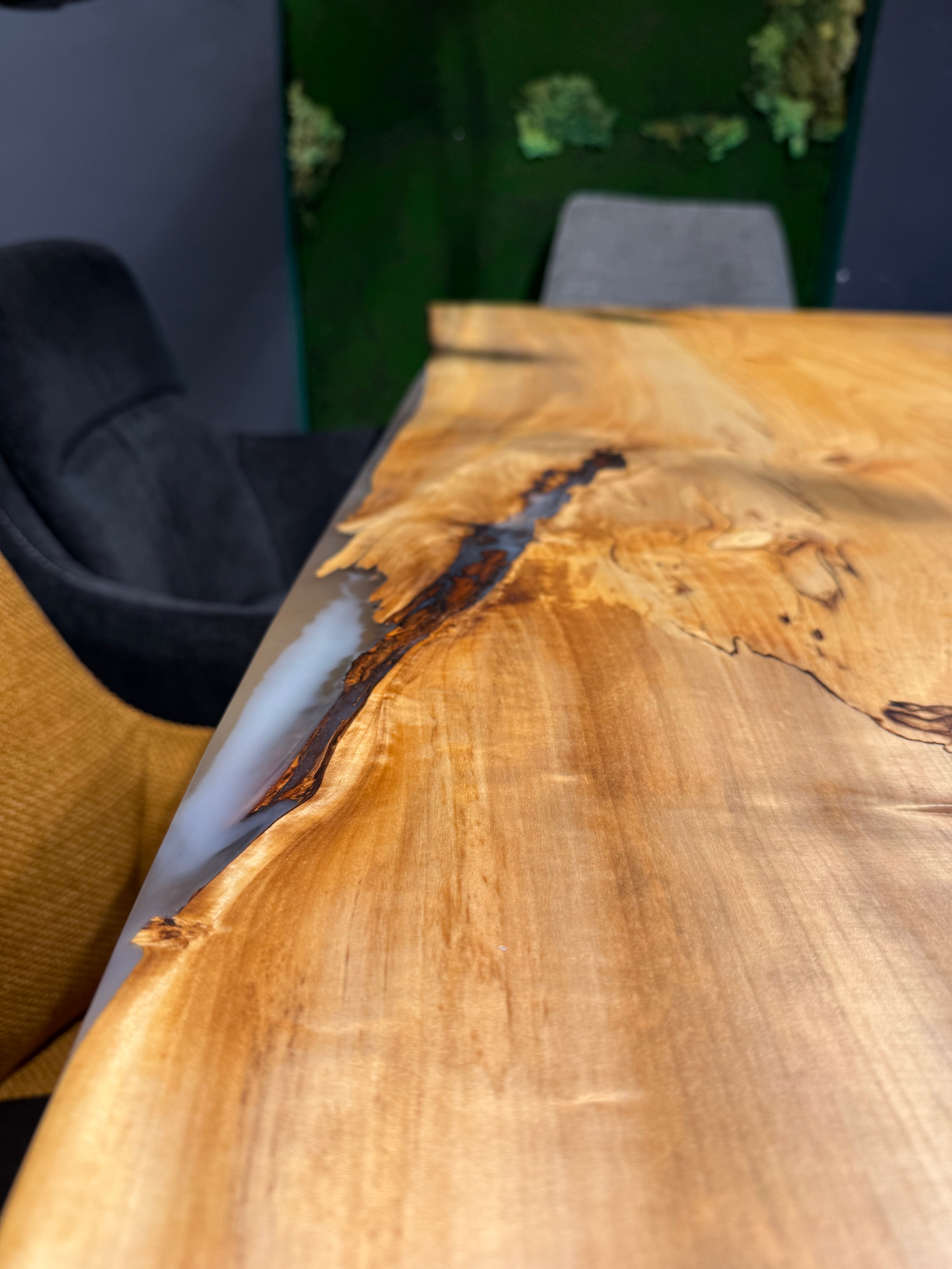 Dieser Epoxidharzesstisch aus Pappelholz - ist aus einer massiven Bohle gefertigt.