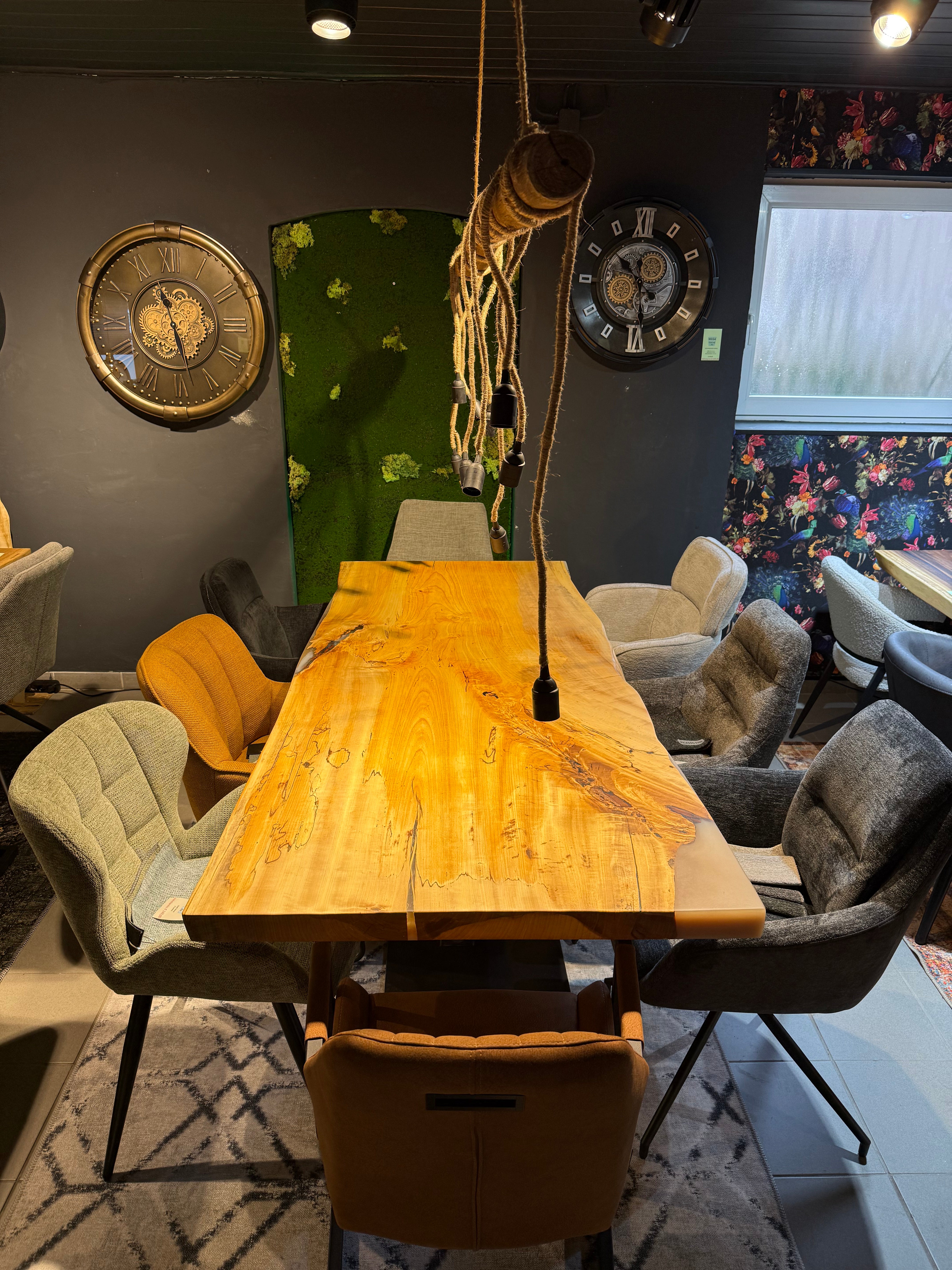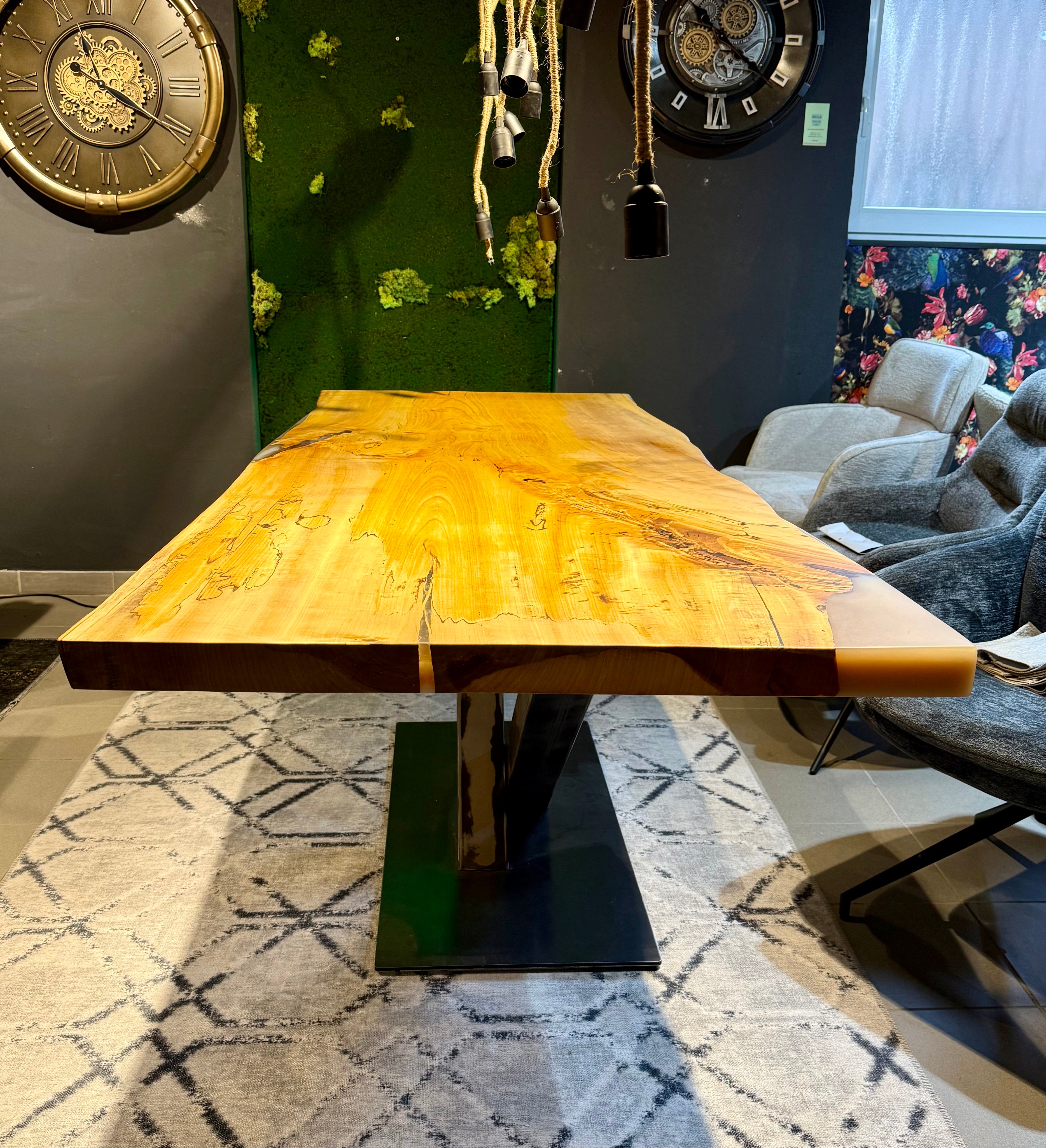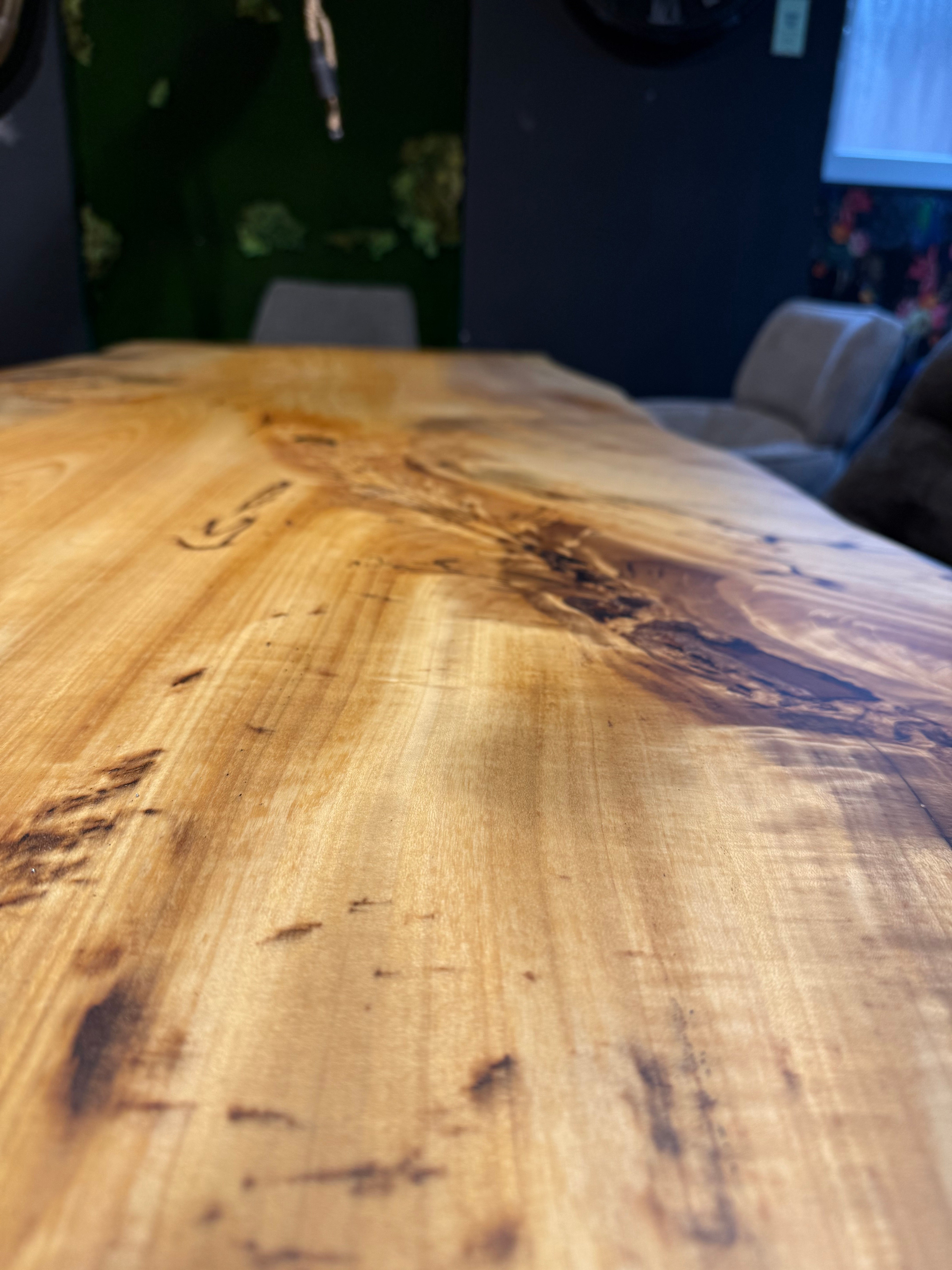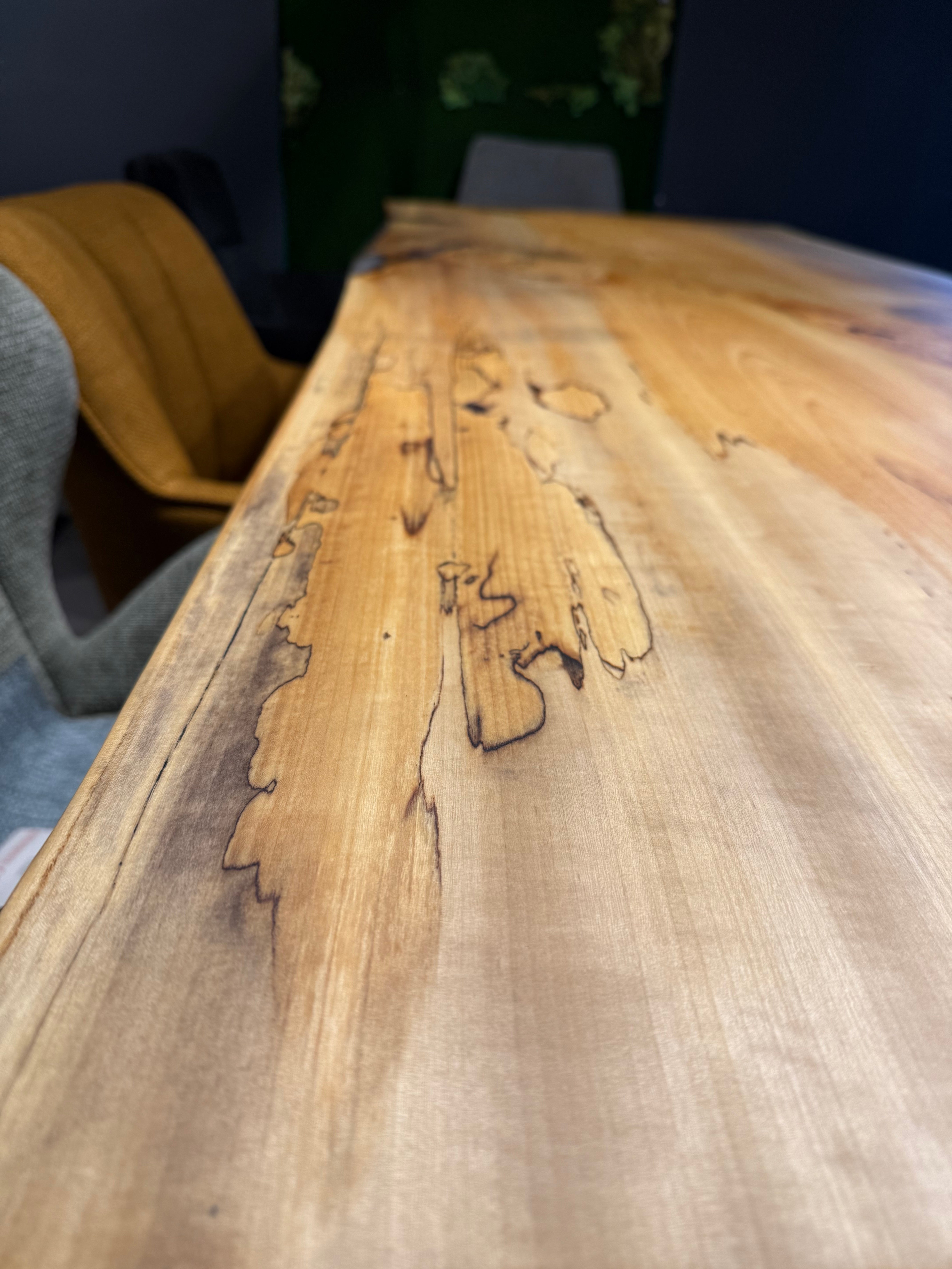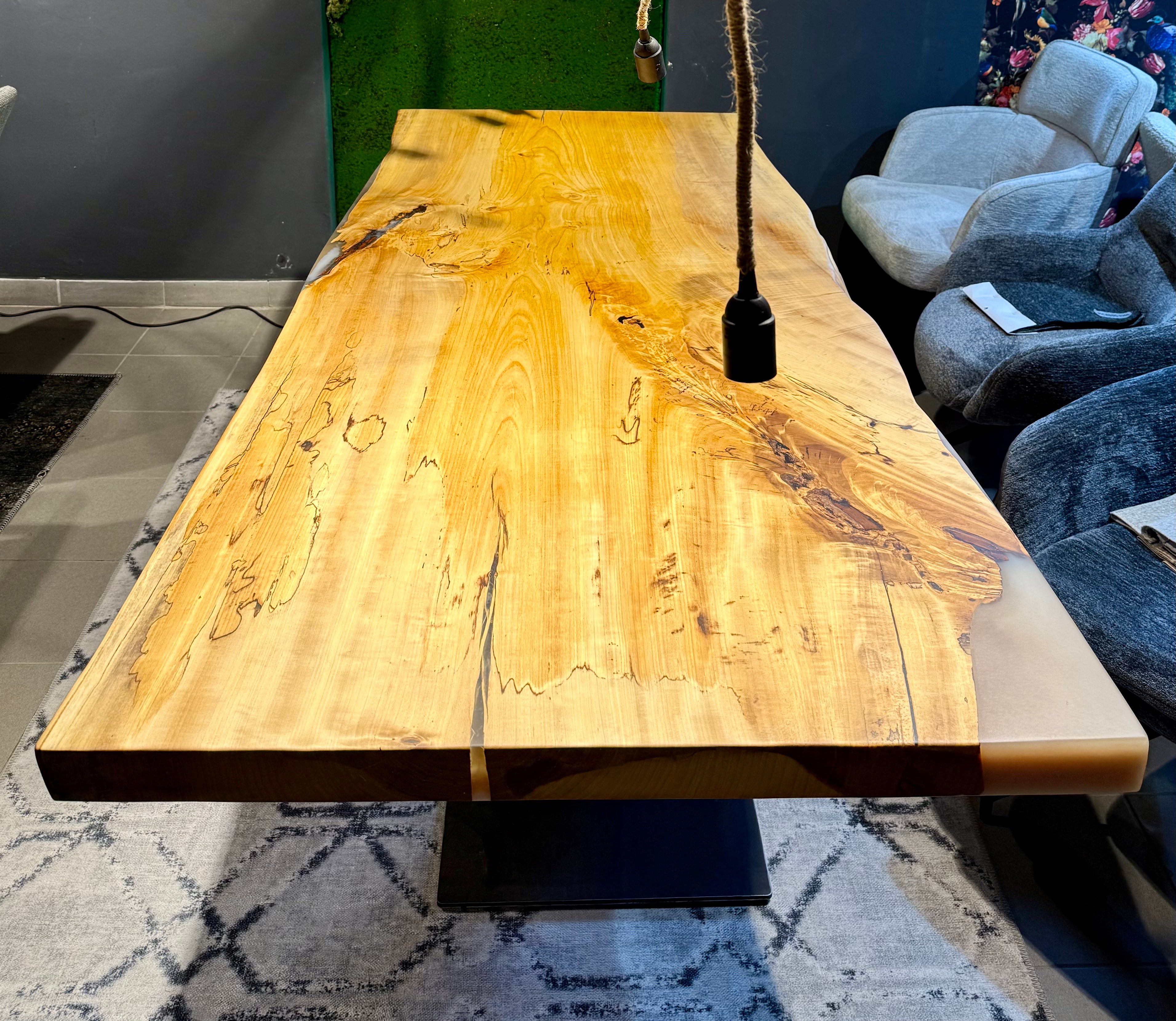 Dieser Epoxidharzesstisch aus Pappelholz - ist aus einer massiven Bohle gefertigt.