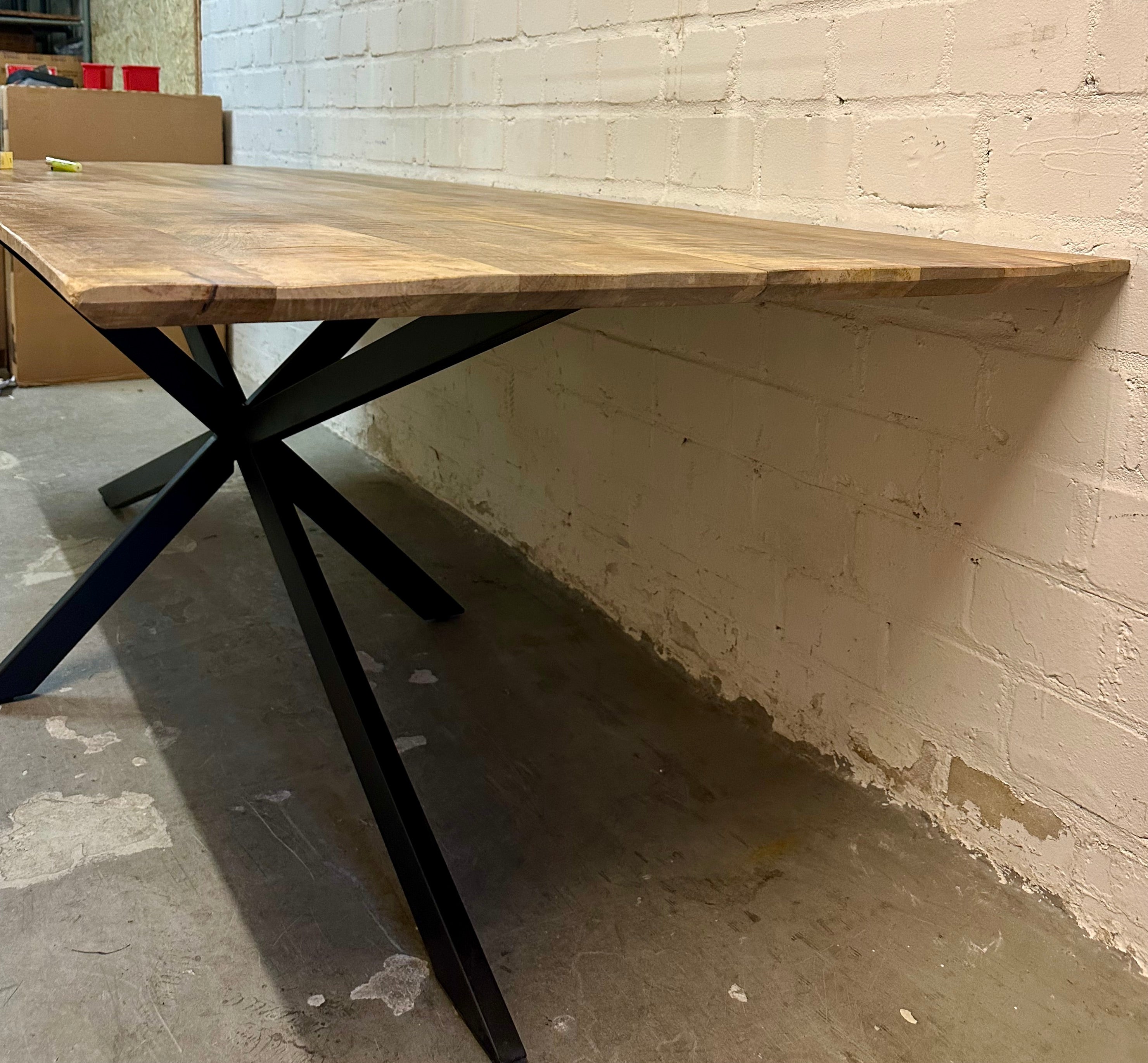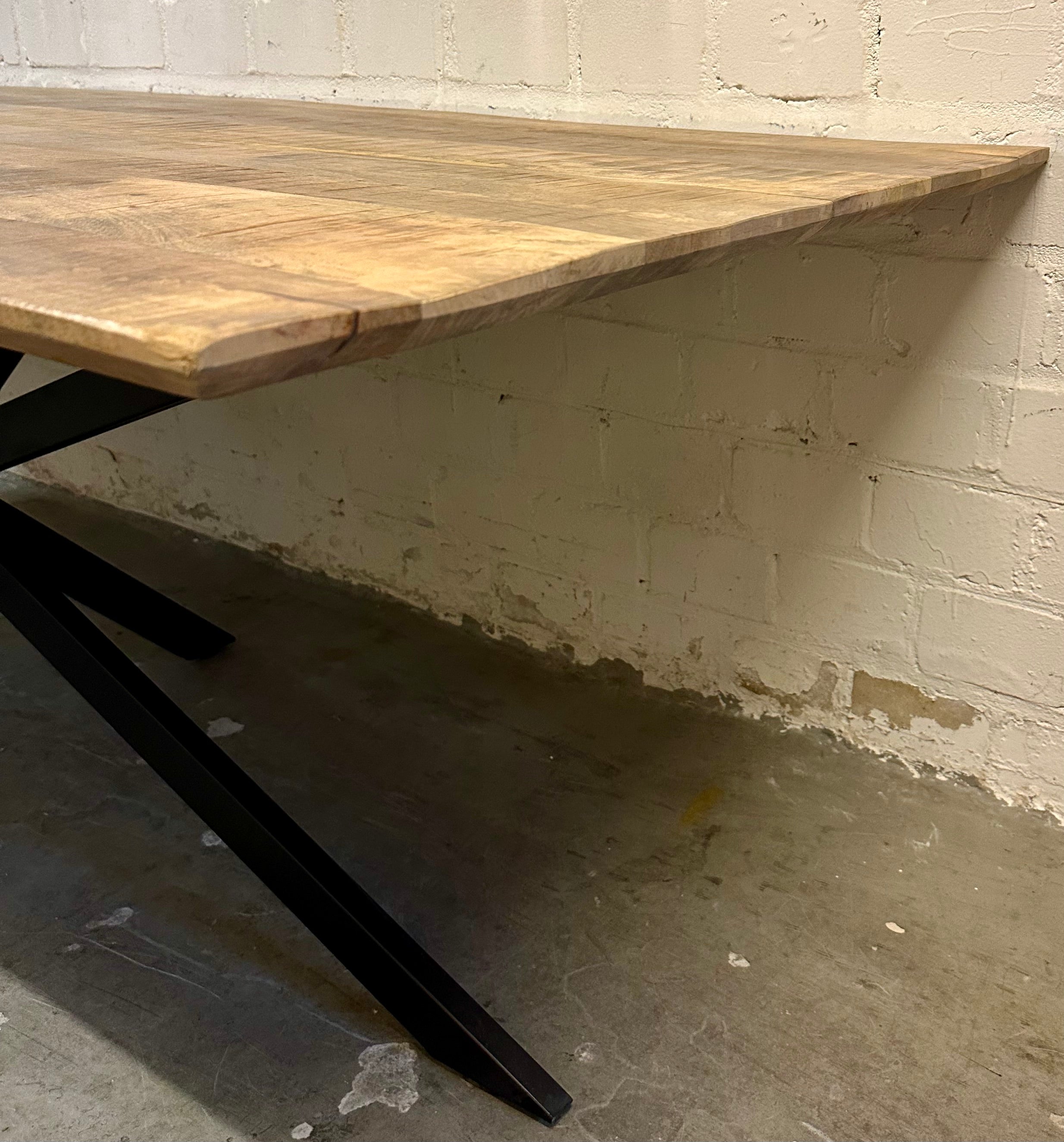 Esstisch Arlin Mangoholz natur 200 & 240 cm Schweizer Kante mit Spider Gestell