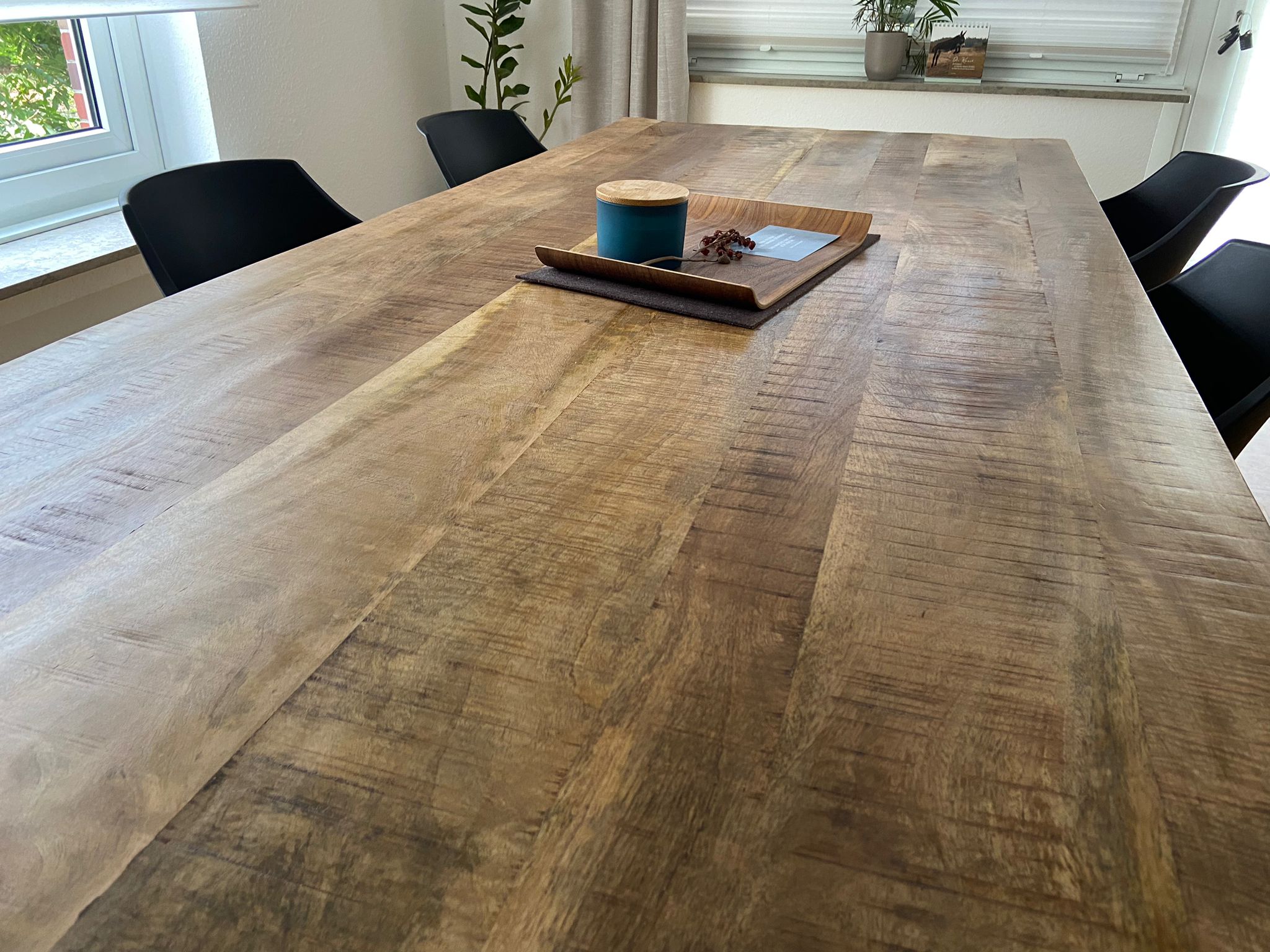 - 3 cm Tischplatte Mango geölt massiv (nicht glatt geschliffen sondern rustikal uneben)