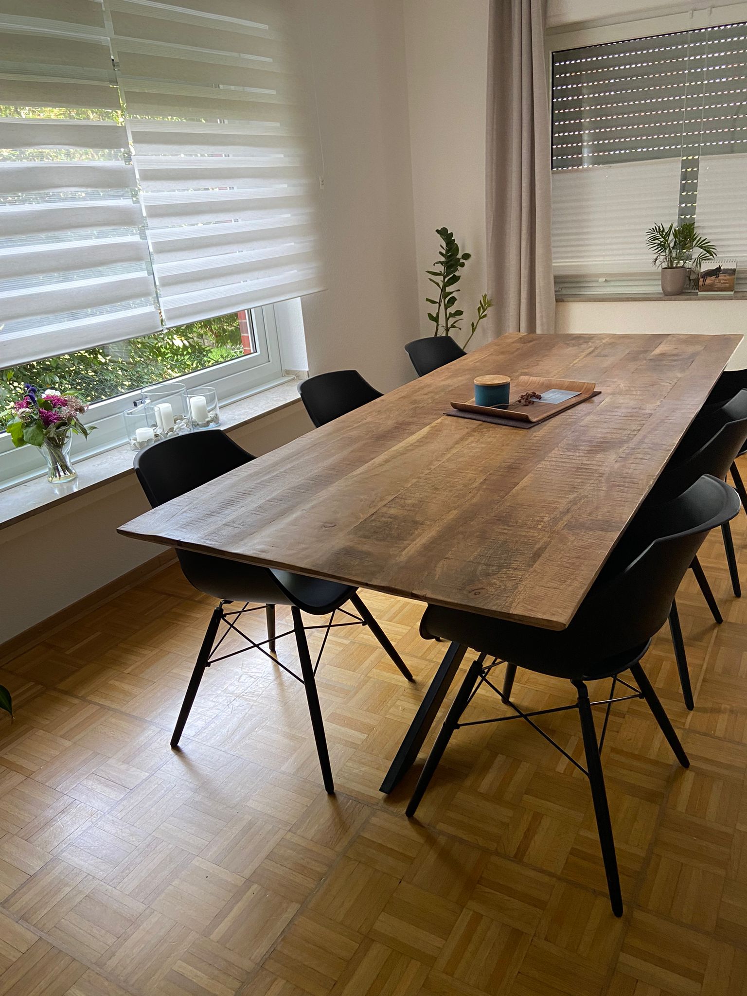Dieser mega tolle Industrie Design Esstisch Arlin - ist aus massiven Mangoholz gefertigt