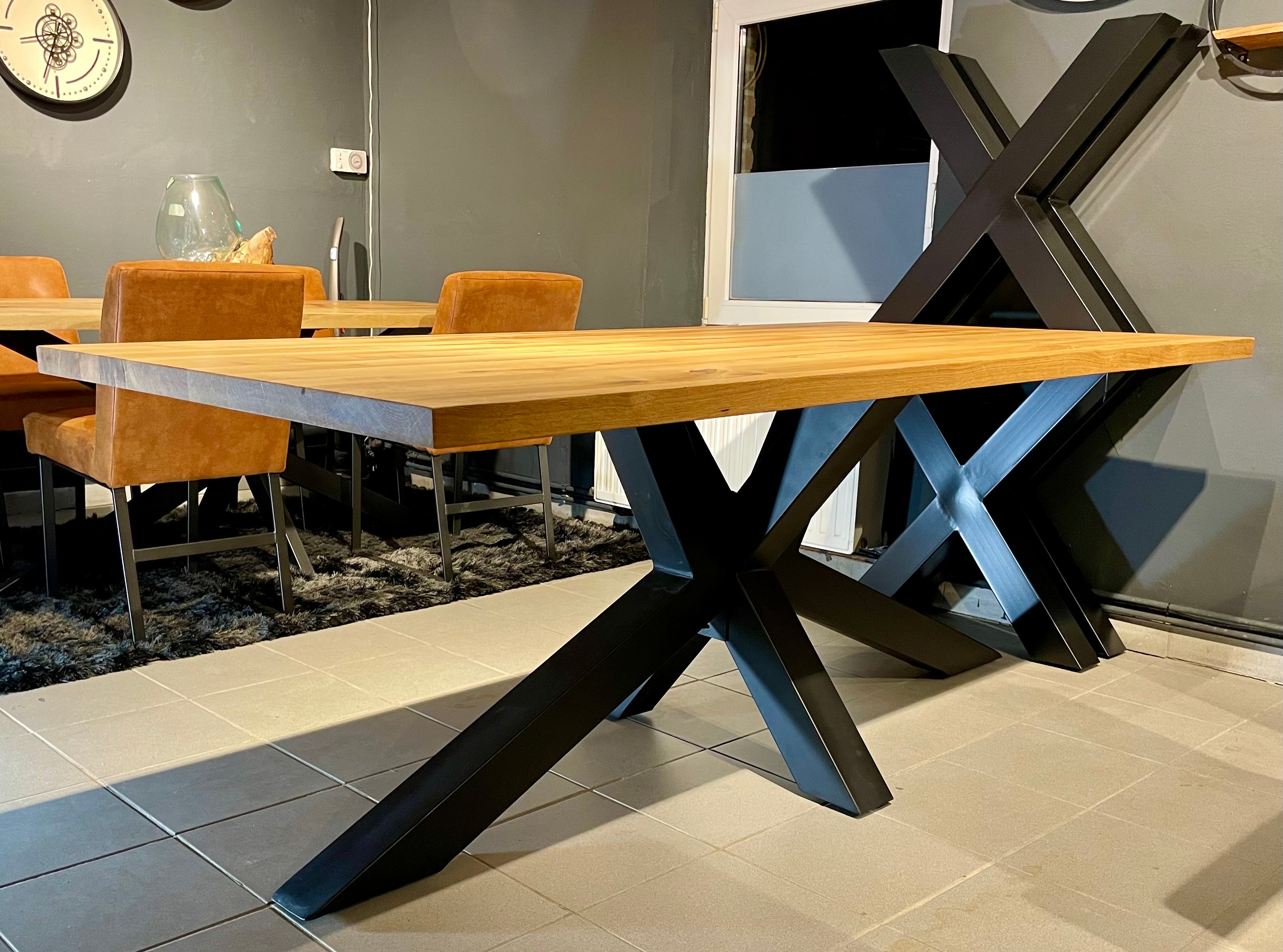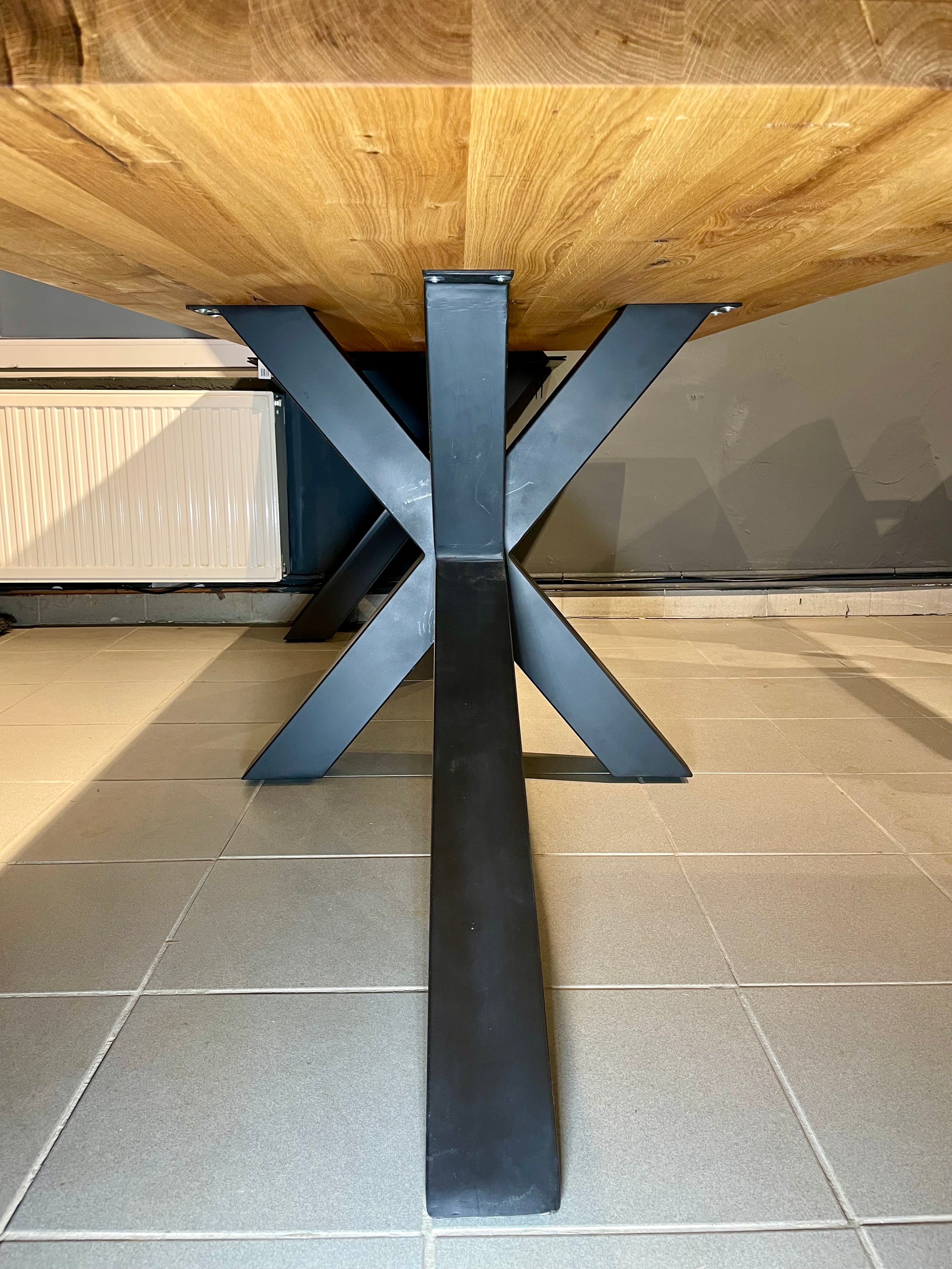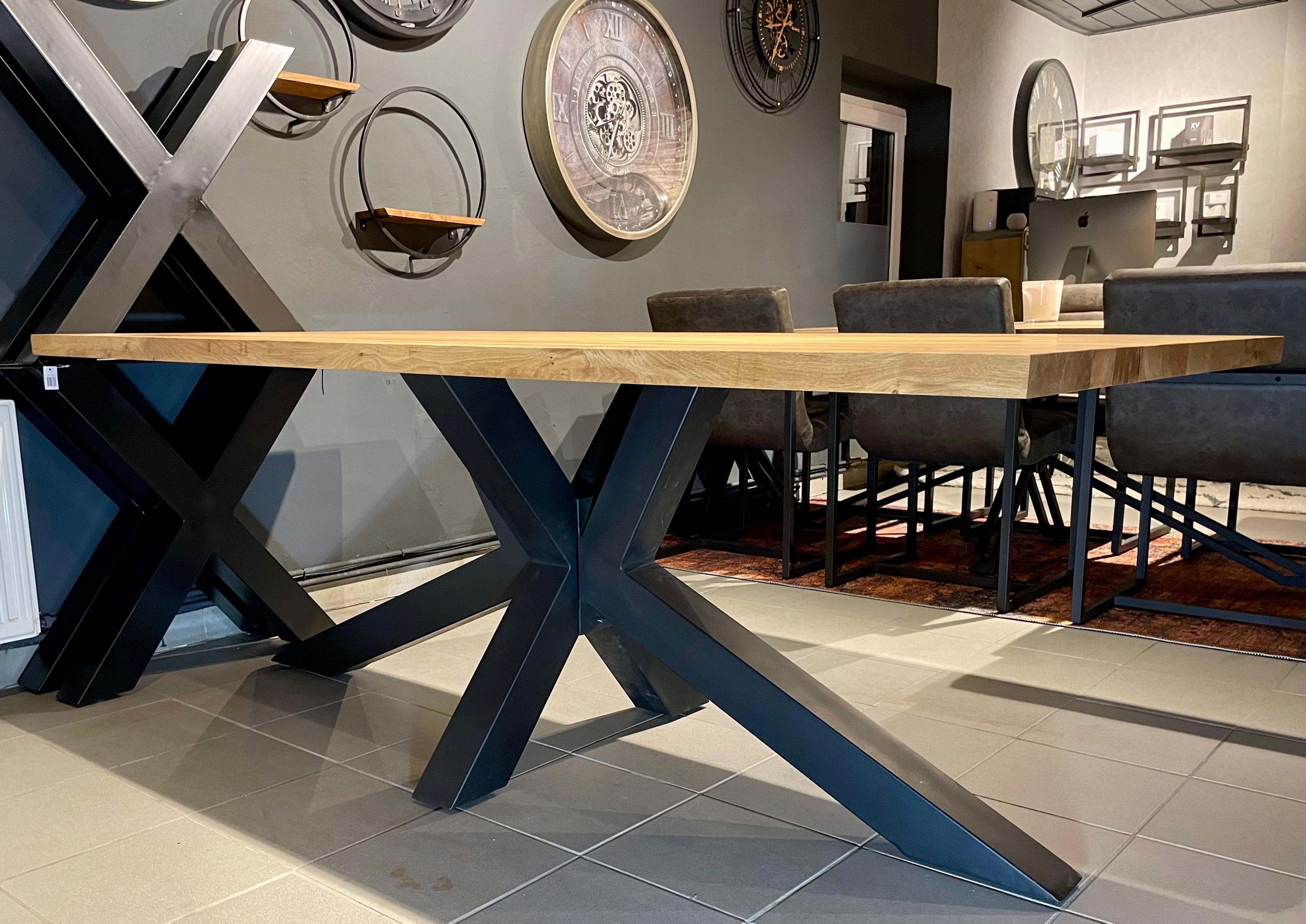 Esstisch Köln Eiche massiv 200 bis 320 in 4 cm Dicke Holz geölt mit Spider Metall Gestell schwarz 6 Größen