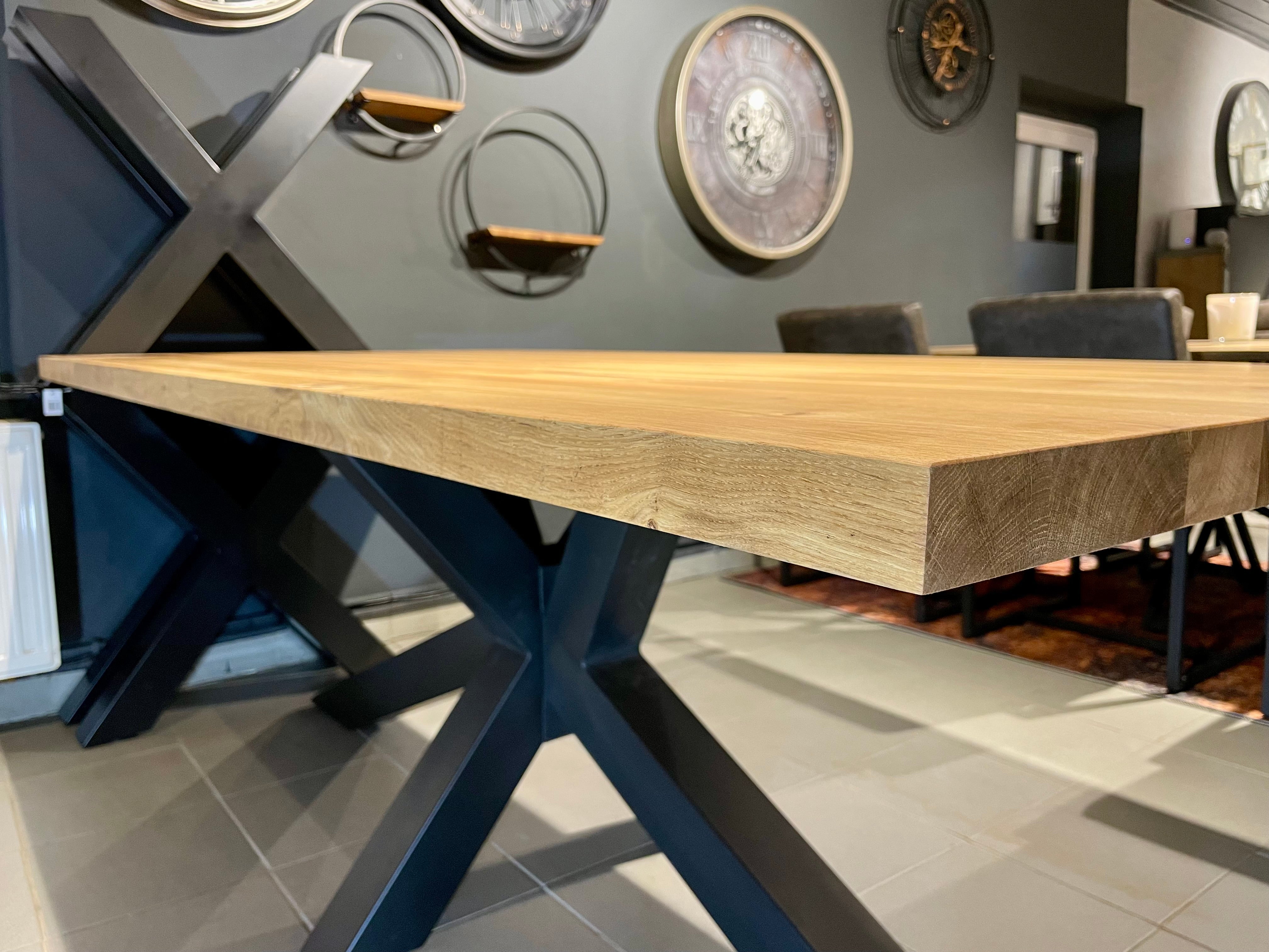Dieser Esstisch aus geöltem Eichenholz - ist aus massiven Eichebohlen handgefertigt.