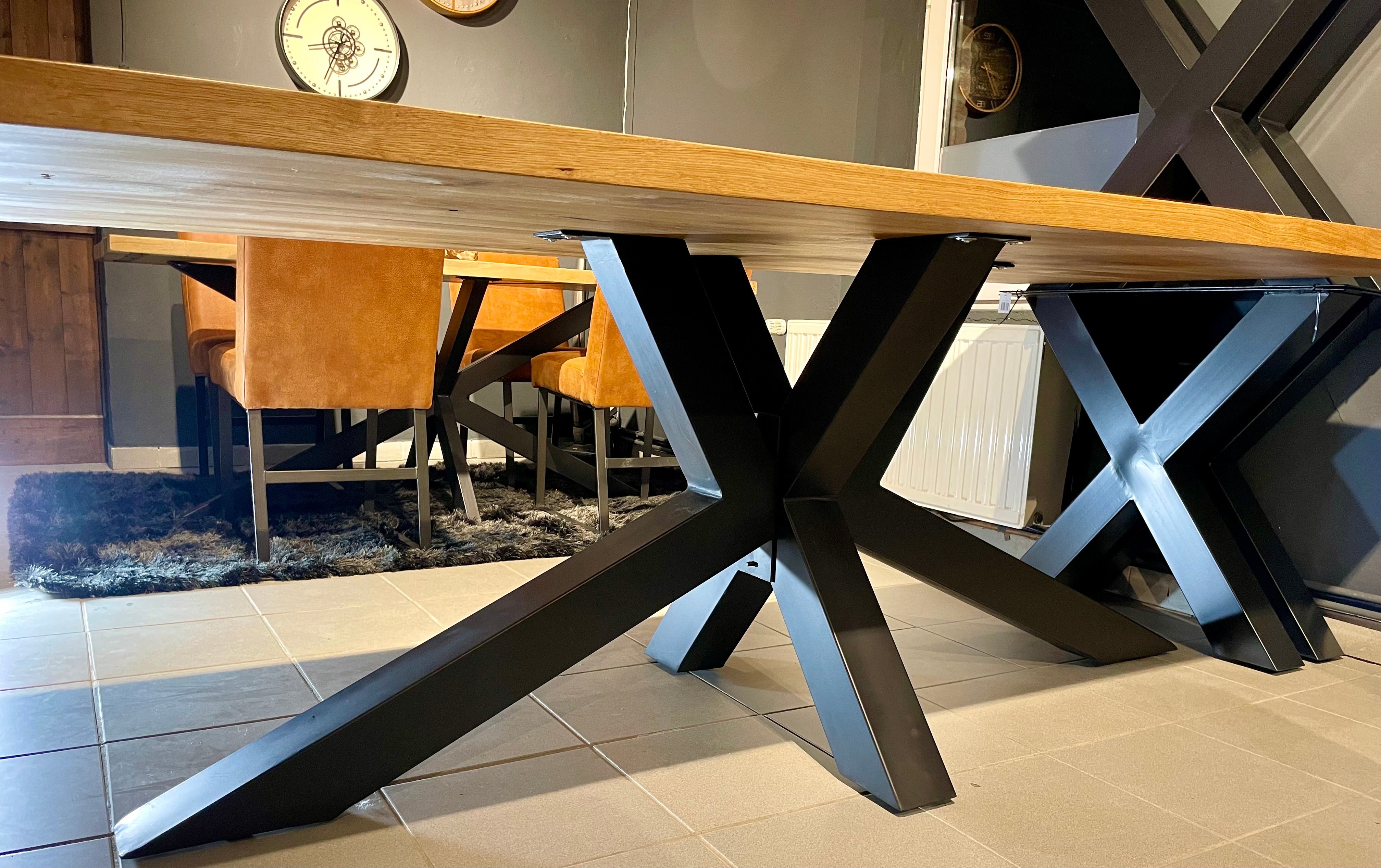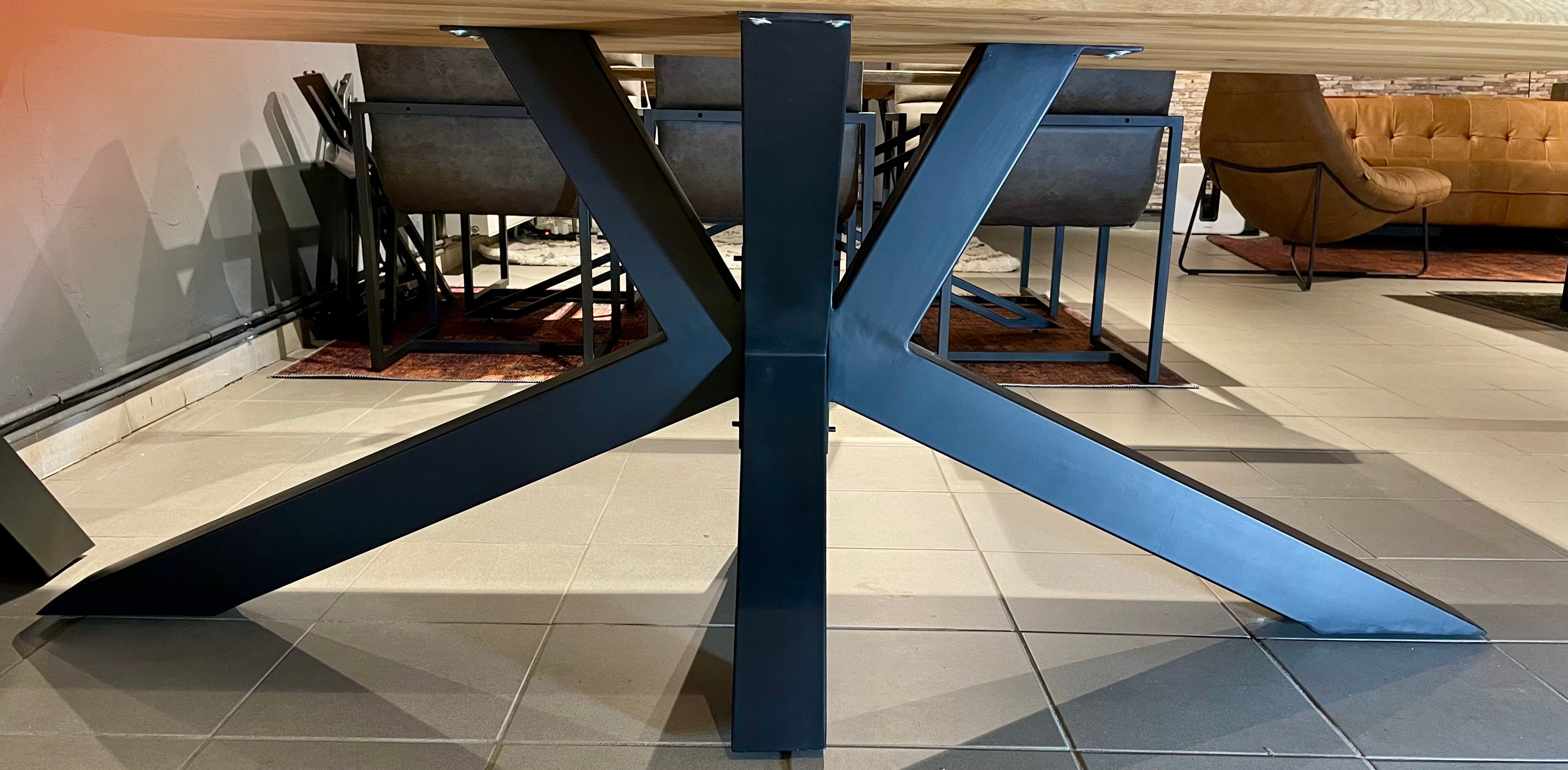 Der Holztisch hat ein schwarzes Spider Gestell (schwarz lackiert) und ist in 9 Größen erhältlich.