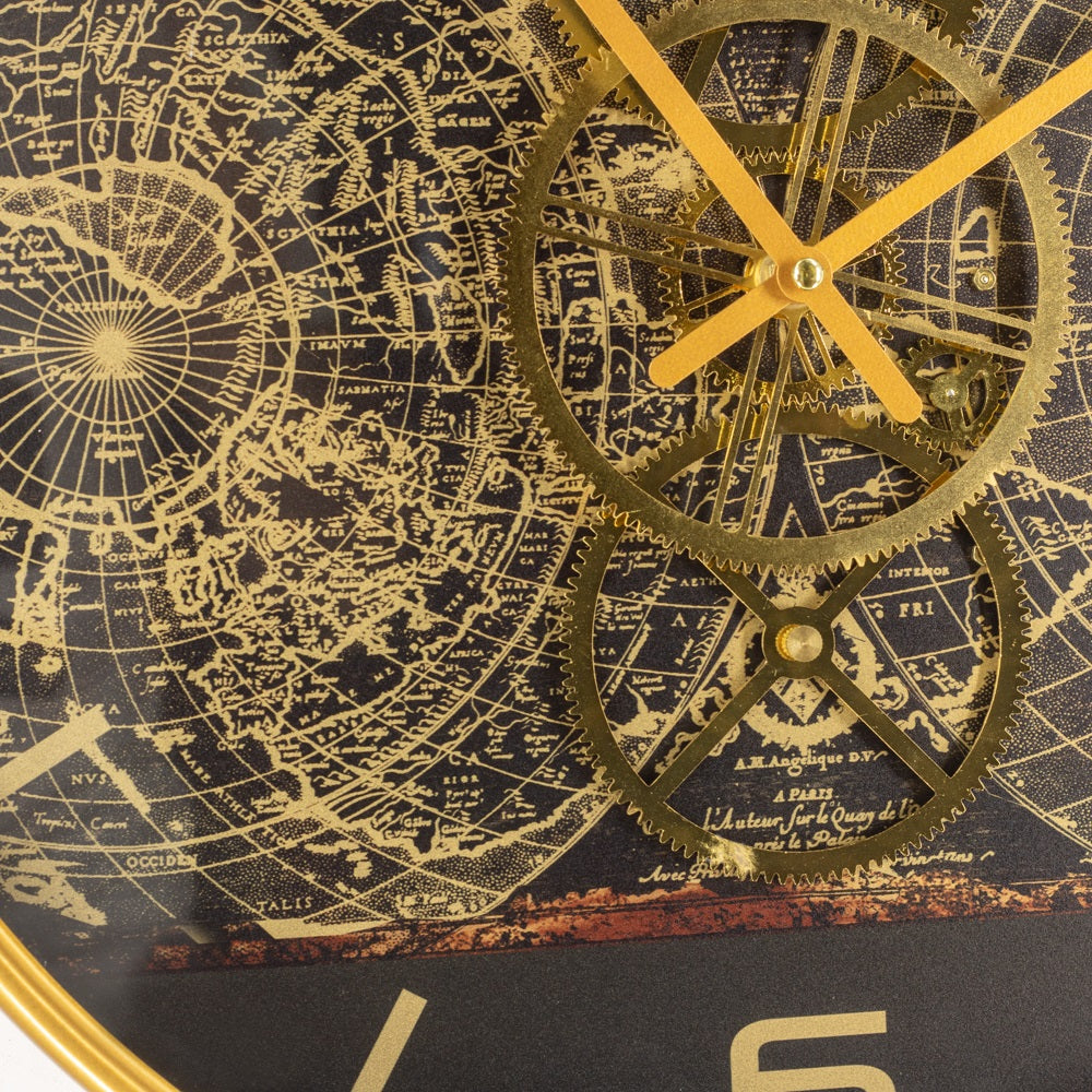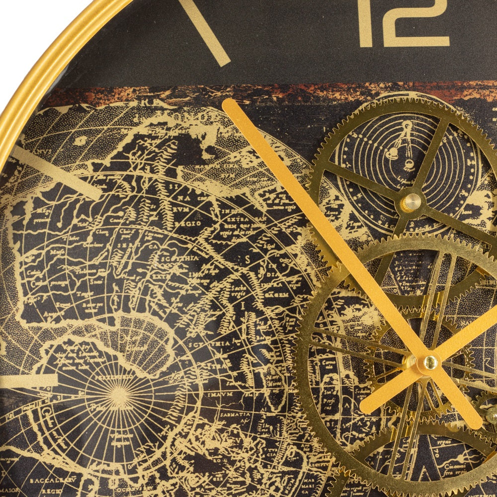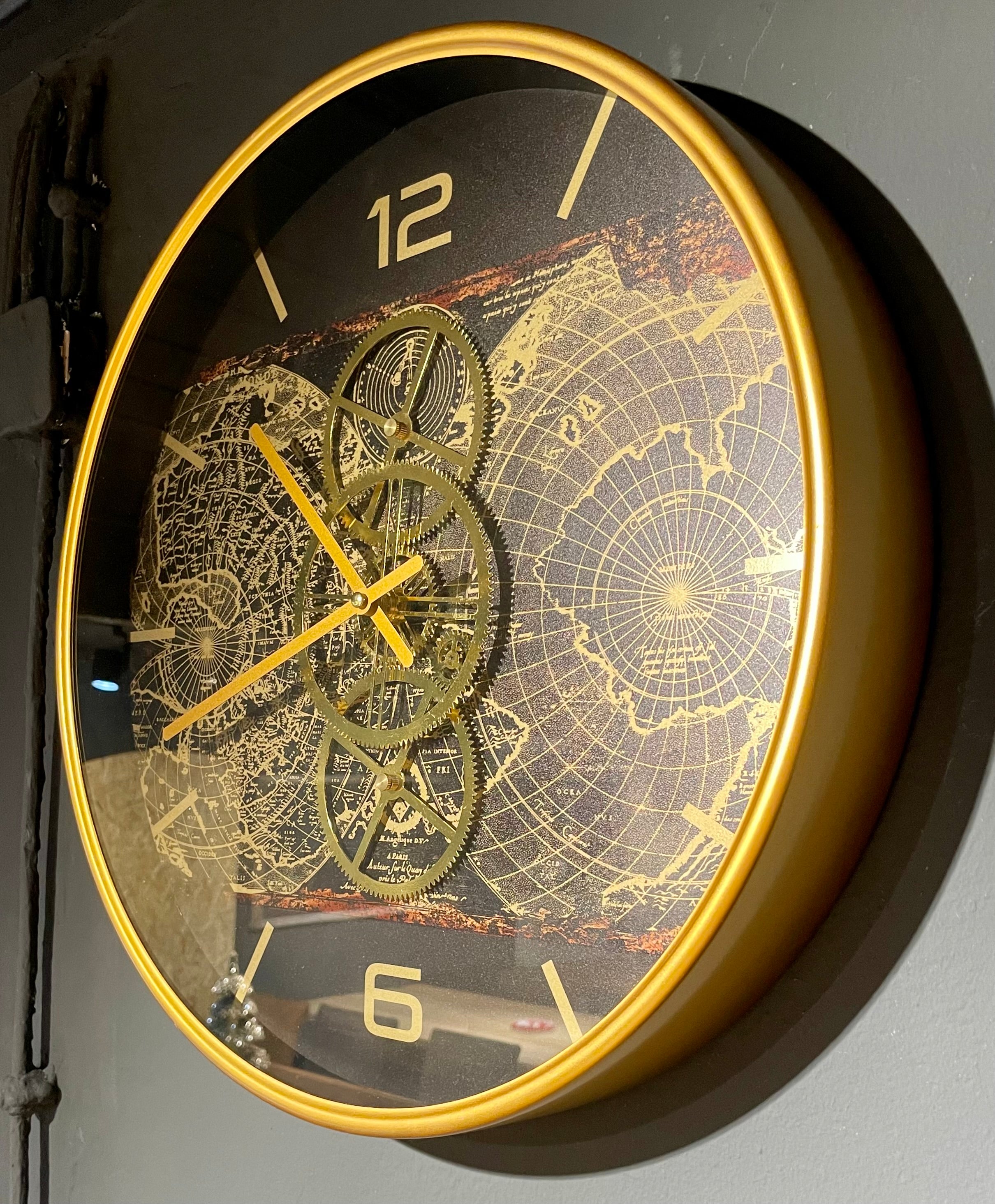 Golden Atlas Zahnrad Wanduhr 46 cm gold Beton grau animiert drehend