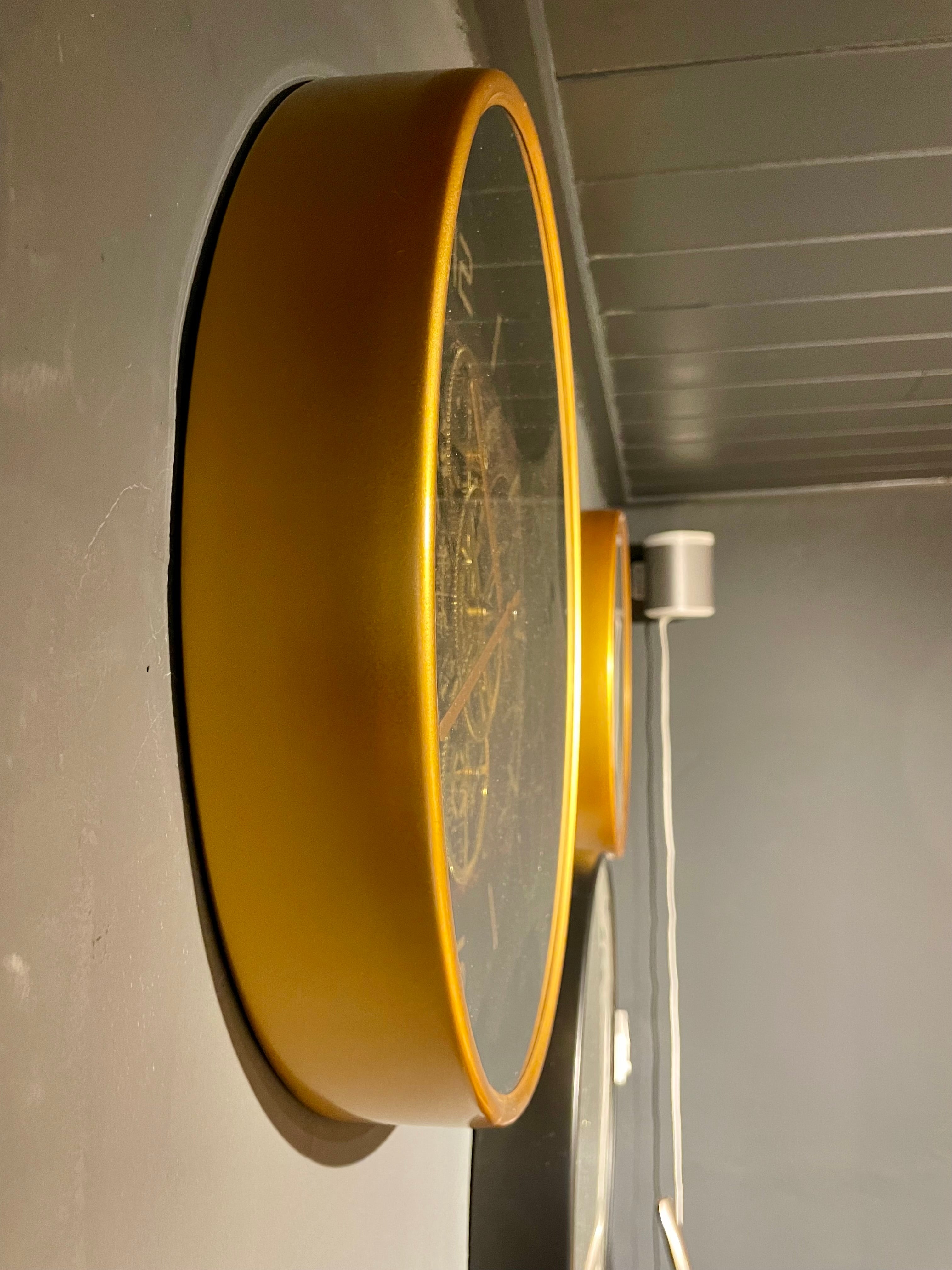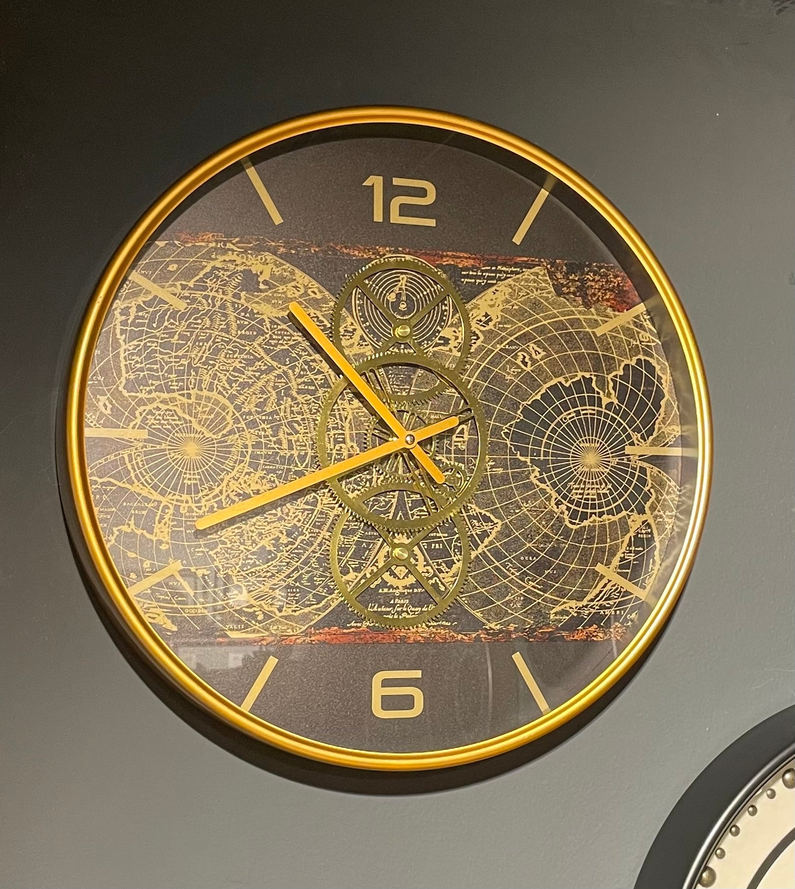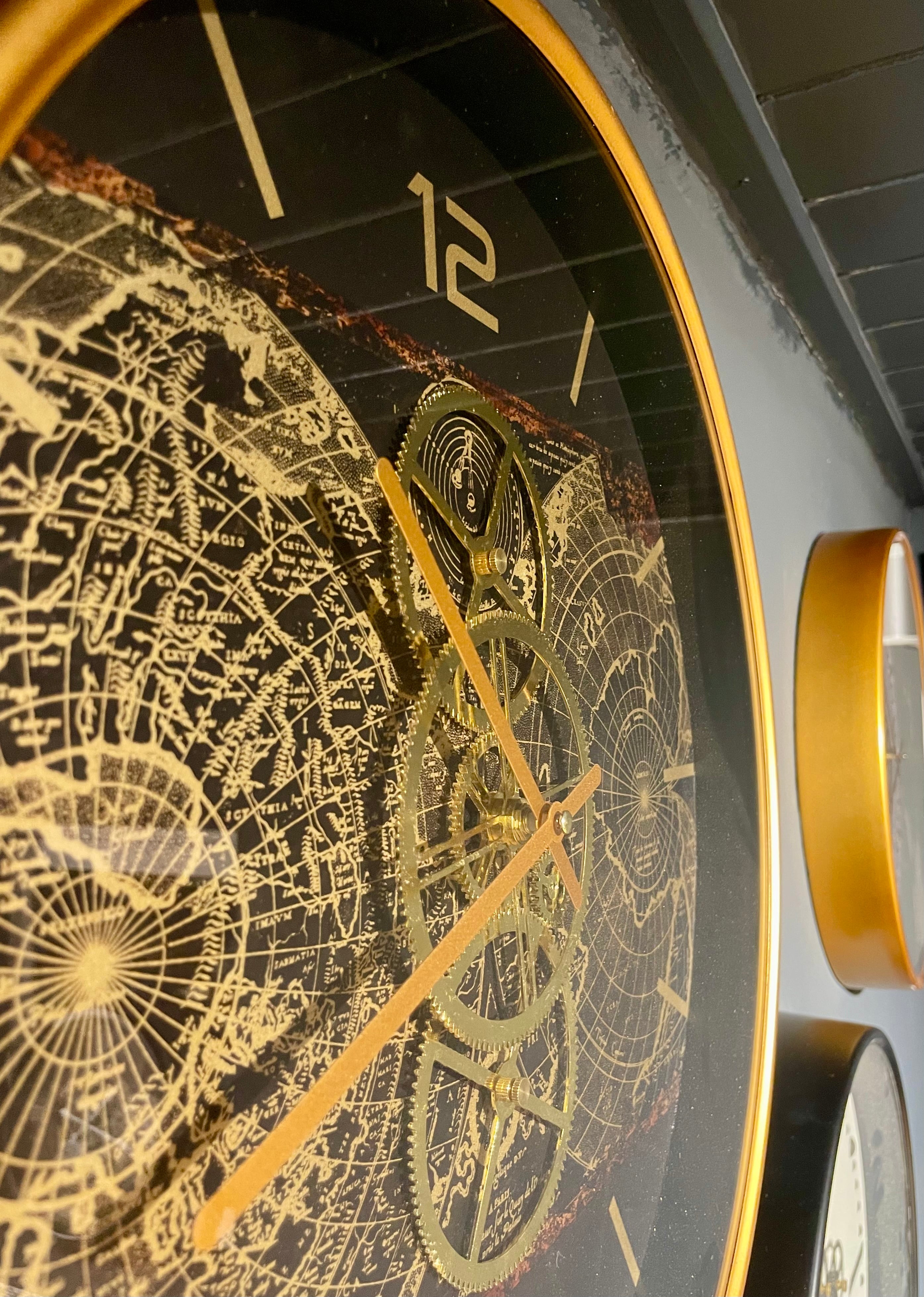 Golden Atlas Zahnrad Wanduhr 46 cm gold Beton grau animiert drehend