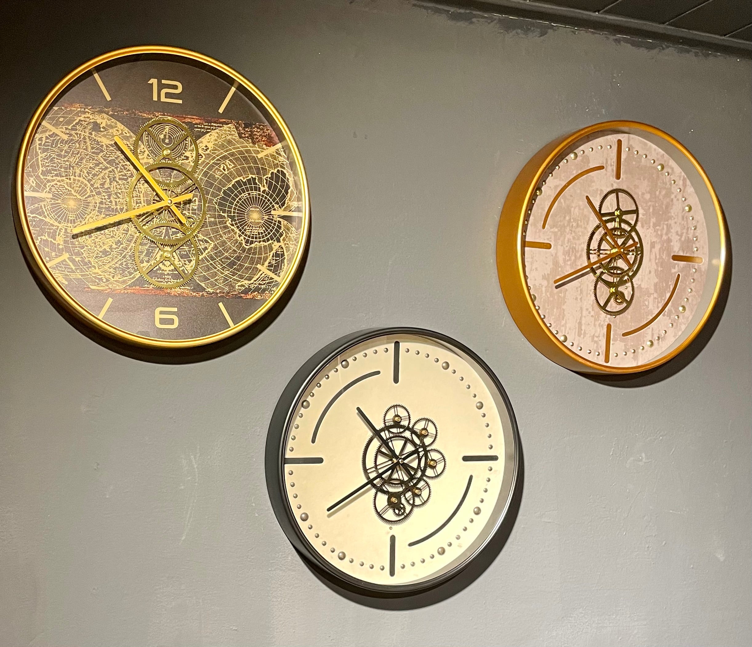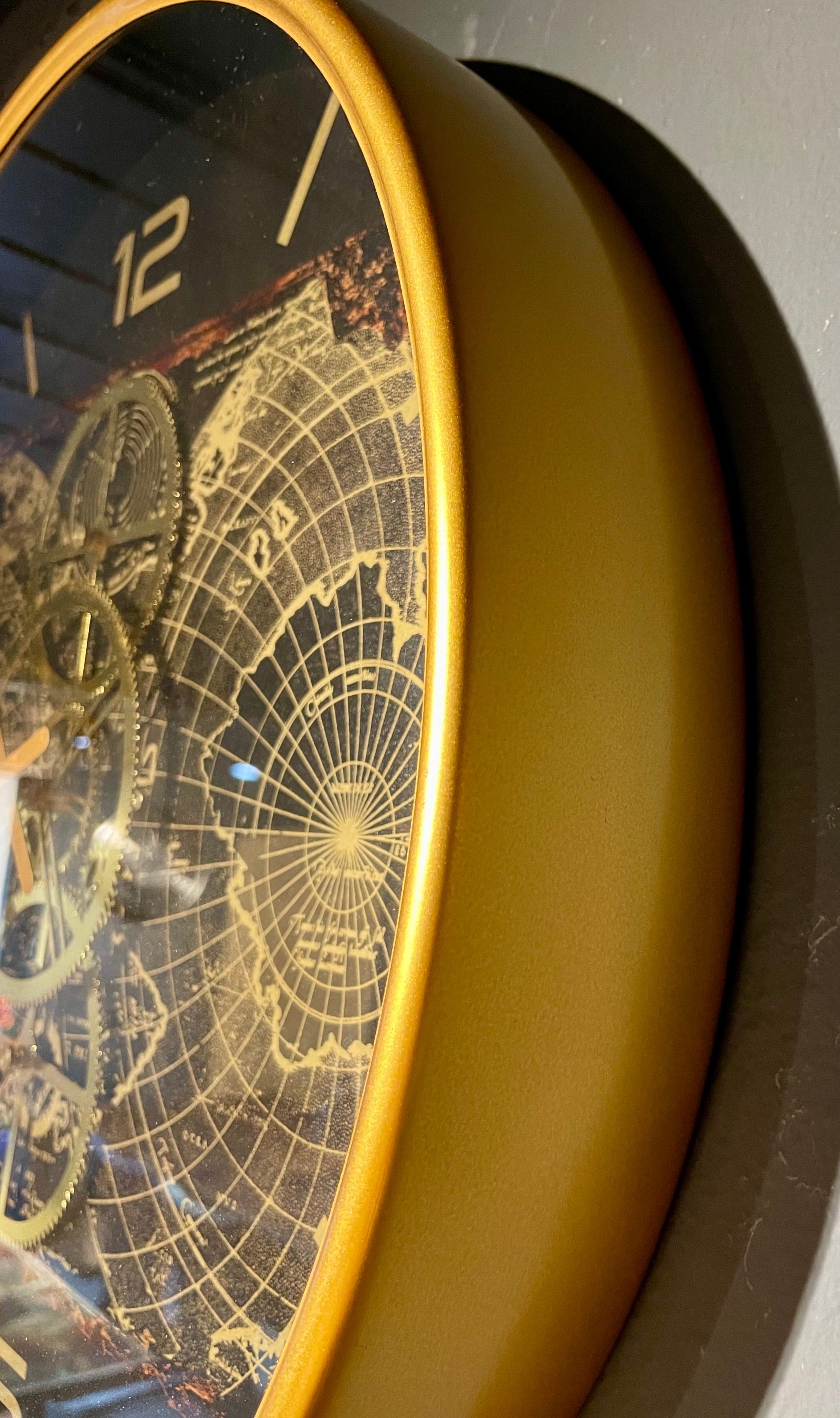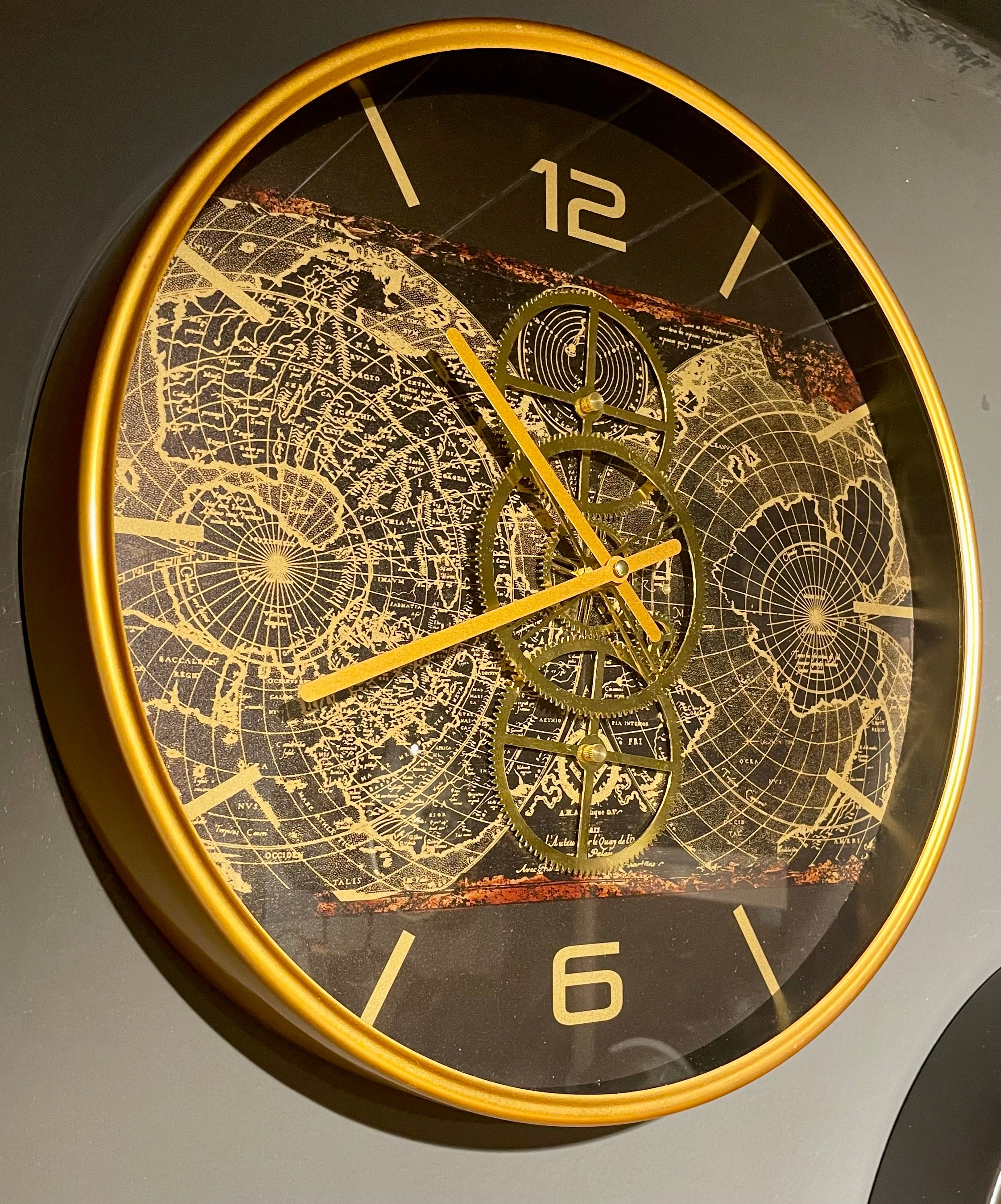 Eine sehr schöne animierte Zahnrad Wanduhr im modischen und hochwertigen leicht orientalisch wirkenden Look und teils im Industriedesign gehalten.