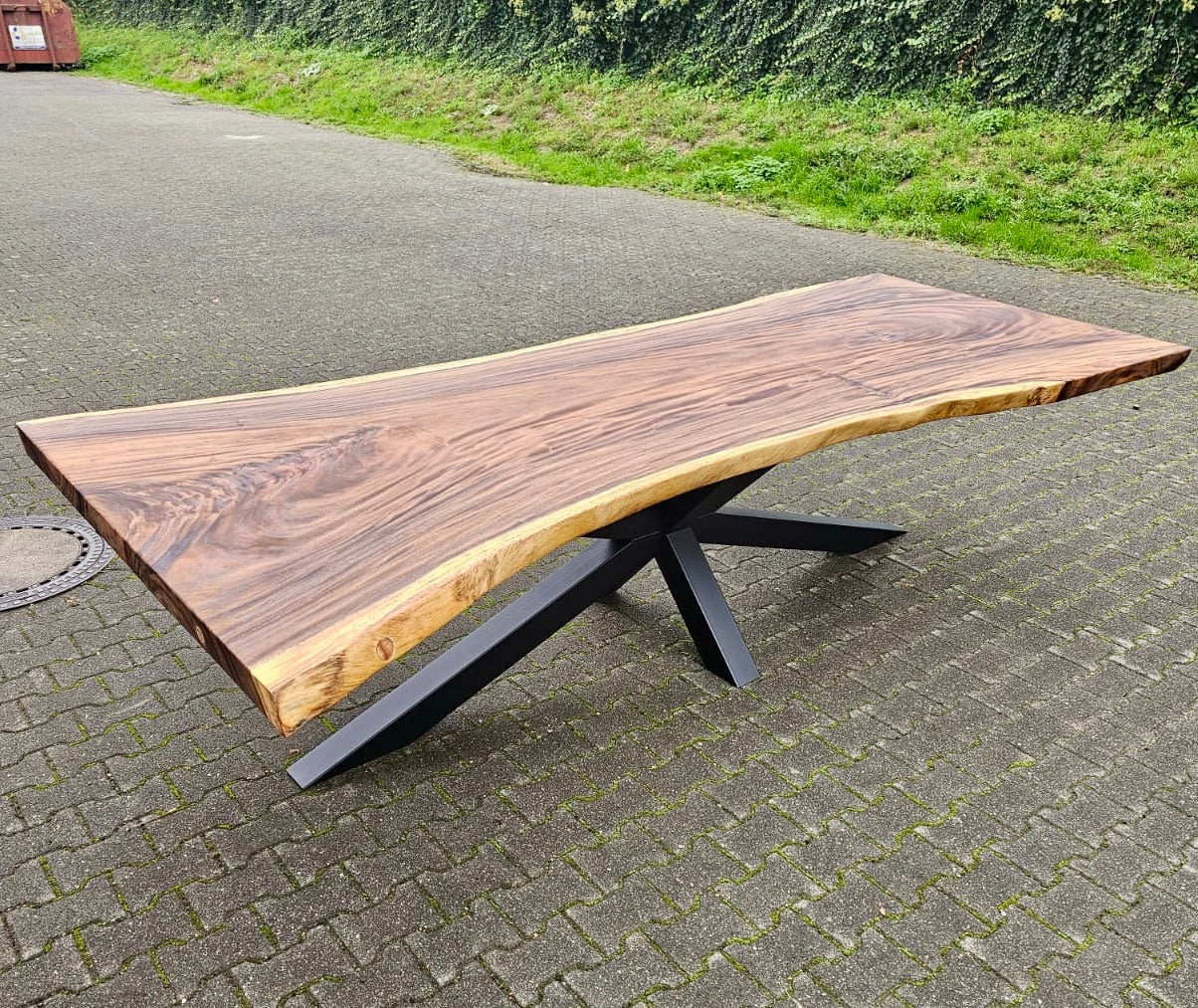 Mammut Baumstamm Esstisch Suar 300 lang und 7 cm massiv mit Spider Gestell