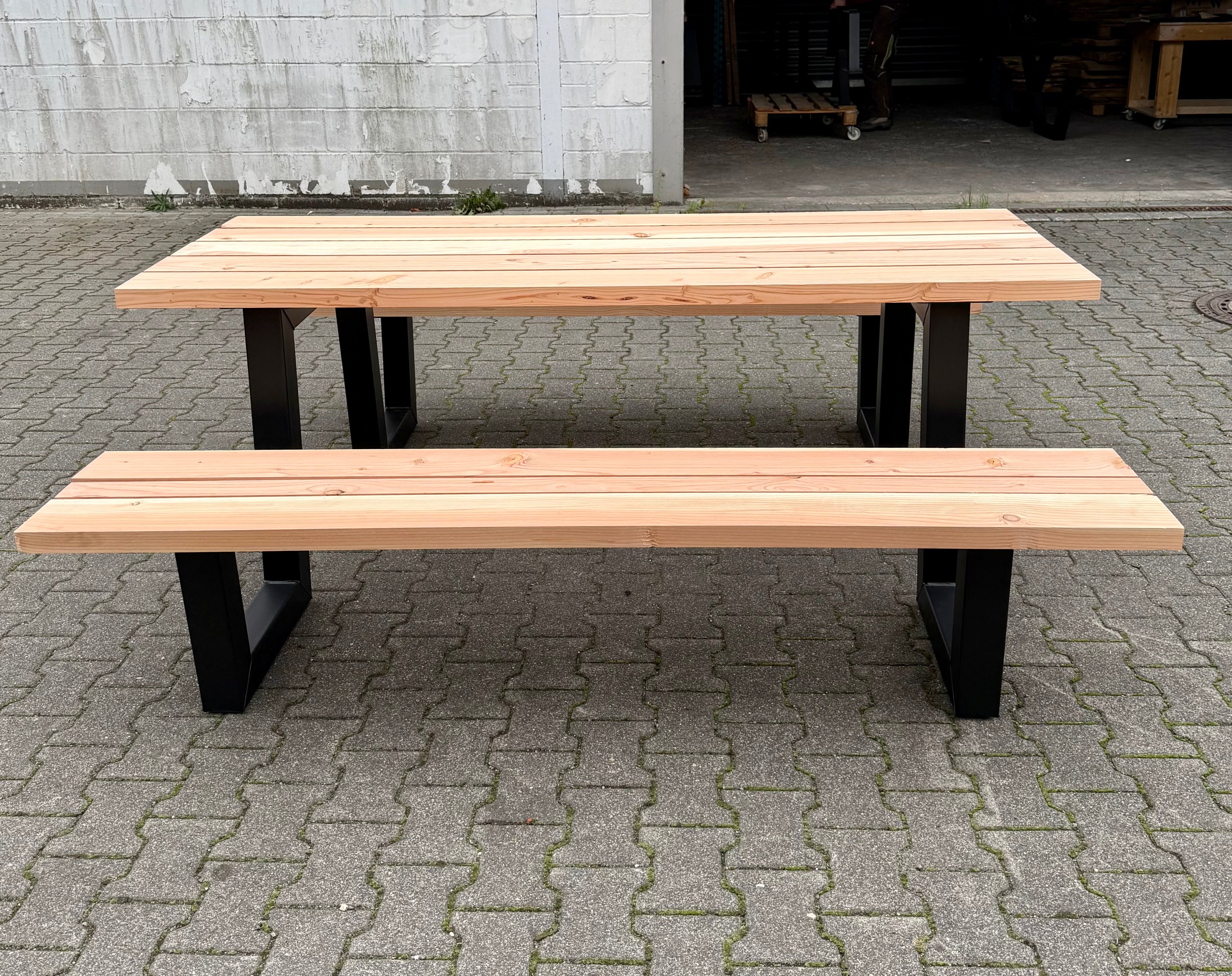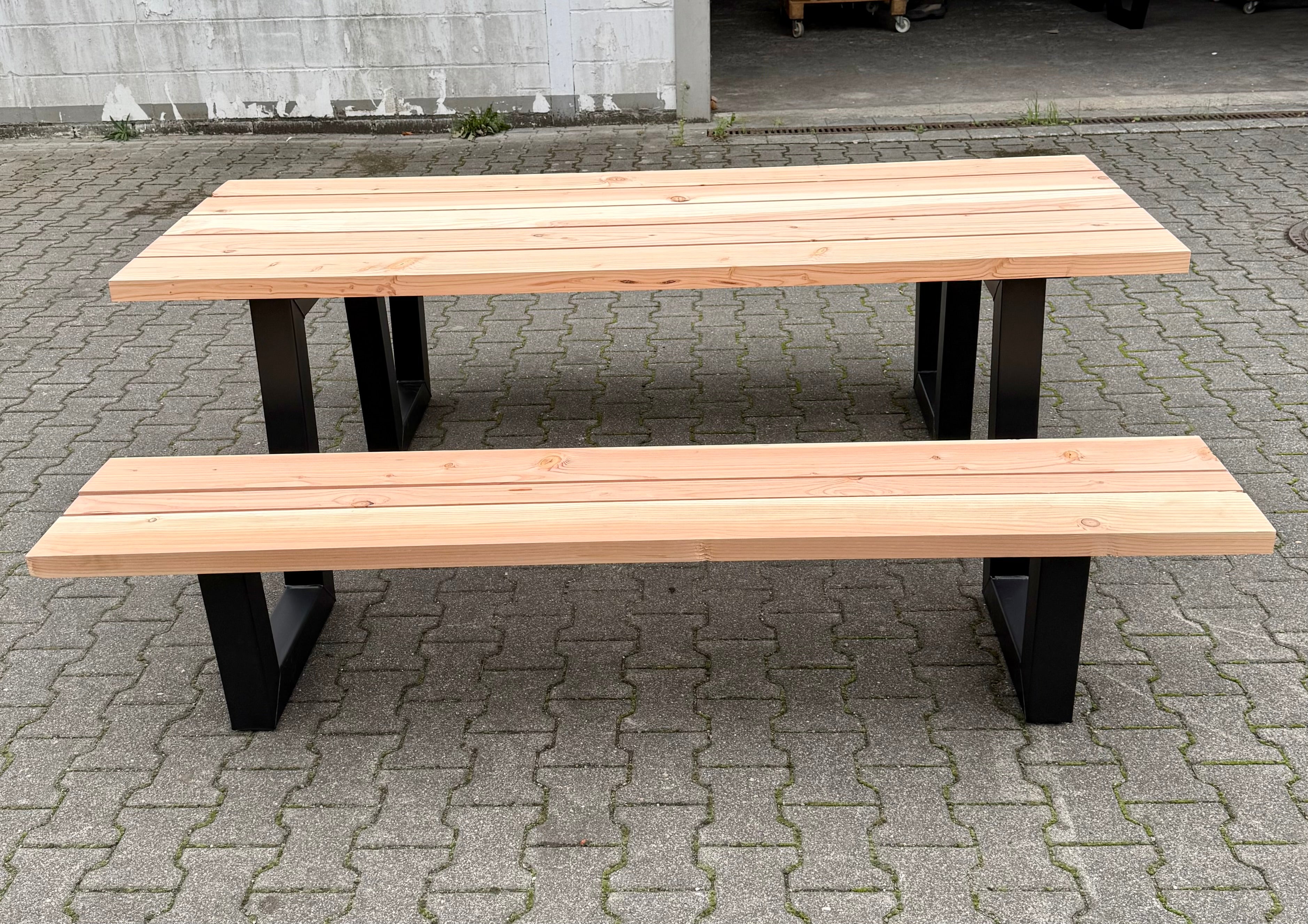 Metall Douglasie Picknick Tisch Outdoor W Gestell Schwarz pulverbeschichtet verzinkt 9 Größen ab 180 bis 400 cm