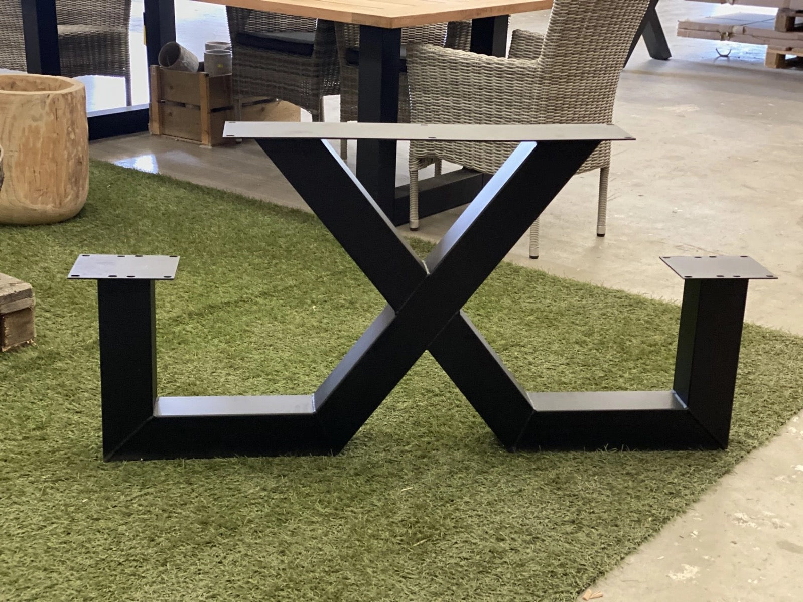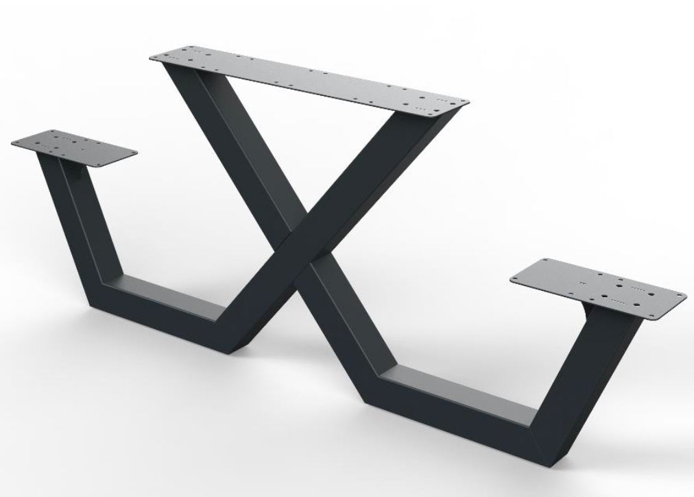 Dieses mega robuste und schöne X oder W Gestell Set besteht aus 2 Metall Tischbeinen schwarz, ist pulverbeschichtet und verzinkt.