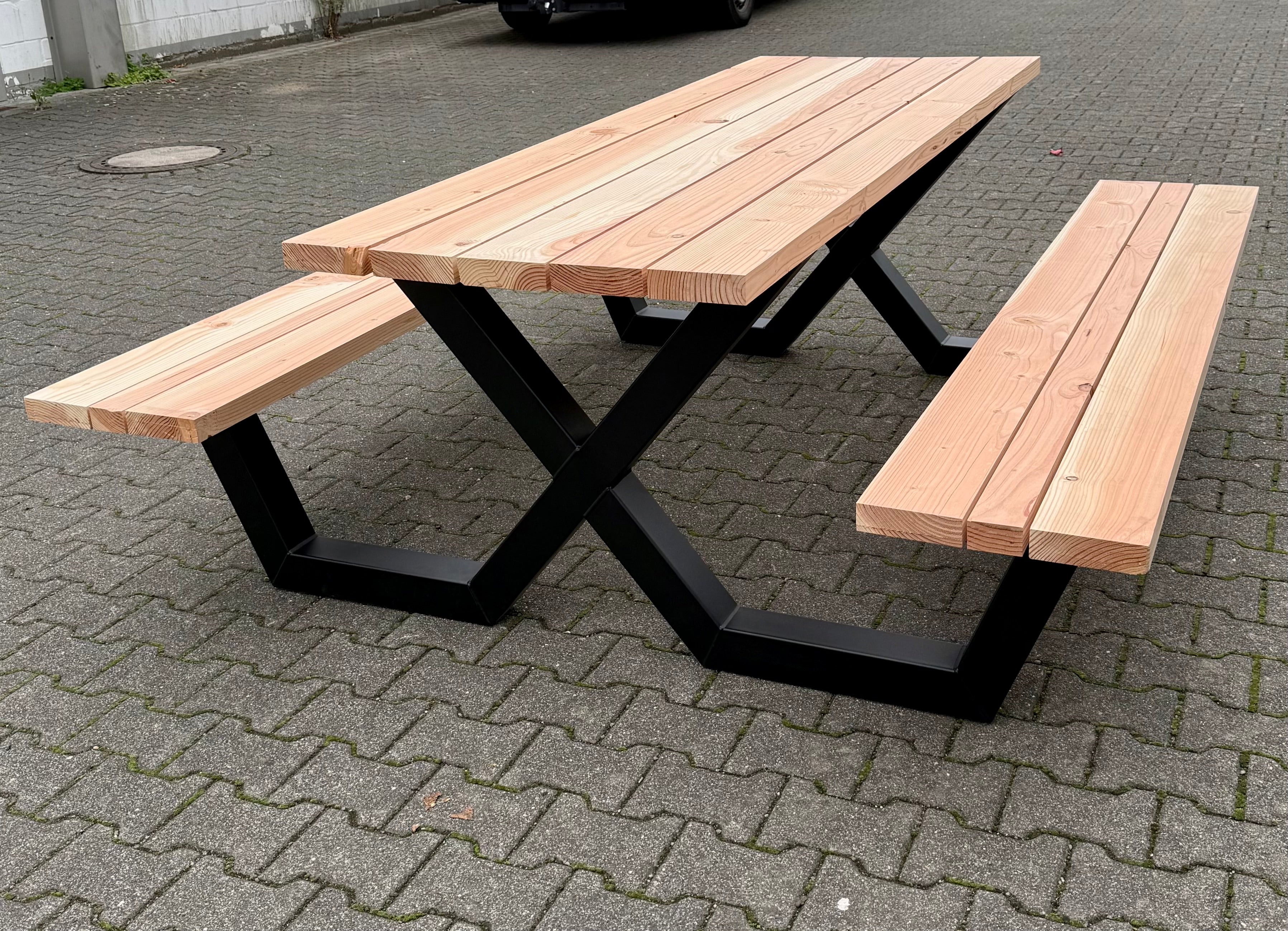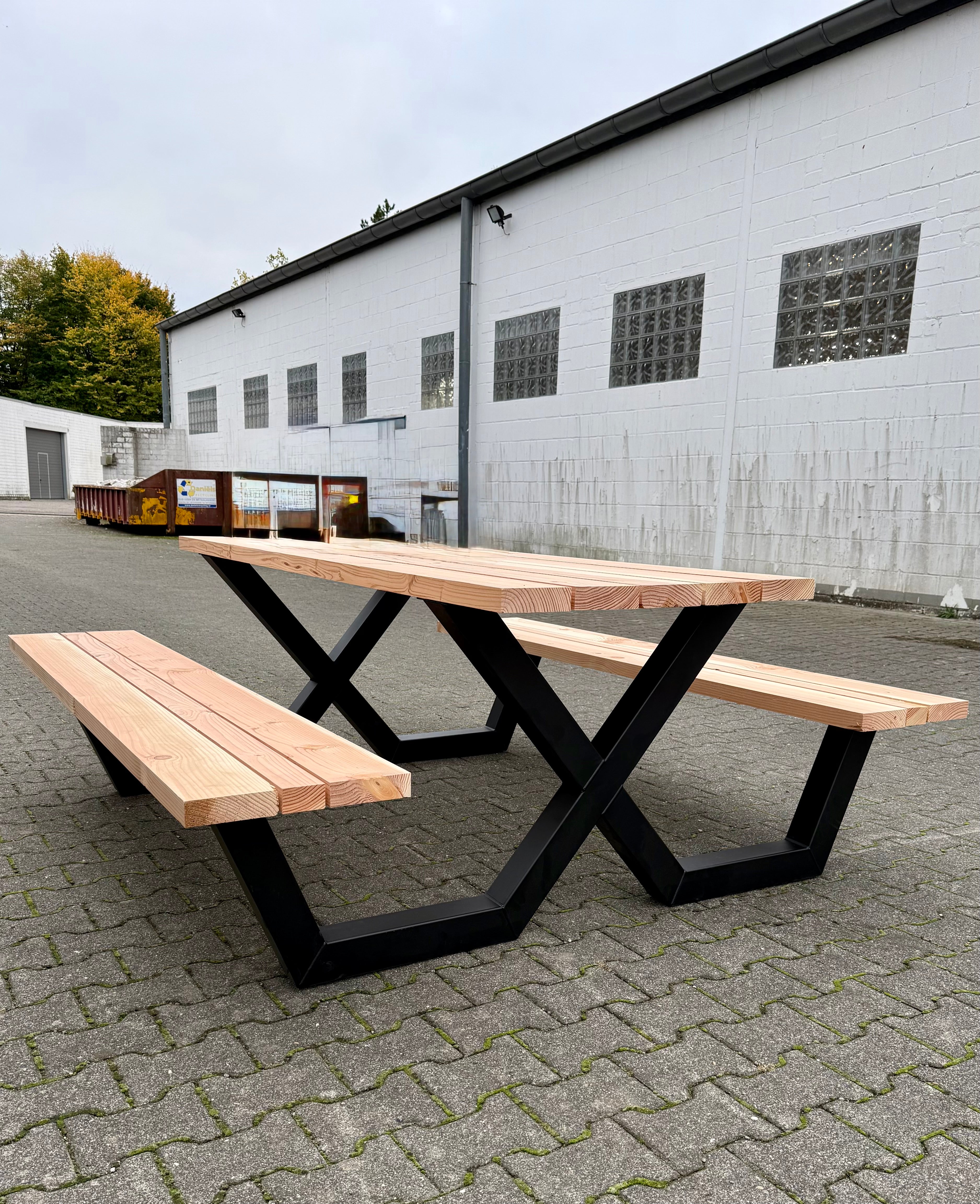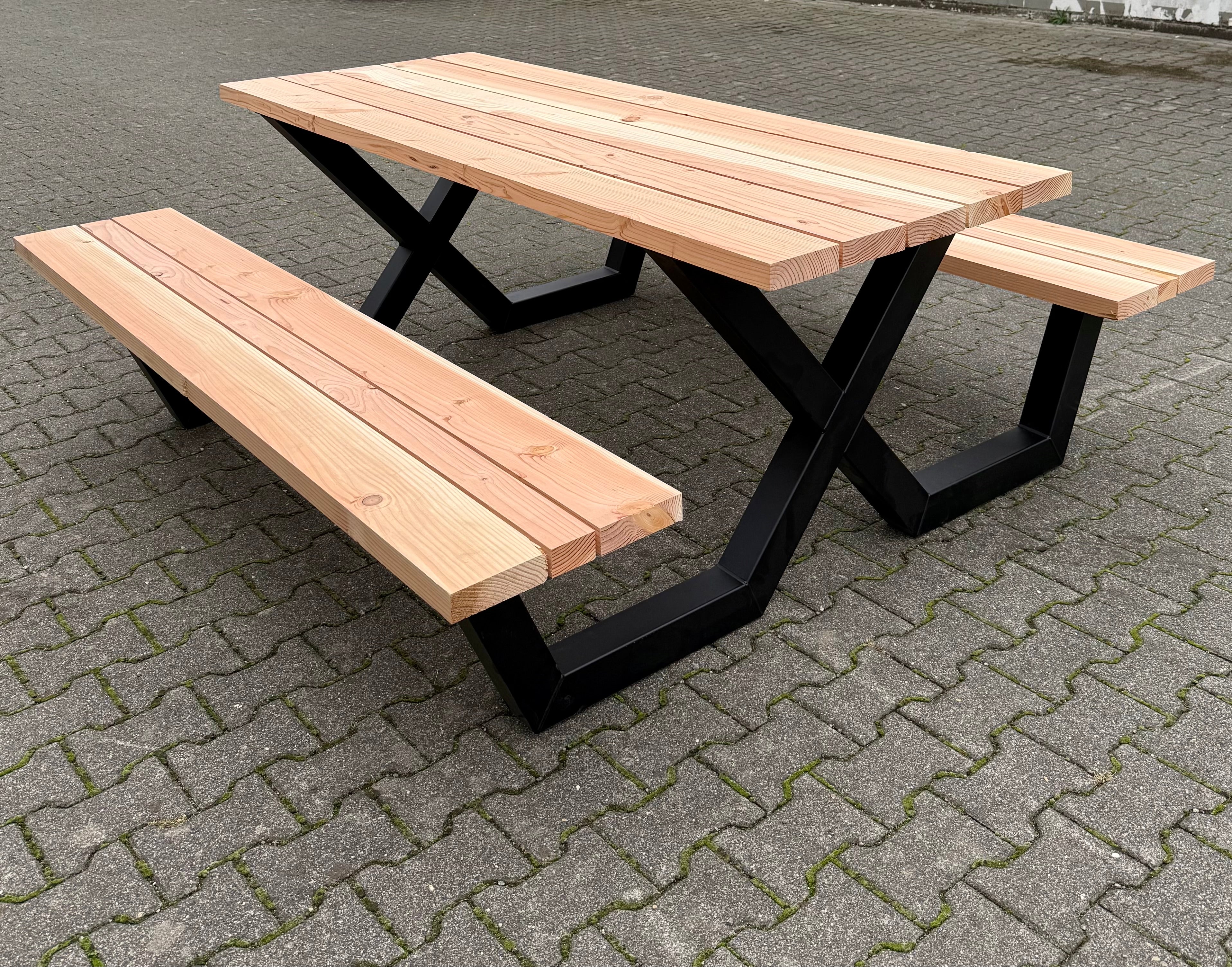 Metall Picknick Tisch Untergestell Outdoor Set Ironline X oder W Schwarz pulverbeschichtet verzinkt