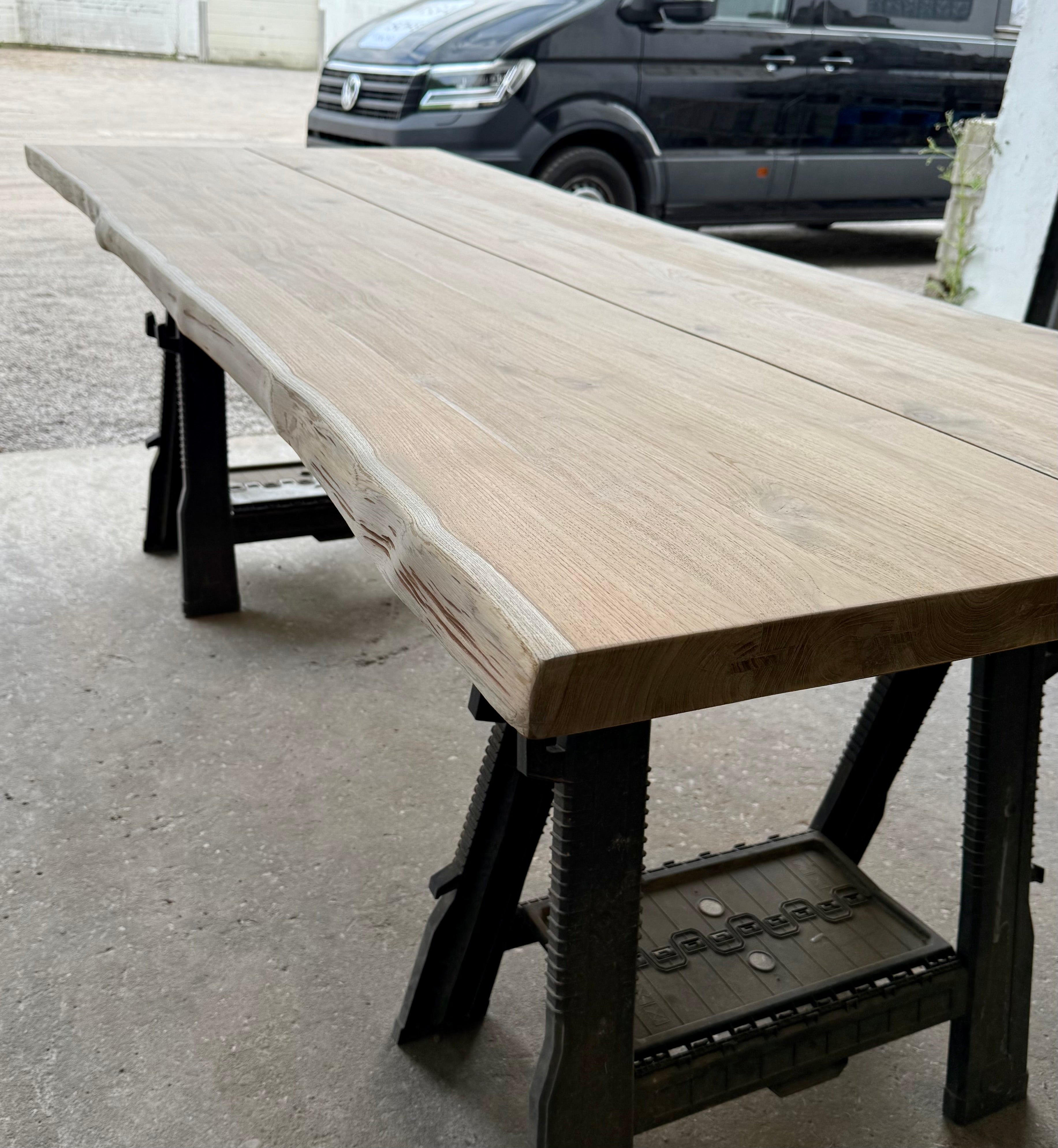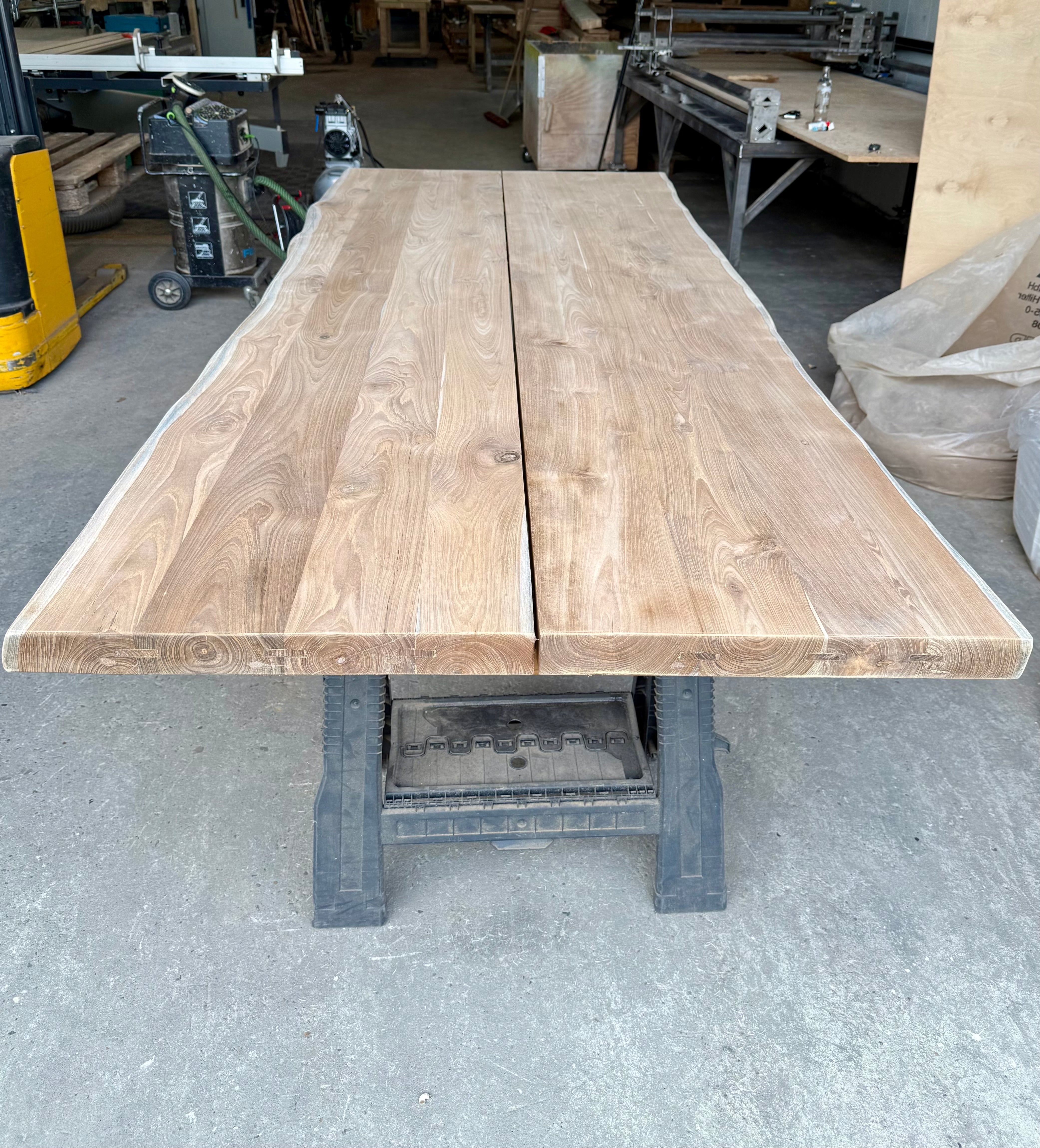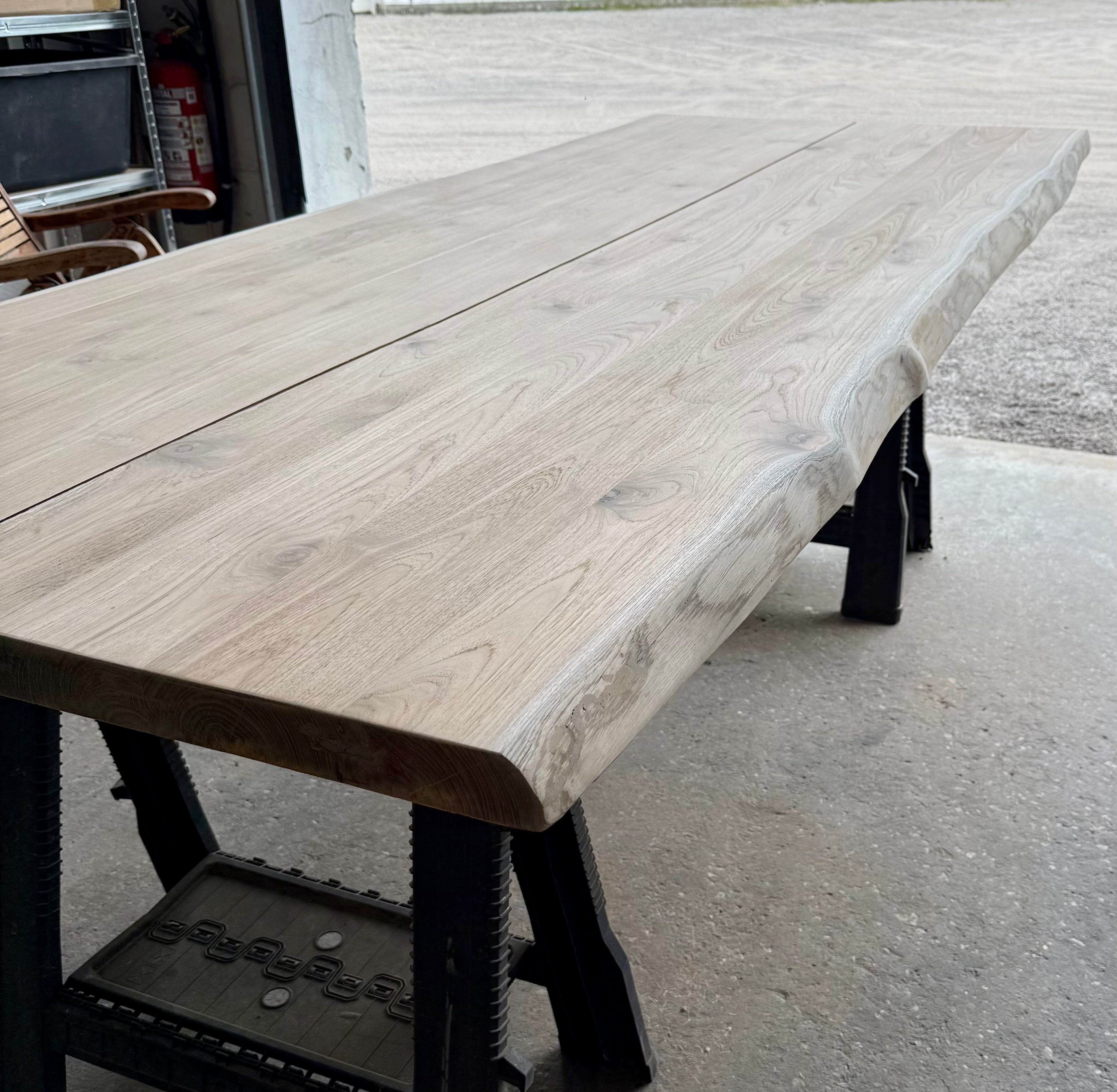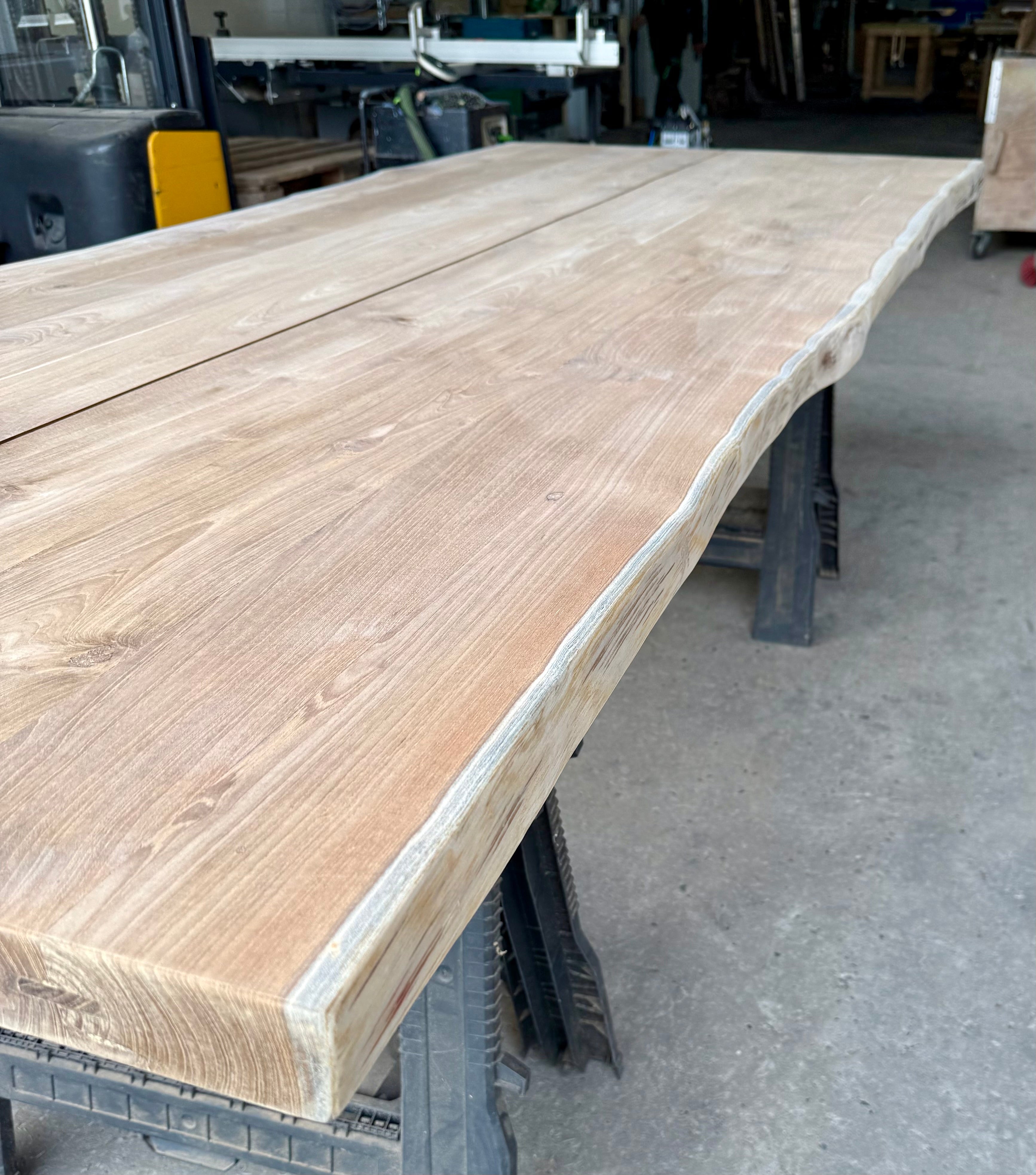Jede dieser Holztischplatten ist ein Unikat und wird aus nur zwei verbundenen Bohlen zum Gartentisch verarbeitet!